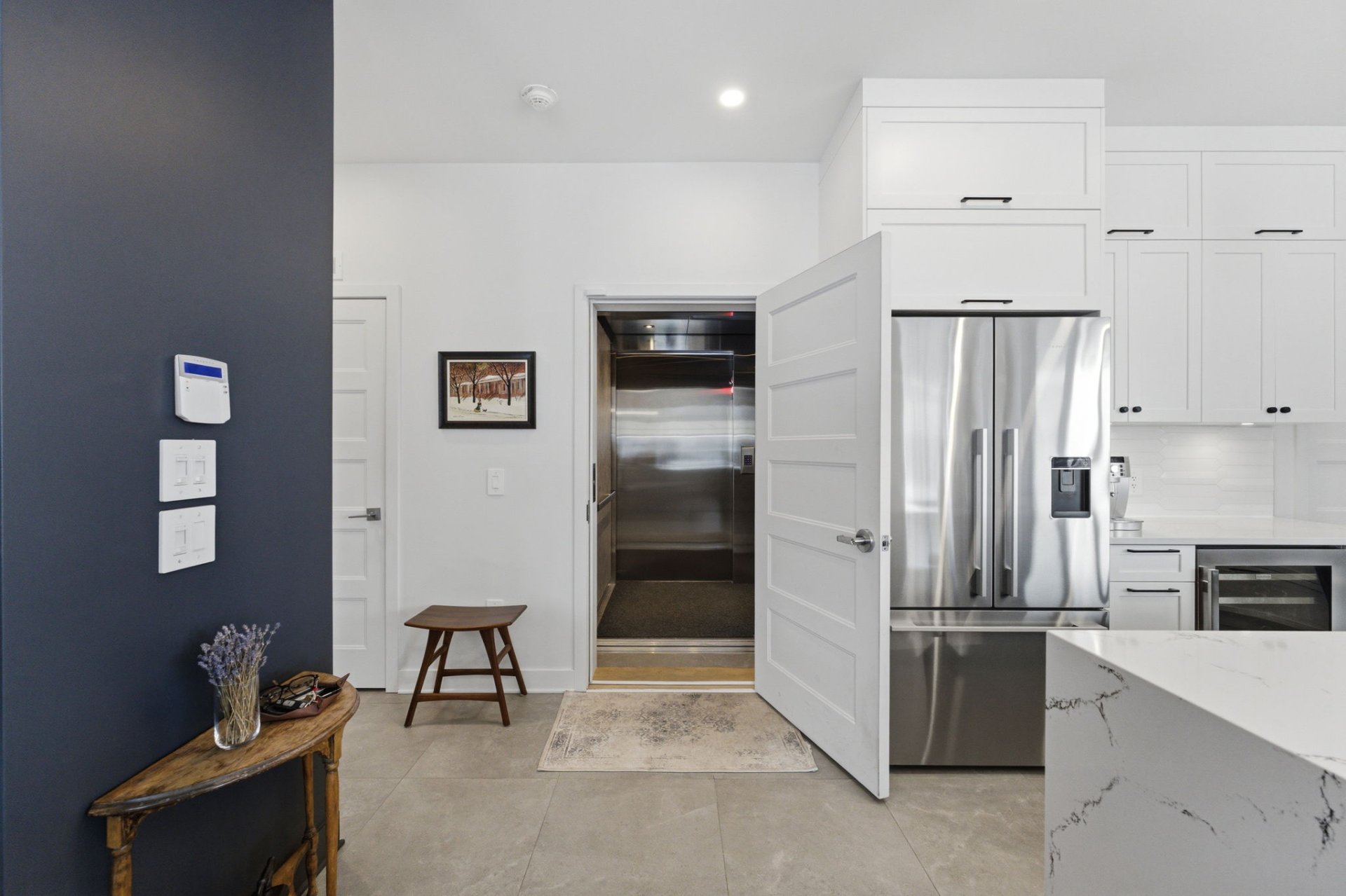 Dès l'arrivée, le ton est donné : un ascenseur vous mène directement du garage à l'intérieur de l'unité.