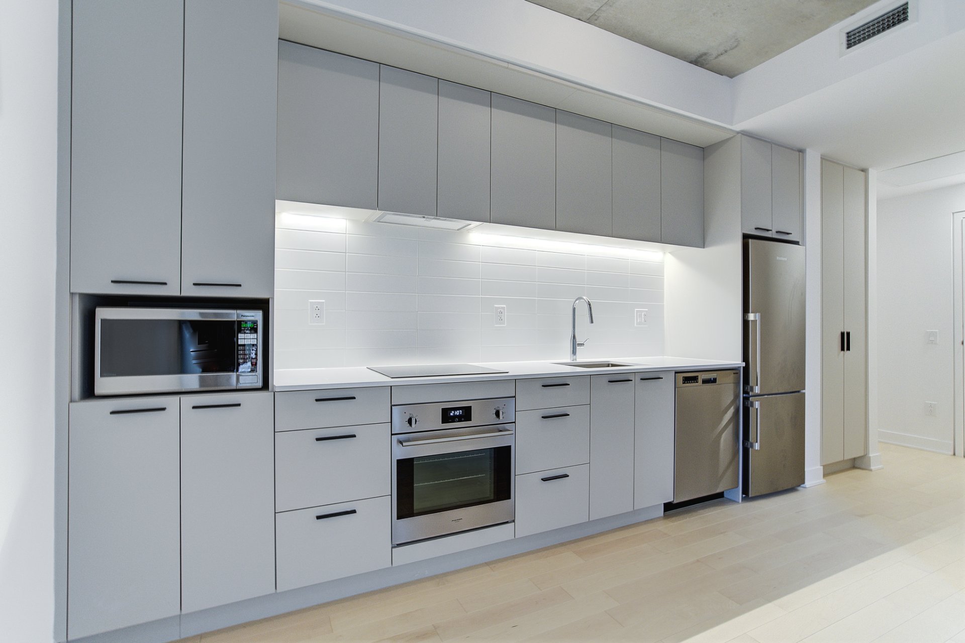 L'unité propose un espace de vie intelligemment aménagé alliant confort et fonctionnalité. Le studio est entièrement équipé, incluant tous les électroménagers ainsi qu'un lit escamotable intégré, optimisant le rangement et permettant de maximiser l'espace disponible. La cuisine moderne offre une belle capacité de rangement et une configuration conviviale pour cuisiner au quotidien. La salle de bains complète est dotée d'une douche vitrée indépendante, d'un meuble-lavabo avec rangement et de finitions soignées.