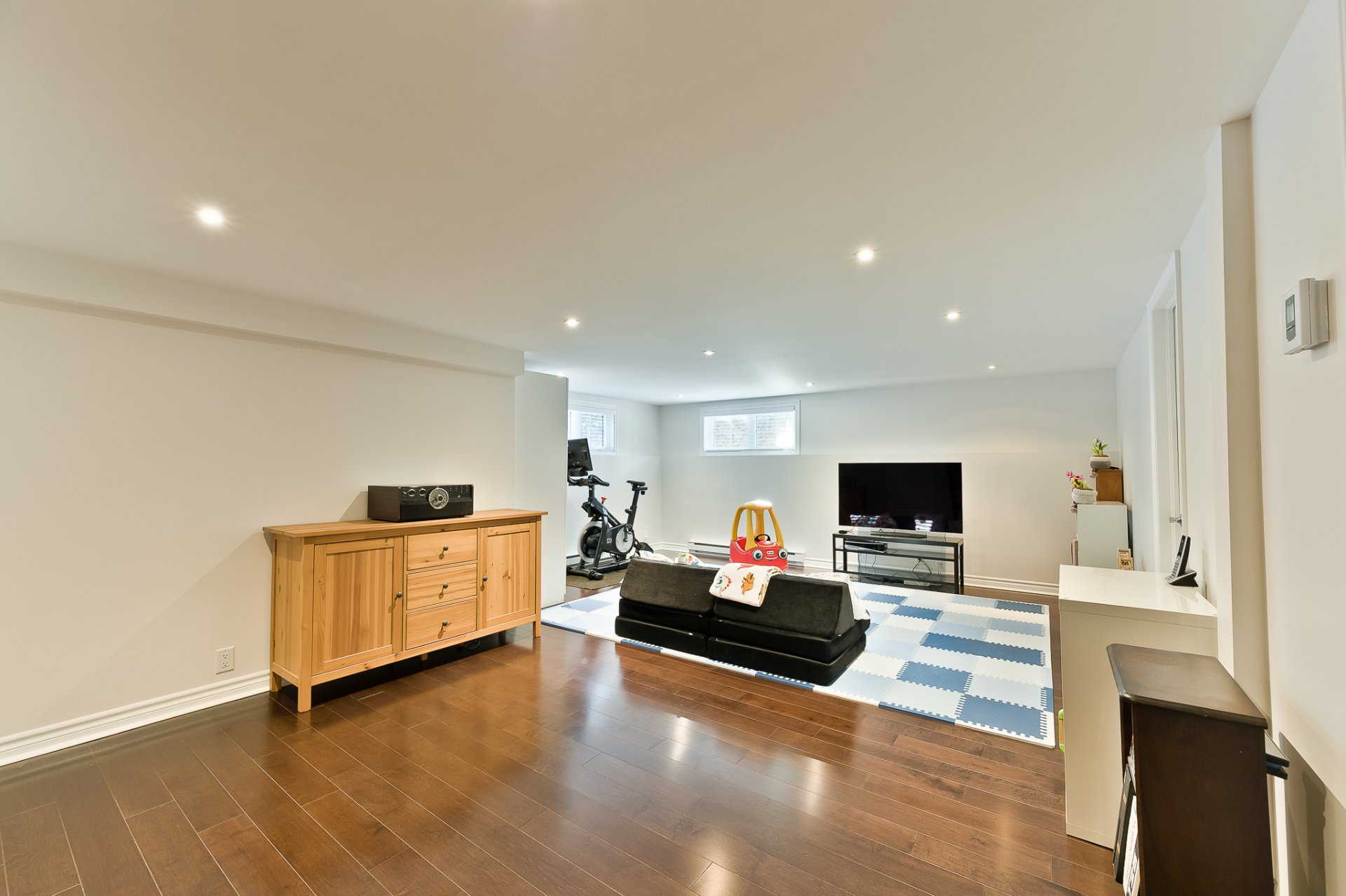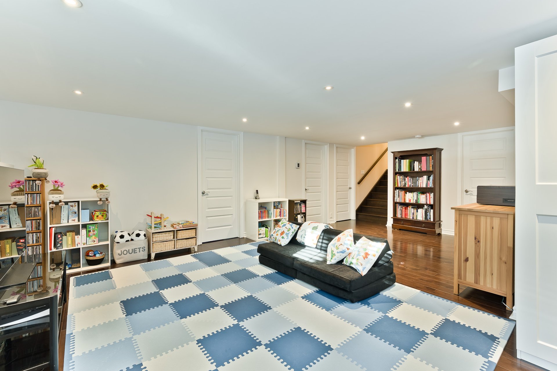 Le sous-sol ajoute une dimension supplémentaire à la maison grâce à une vaste salle familiale idéale pour un coin cinéma, une salle de jeux ou un espace de détente. Deux chambres additionnelles s'y trouvent également, parfaites pour héberger des invités, créer un bureau ou concevoir des zones dédiées à différents besoins. Ce niveau polyvalent permet d'adapter la propriété à une foule de projets.
