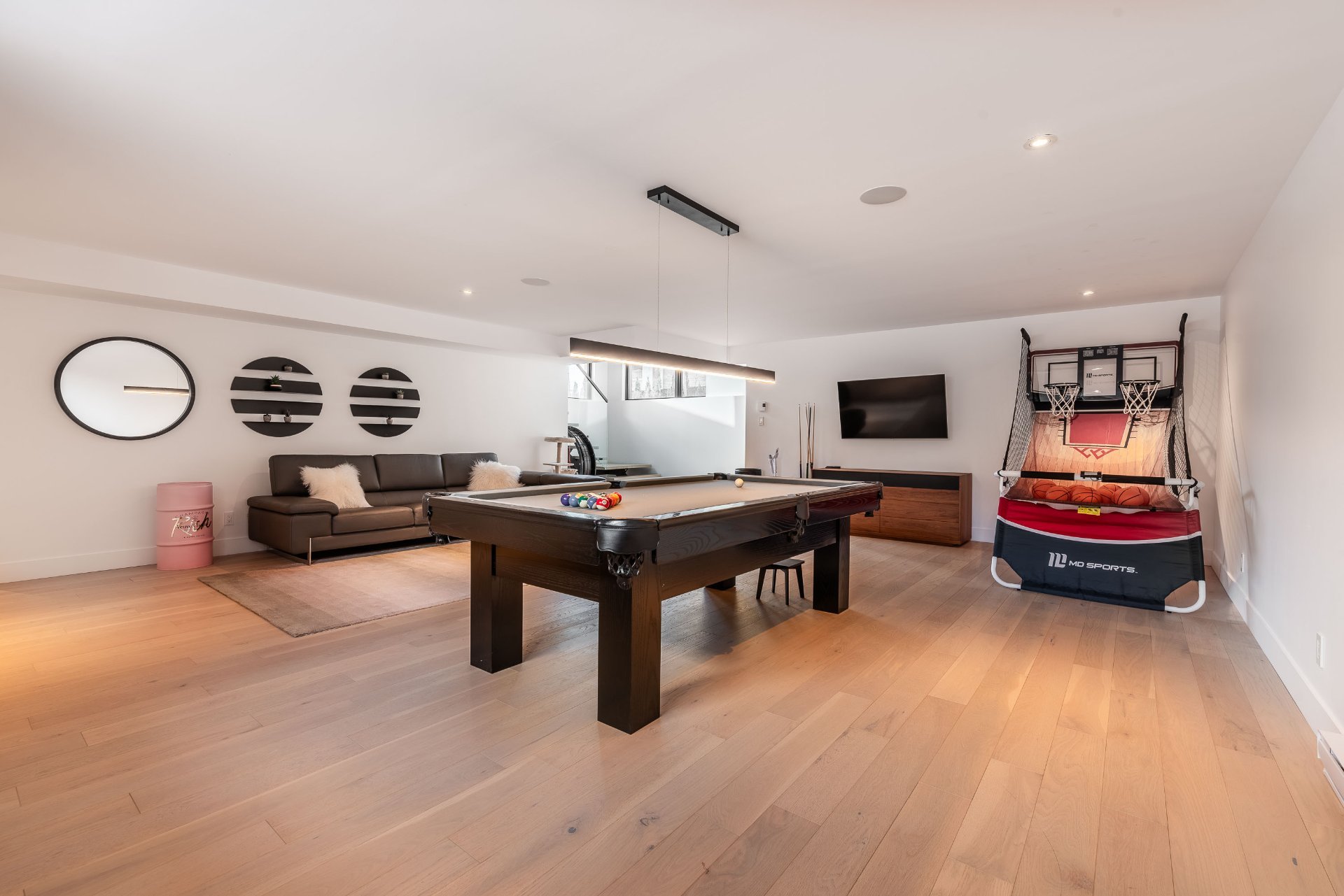 - Luminaires, habillages de fenêtres, tous les électroménagers encastrés des 2 cuisines intérieures, tous les téléviseurs et leur support, table de billard et accessoires, mobilier du cinéma-maison et système de son, tous les haut-parleurs encastrés dans la maison, spa et accessoires.