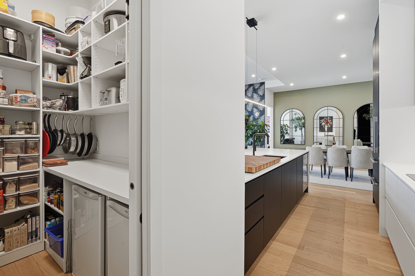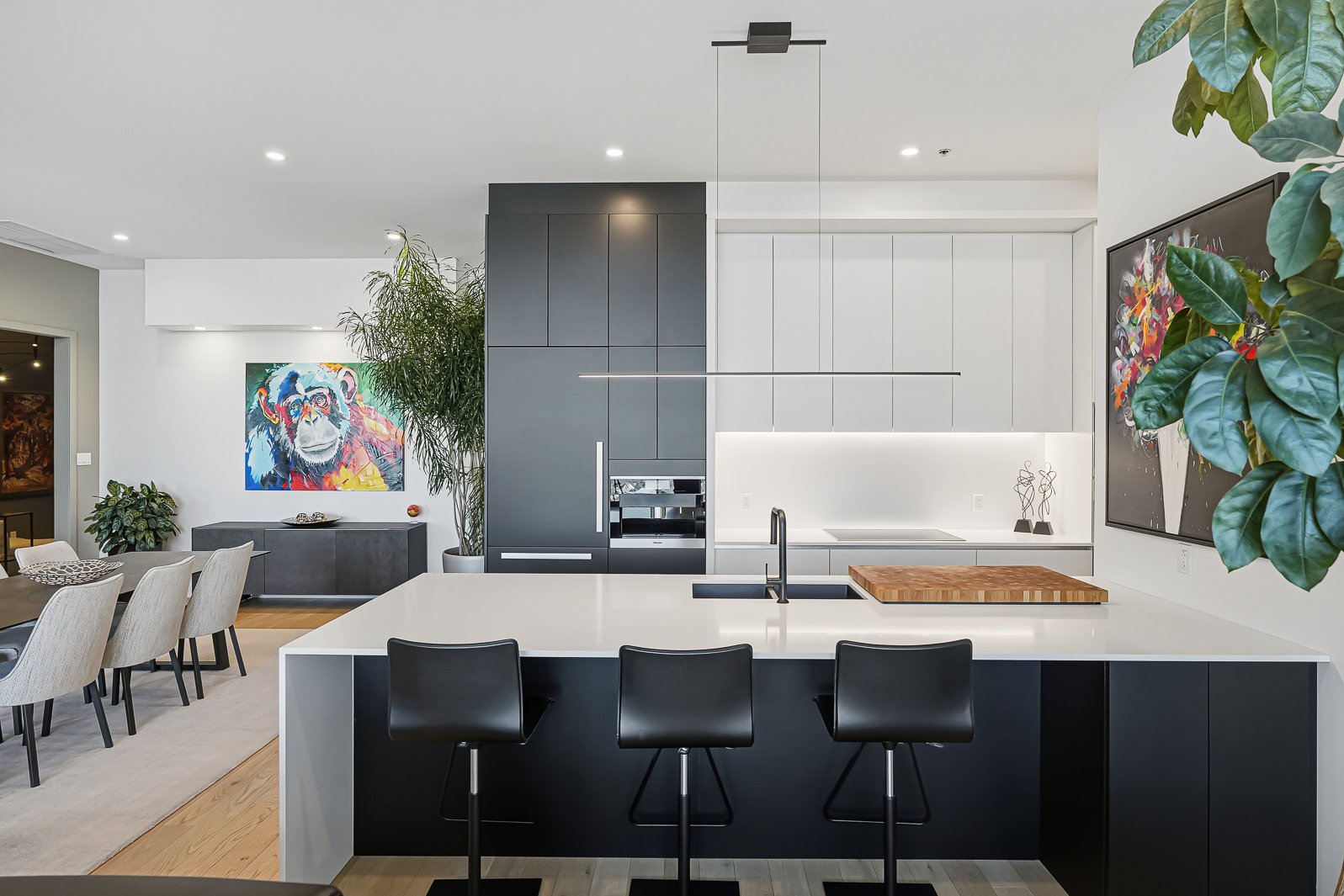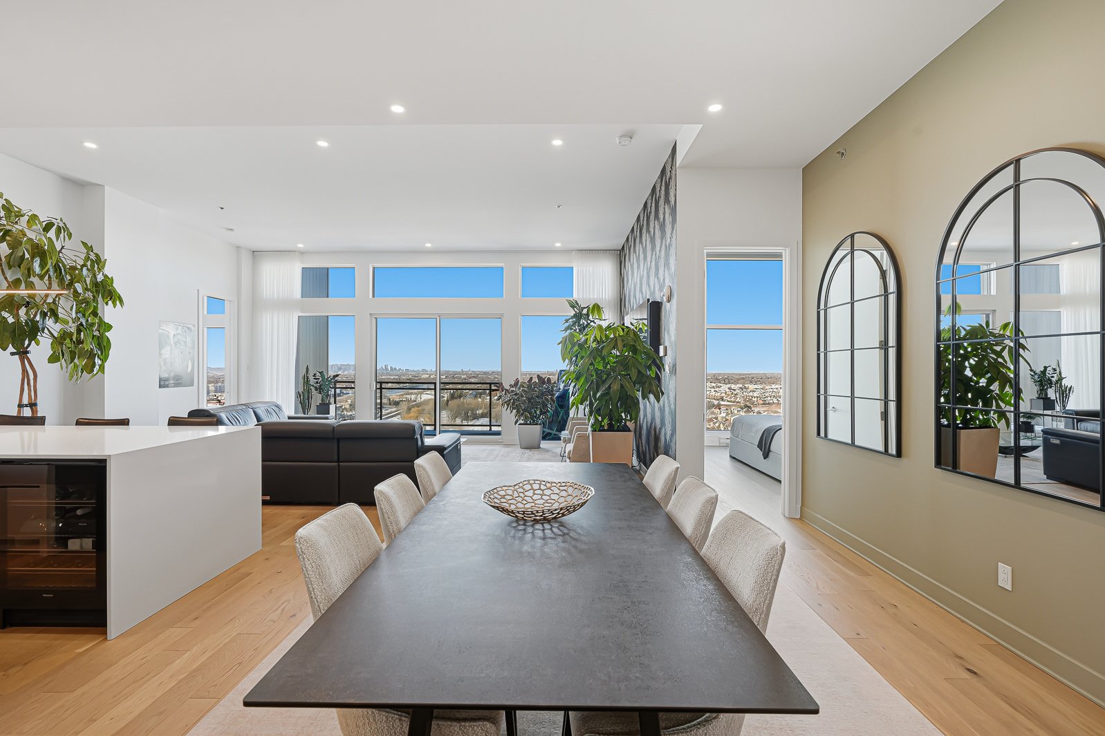 La disposition intérieure a été pensée pour conjuguer confort, fonctionnalité et raffinement. L'aire de vie à concept ouvert accueille un vaste salon et une salle à manger élégante, parfaits pour recevoir, tout en mettant en valeur les perspectives imprenables. La cuisine moderne, aux lignes épurées, propose des matériaux de qualité supérieure, un grand îlot convivial et de nombreux rangements, répondant aux attentes d'une clientèle exigeante.