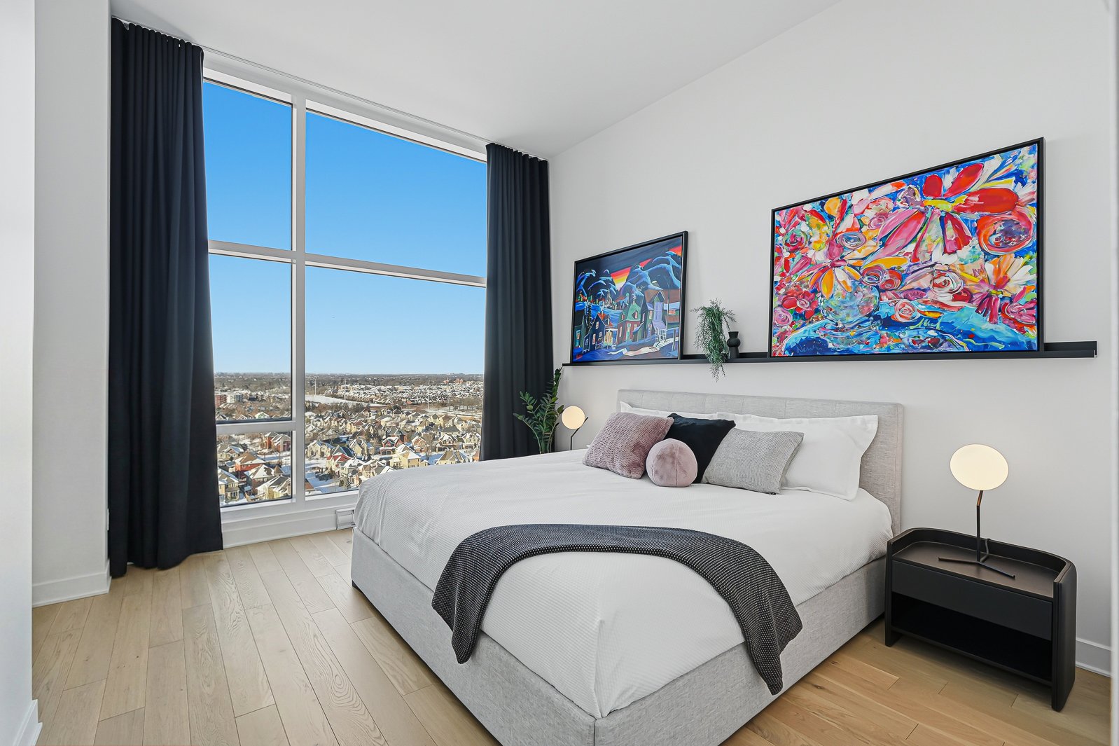 Situé au 19e étage de la tour Magellan 2, ce penthouse d'exception avec plafonds de 11 pieds incarne l'élégance contemporaine et un art de vivre haut de gamme au coeur de Brossard. Offrant une vue panoramique spectaculaire sur Montréal, le fleuve et l'horizon urbain, cette résidence se distingue par sa luminosité remarquable, rendue possible grâce à une fenestration généreuse du sol au plafond qui sublime chaque espace, du lever au coucher du soleil.