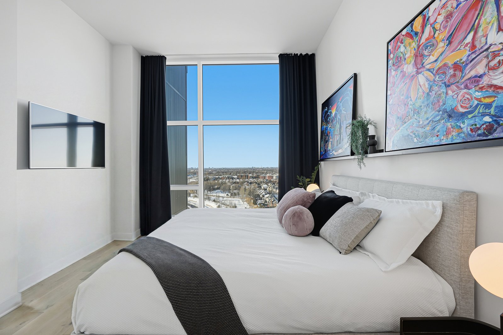 Luxueux penthouse de 2 suites avec plafonds de 11 pieds situé au 19e étage du Magellan 2 à Brossard, offrant une vue panoramique spectaculaire sur Montréal. Cet espace d'exception baigné de lumière naturelle séduit par ses grandes fenêtres du sol au plafond, son plan ouvert convivial et ses finitions haut de gamme. Cuisine contemporaine avec îlot central, électroménagers intégrés et espaces de rangement optimisés. Salles de bains élégantes avec finitions modernes. Balcon privé idéal pour profiter de couchers de soleil ou de la vue. Emplacement de choix, à deux pas des services, transports et commerces. Un style de vie urbain unique.