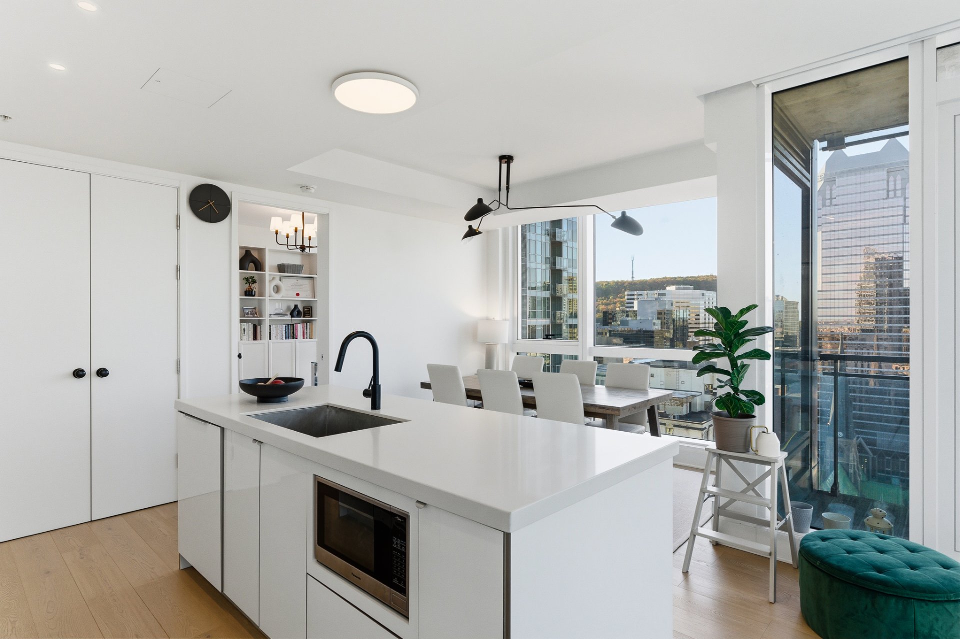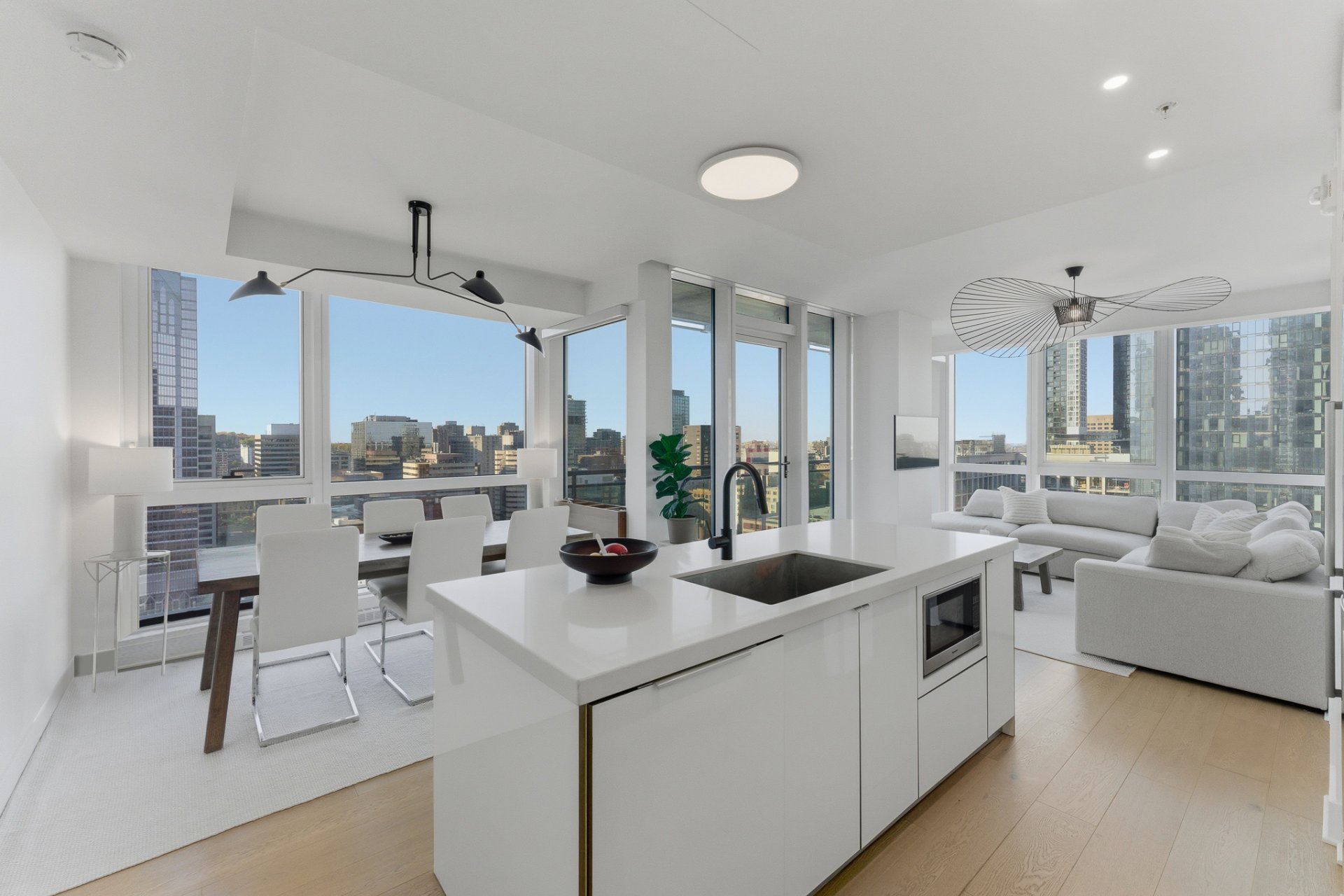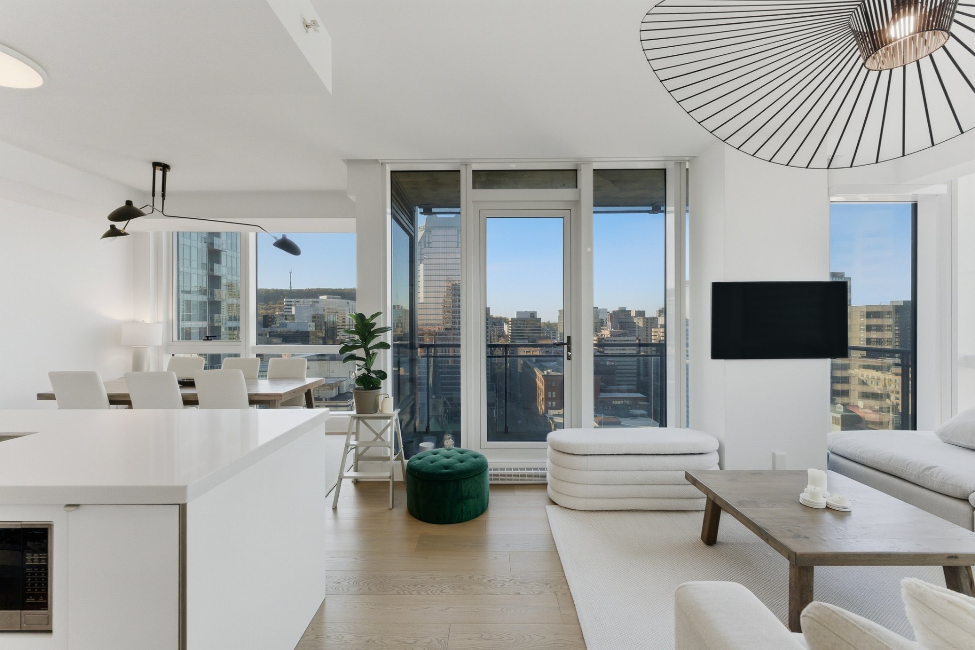 Perchée au coeur vibrant du centre-ville de Montréal, cette adresse remarquable conjugue à merveille dynamisme urbain et panorama spectaculaire. Située dans les hauteurs, elle surplombe la ville et offre une vue remarquable englobant à la fois le mont Royal, les toits scintillants du centre-ville et, à la belle saison, les feux d'artifice qui illuminent le ciel montréalais. Baignée de lumière naturelle, cette résidence séduit par son design contemporain où respirent la clarté et l'élégance. Sa localisation privilégiée permet de profiter pleinement du meilleur de Montréal : cafés, musées, boutiques, restaurants, etc. tous accessibles à pied.