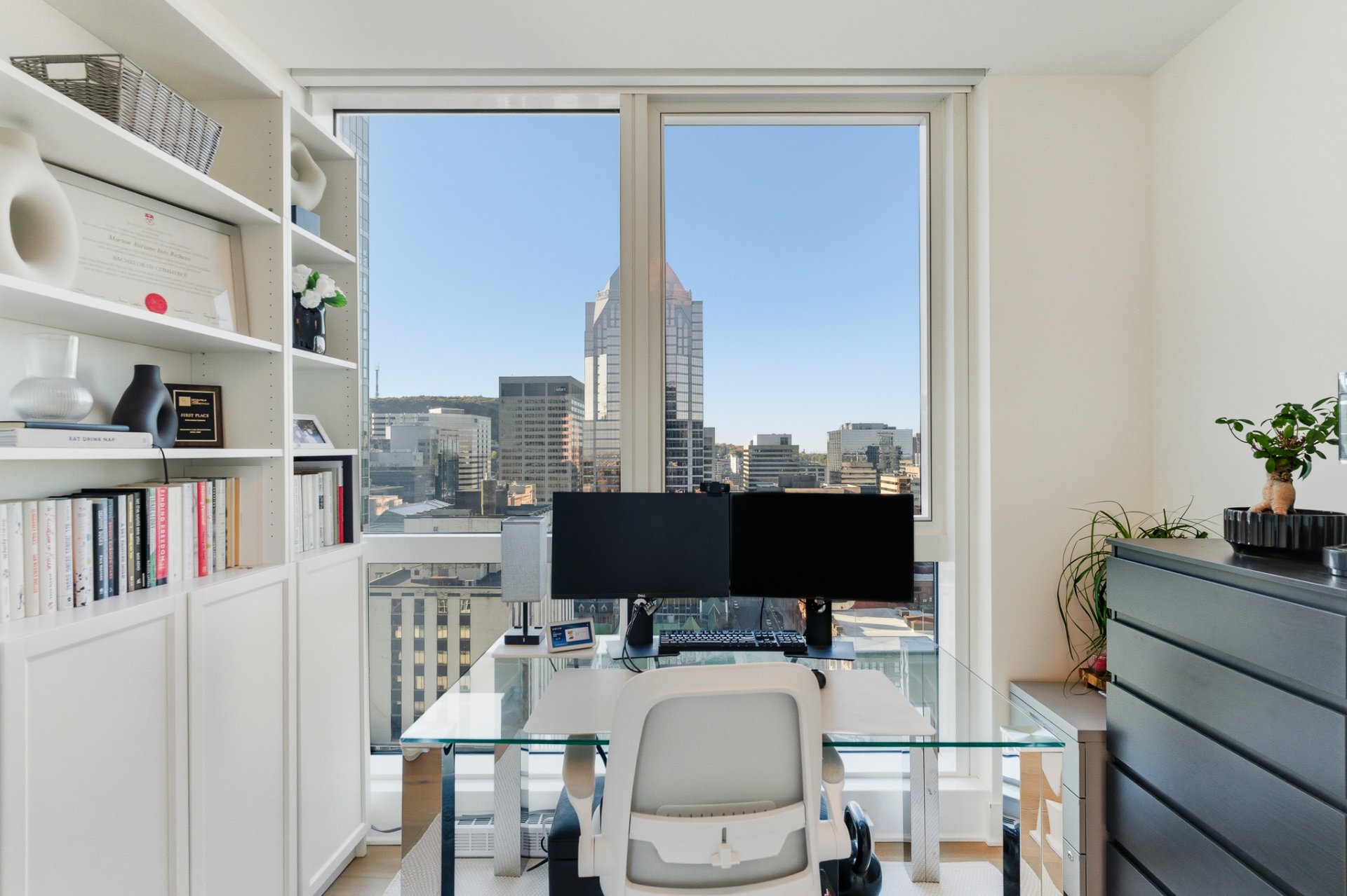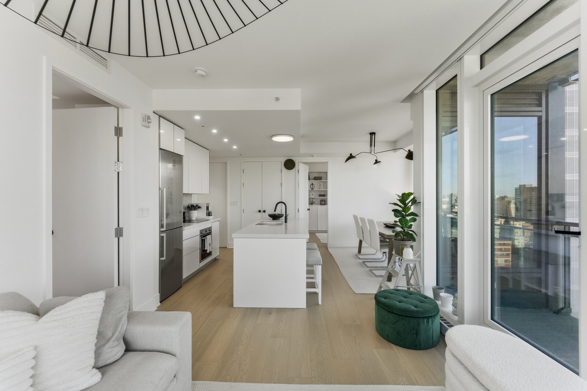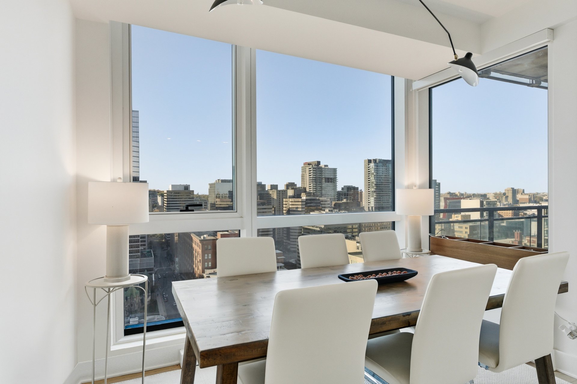 Perchée au coeur vibrant du centre-ville de Montréal, cette adresse remarquable conjugue à merveille dynamisme urbain et panorama spectaculaire. Située dans les hauteurs, elle surplombe la ville et offre une vue remarquable englobant à la fois le mont Royal, les toits scintillants du centre-ville et, à la belle saison, les feux d'artifice qui illuminent le ciel montréalais. Baignée de lumière naturelle, cette résidence séduit par son design contemporain où respirent la clarté et l'élégance. Sa localisation privilégiée permet de profiter pleinement du meilleur de Montréal : cafés, musées, boutiques, restaurants, etc. tous accessibles à pied.