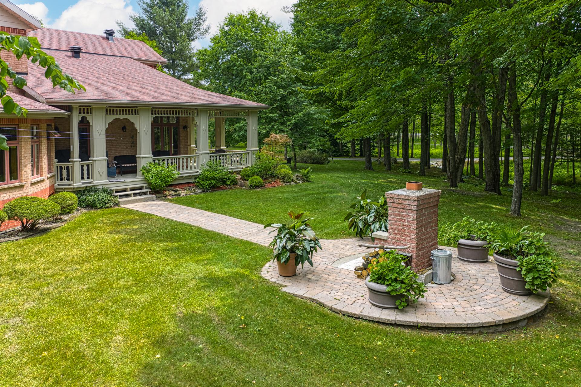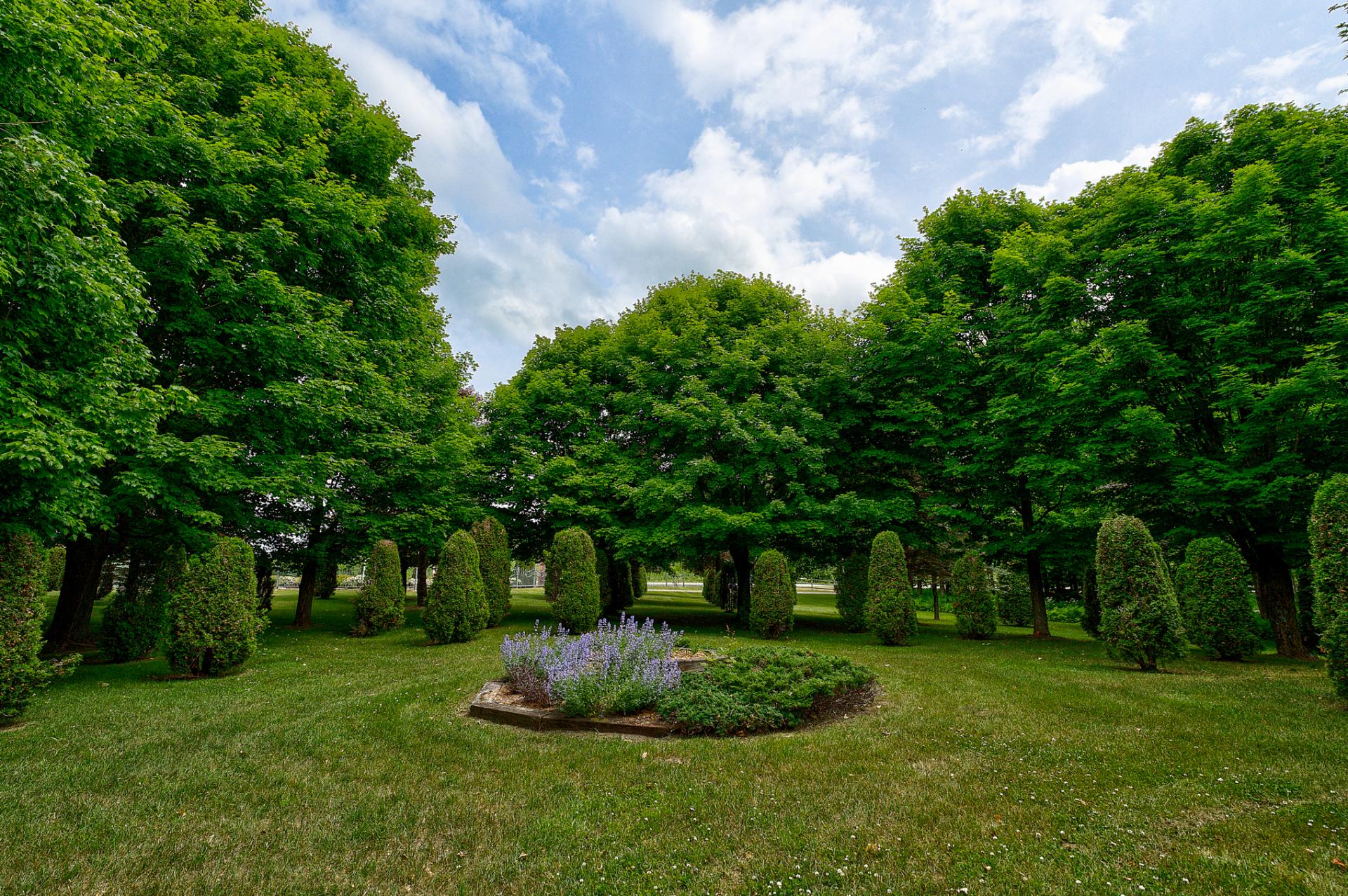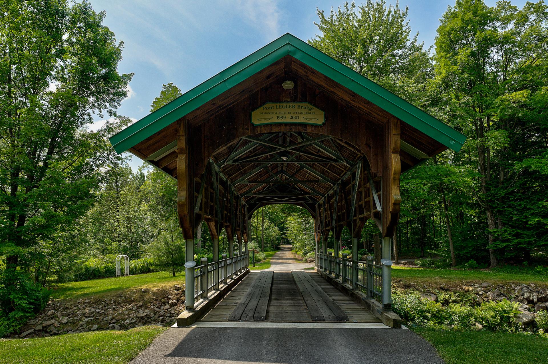À l'extérieur, de nombreux espaces de détente, des étangs avec fontaines et un charmant pont couvert pour traverser la rivière Hinchinbrooke. Le tout dans un cadre féerique. Qu'il s'agisse d'organiser des réceptions, de faire des promenades dans la nature ou simplement de se prélasser dans la paix et la tranquillité, le Domaine Legler promet un style de vie empreint de confort, d'intimité et de prestige. Tout cela à l'écart de l'agitation de la vie urbaine.