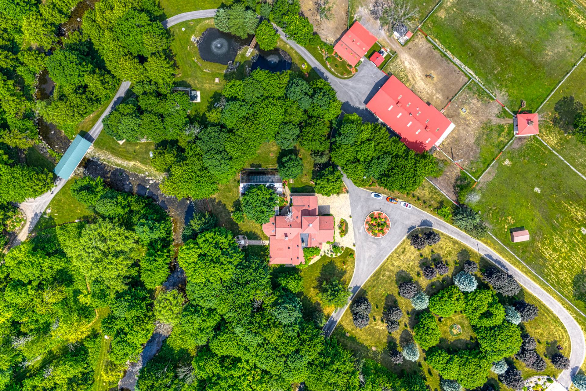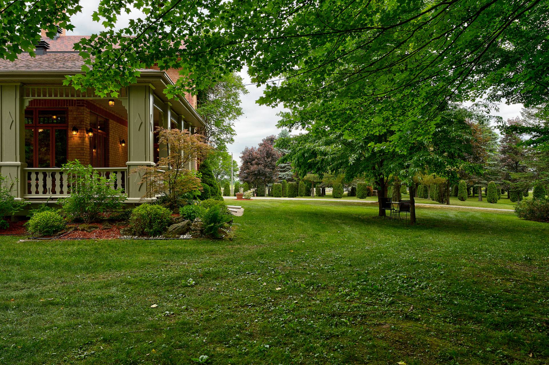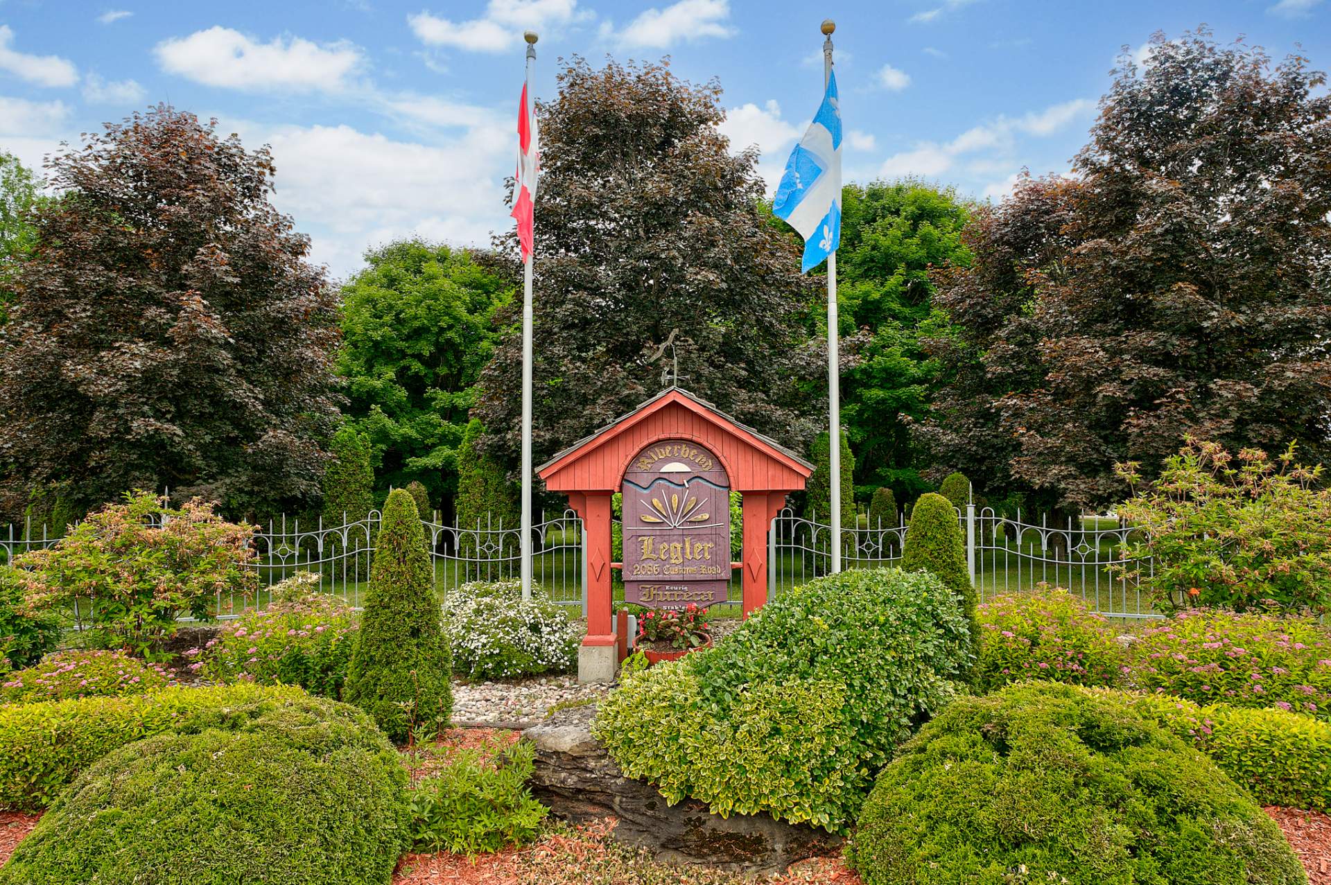 À l'extérieur, de nombreux espaces de détente, des étangs avec fontaines et un charmant pont couvert pour traverser la rivière Hinchinbrooke. Le tout dans un cadre féerique. Qu'il s'agisse d'organiser des réceptions, de faire des promenades dans la nature ou simplement de se prélasser dans la paix et la tranquillité, le Domaine Legler promet un style de vie empreint de confort, d'intimité et de prestige. Tout cela à l'écart de l'agitation de la vie urbaine.