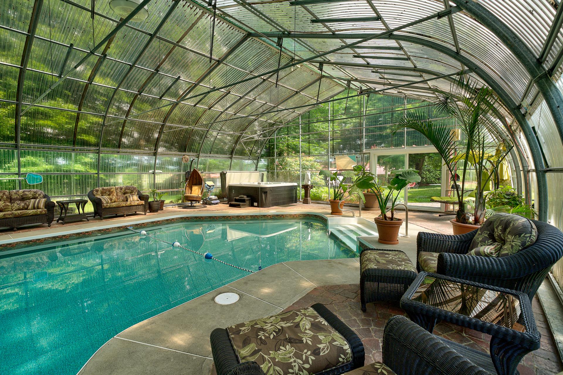 La pièce de résistance de cette propriété est le complexe aquatique intérieur, parfaitement relié à la résidence. Cette oasis d'inspiration tropicale comprend une piscine creusée et un spa intégré, ce qui permet d'en profiter toute l'année et de bénéficier d'un confort en toute saison.