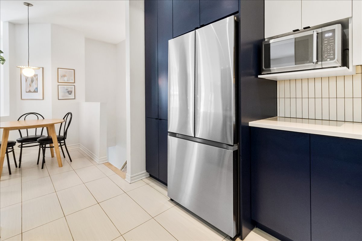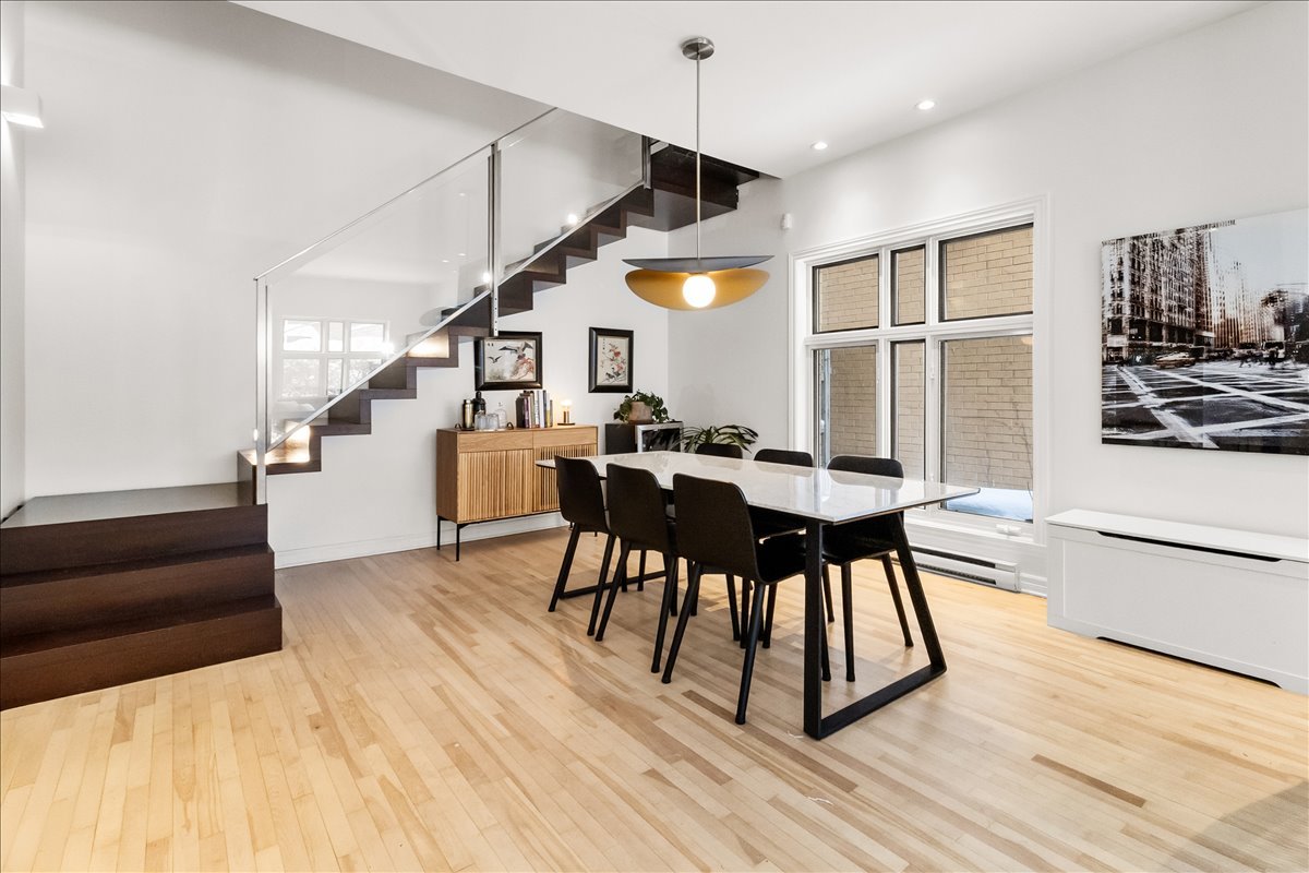 Maison de ville sur allée privée à Outremont. Aire de vie ouverte au rez-de-chaussée, cuisine rénovée avec comptoirs de quartz et coin repas, foyer au gaz, salle d'eau. Trois chambres, dont une mezzanine polyvalente (chambre, bureau ou salle familiale). Salle de bains rénovée avec bain et douche séparés. Terrasse privée sur le toit et jardin privé à l'avant. Deux thermopompes murales, très grand rangement, garage intégré avec accès intérieur. À proximité de Stanislas, du campus MIL de l'université de Montréal et de la station Canora du REM.