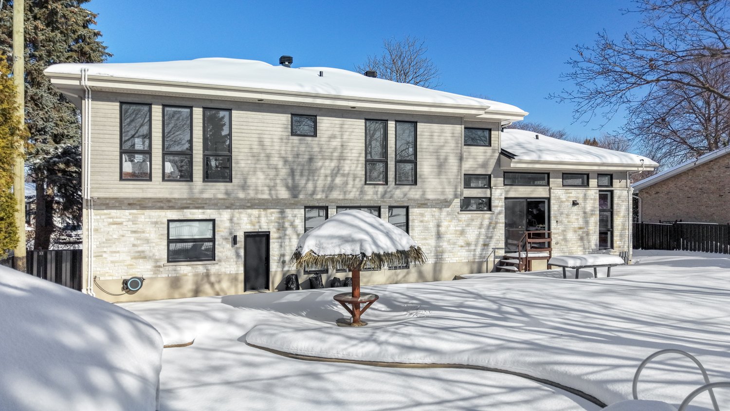 Propriété d'exception reconstruite et agrandie avec raffinement en 2021, à l'exception d'une section du plancher de fondation d'origine (1974) soigneusement conservée. La réalisation a été confiée à un gestionnaire de projet en construction, garantissant une exécution irréprochable et des standards de qualité élevés.