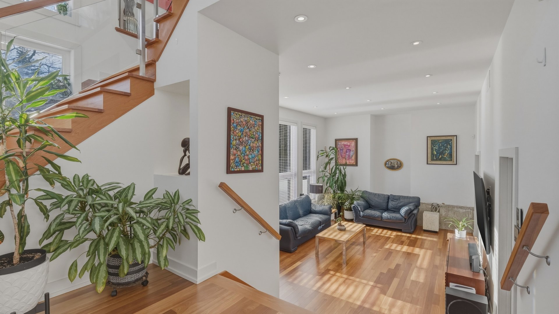 Dès l'arrivée, un majestueux hall d'entrée avec garde-robe double impressionne par sa perspective sur l'escalier architectural et la généreuse fenestration.