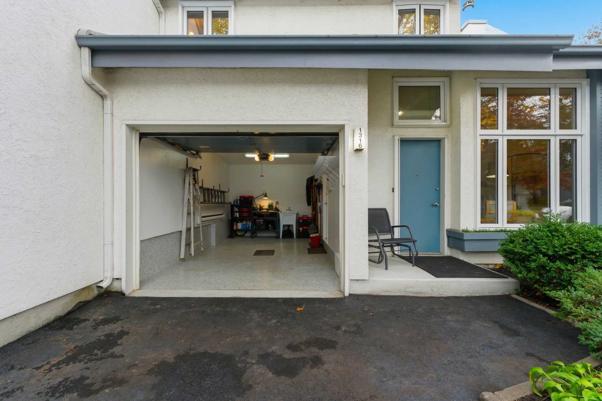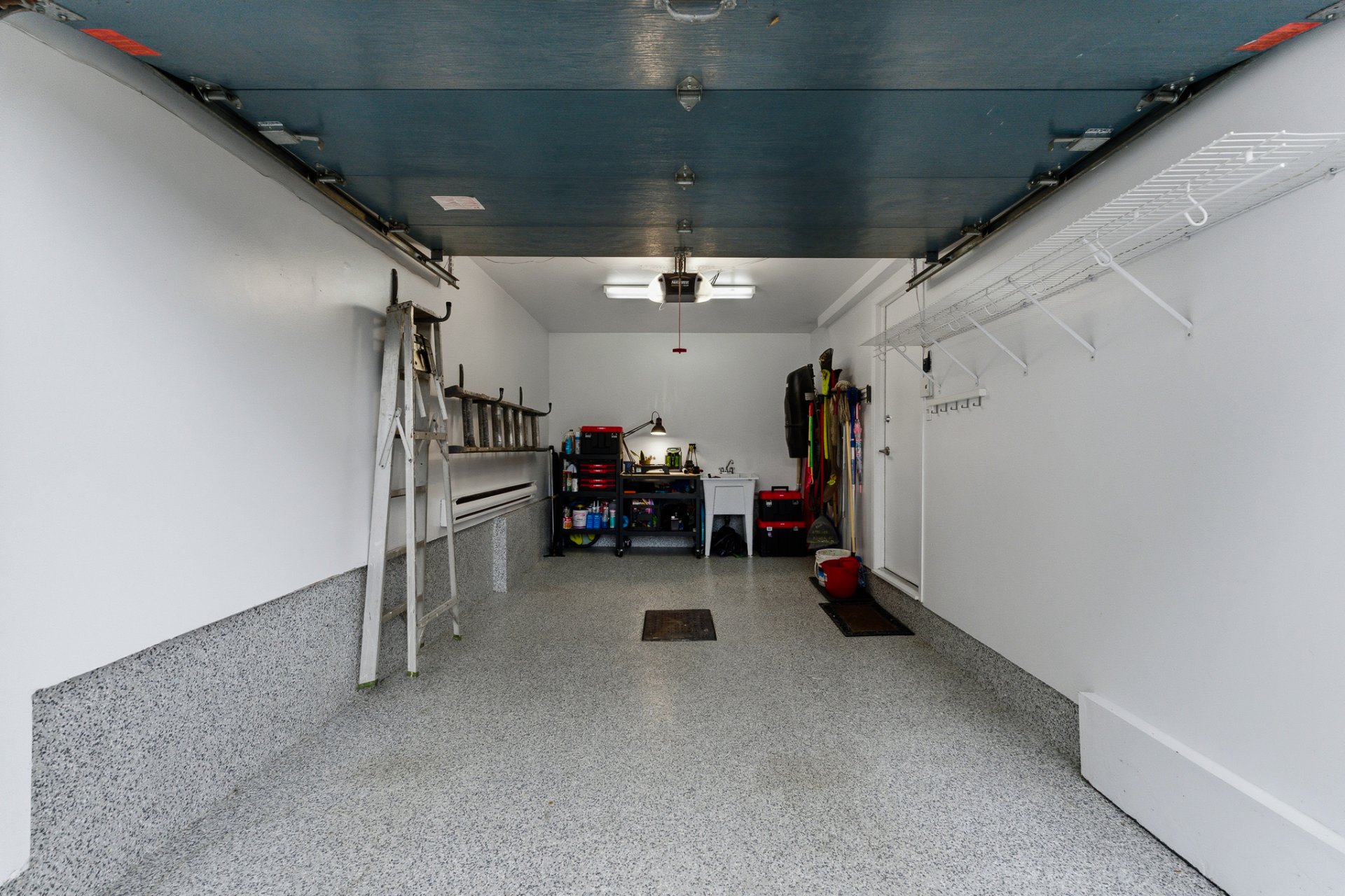 Garage intégré avec plancher en époxy, pratique et facile d'entretien.