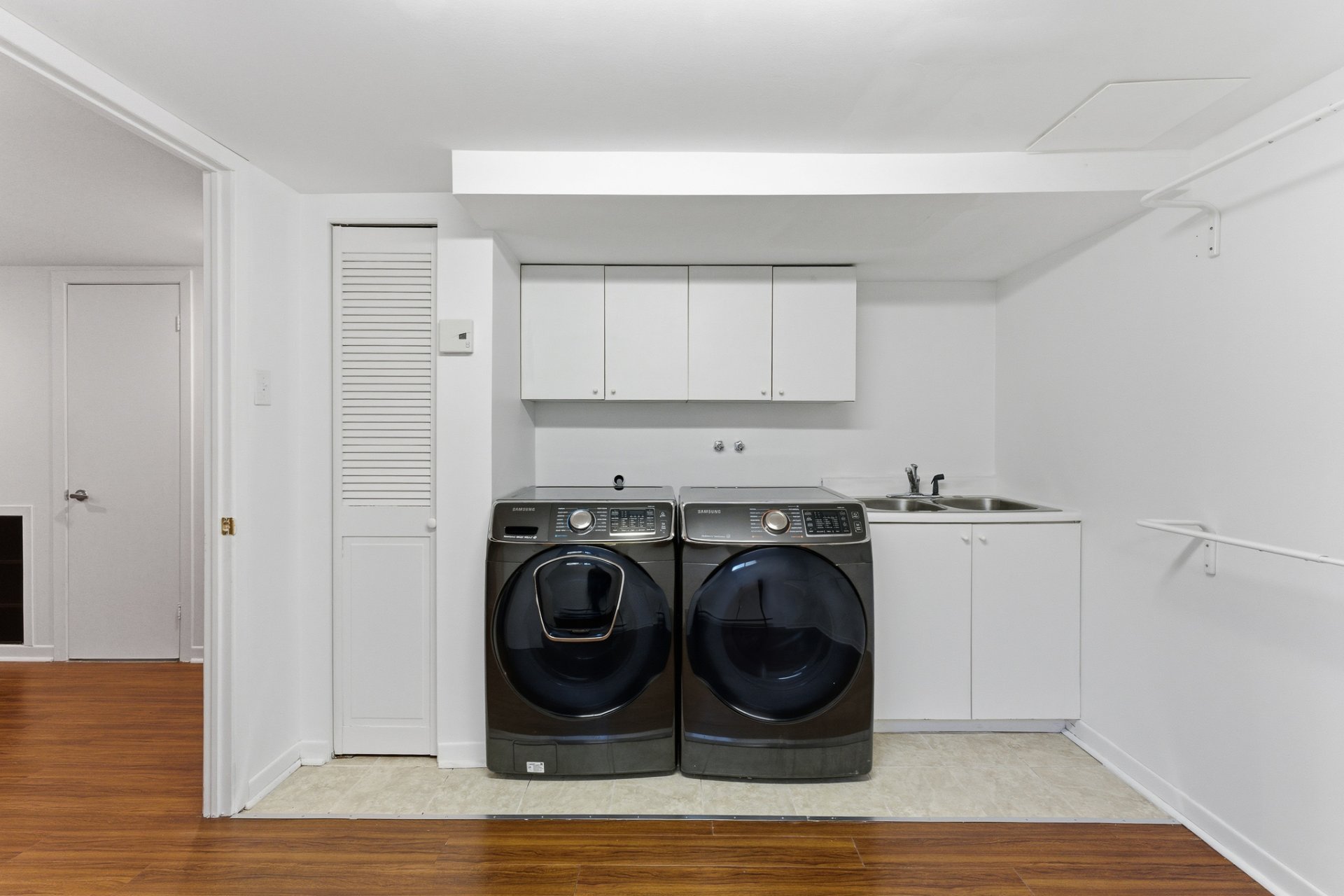 Au sous-sol, vous trouverez une vaste salle familiale, ainsi qu'une salle de lavage avec rangement et évier.