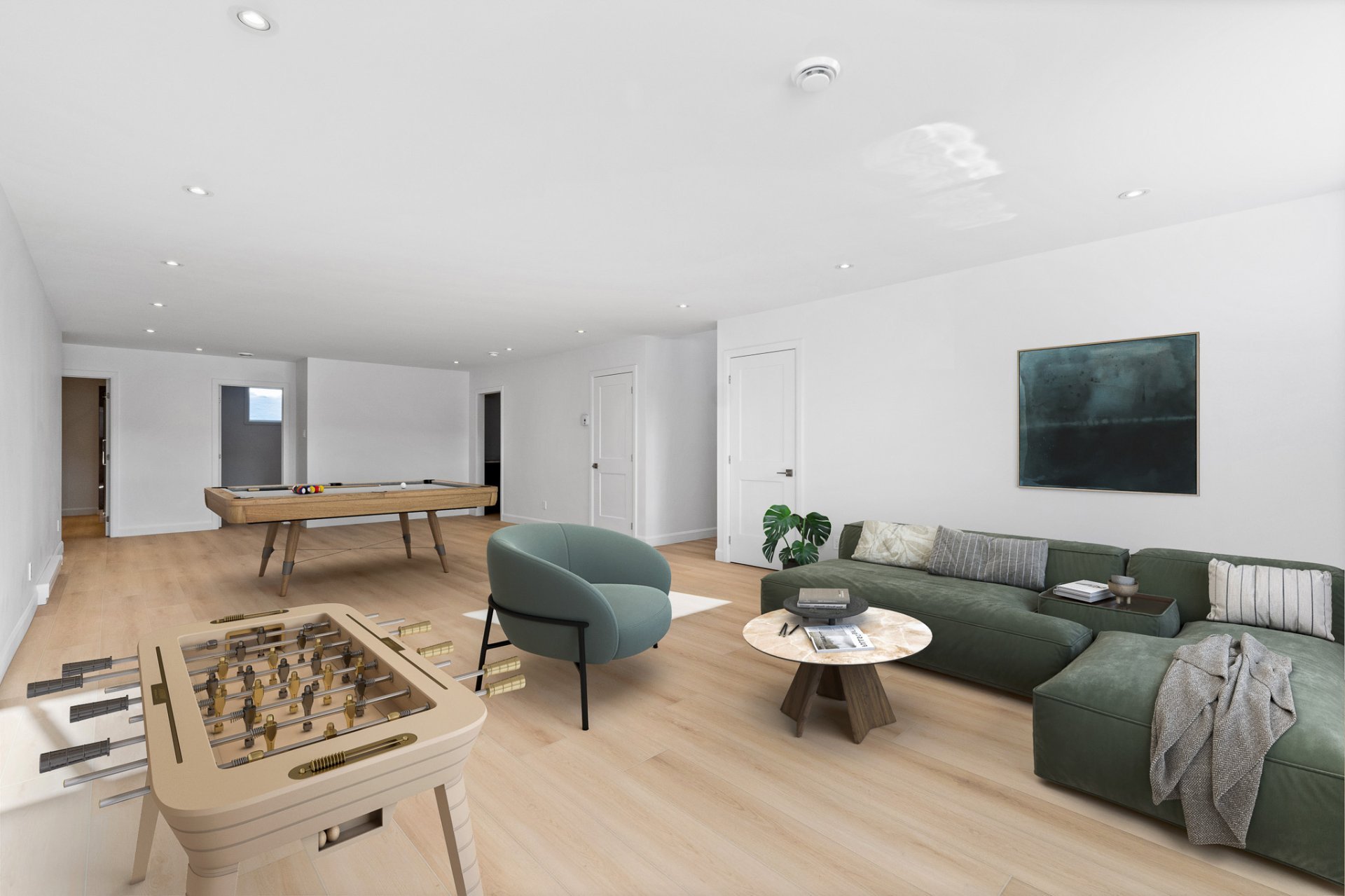 Le sous-sol comprend 2 grandes chambres à coucher, une salle de bain complète avec double évier et douche indépendante, ainsi qu'une buanderie. Vous y trouverez aussi une spacieuse salle familiale polyvalente, idéale pour une salle de cinéma, un bar avec table de billard, une salle de jeux ou un gym.