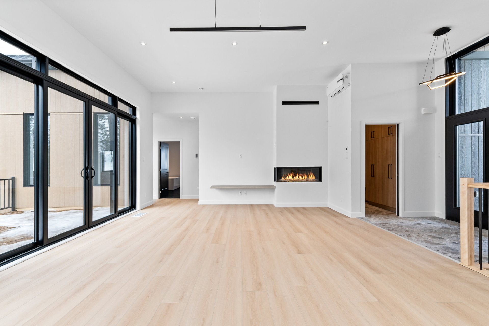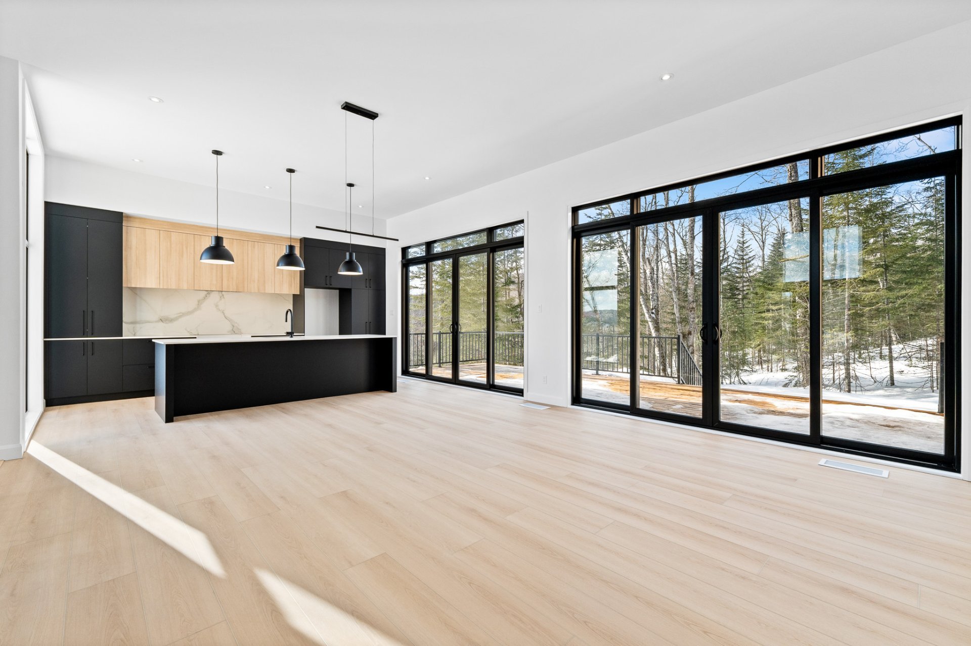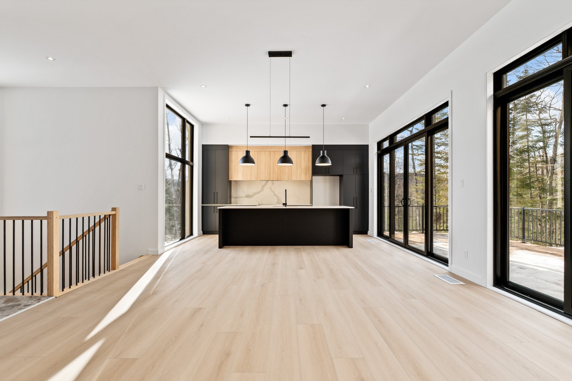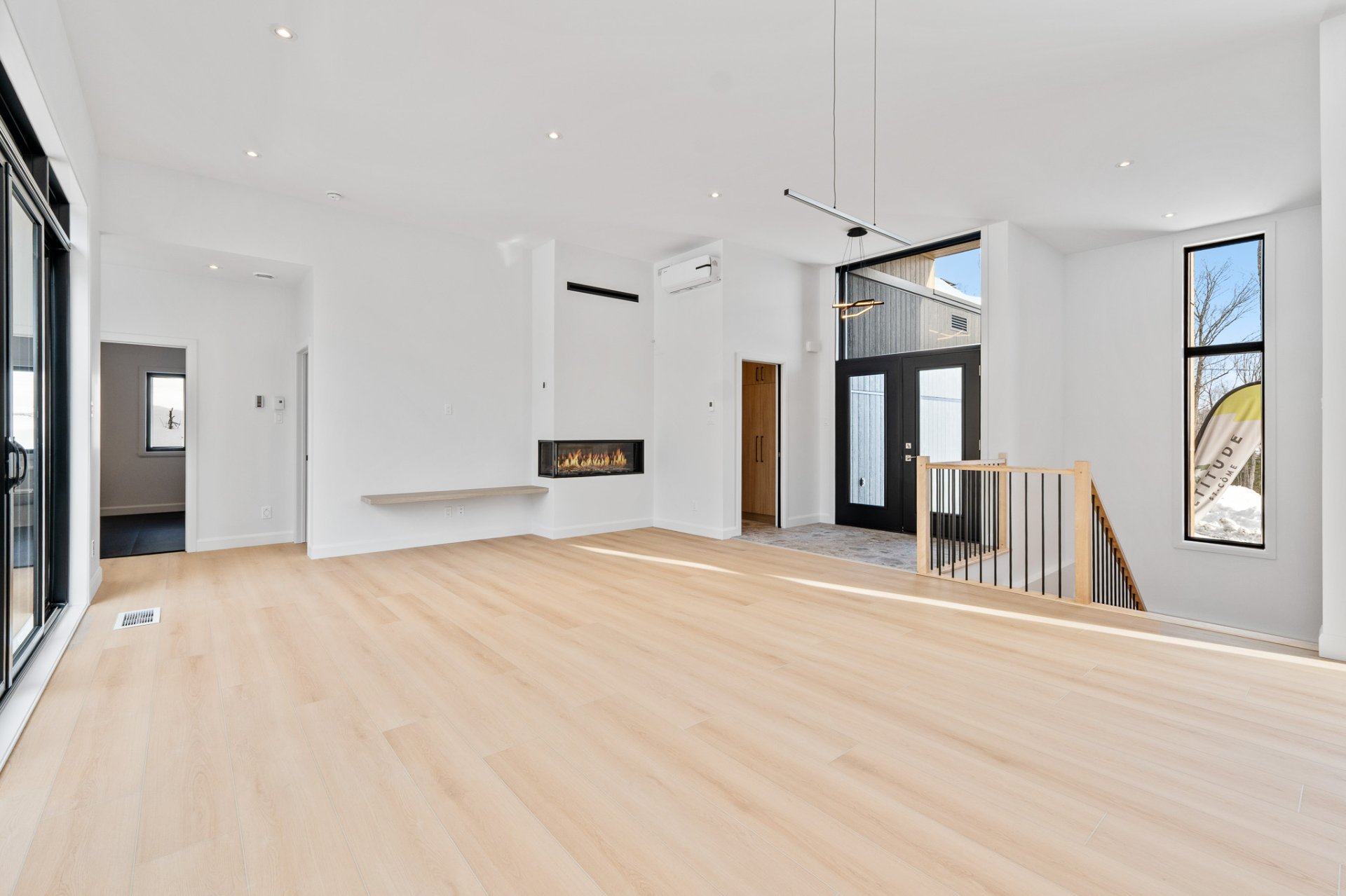 Dès votre entrée, vous serez séduit par la vue imprenable sur les montagnes environnantes, grâce au mur arrière avec portes-patio doubles. Un mudroom avec meubles en mélamine et pôle vous donne un accès direct au garage, idéal pour ranger votre équipement pour les activités estivales ou hivernales.