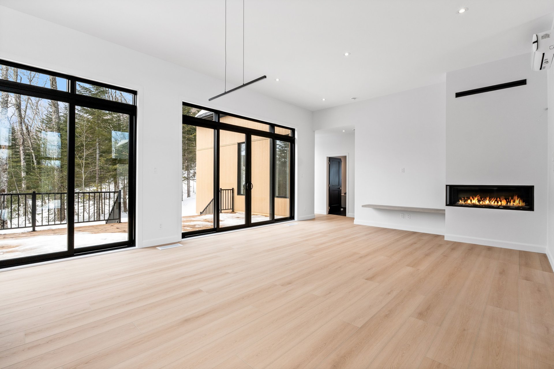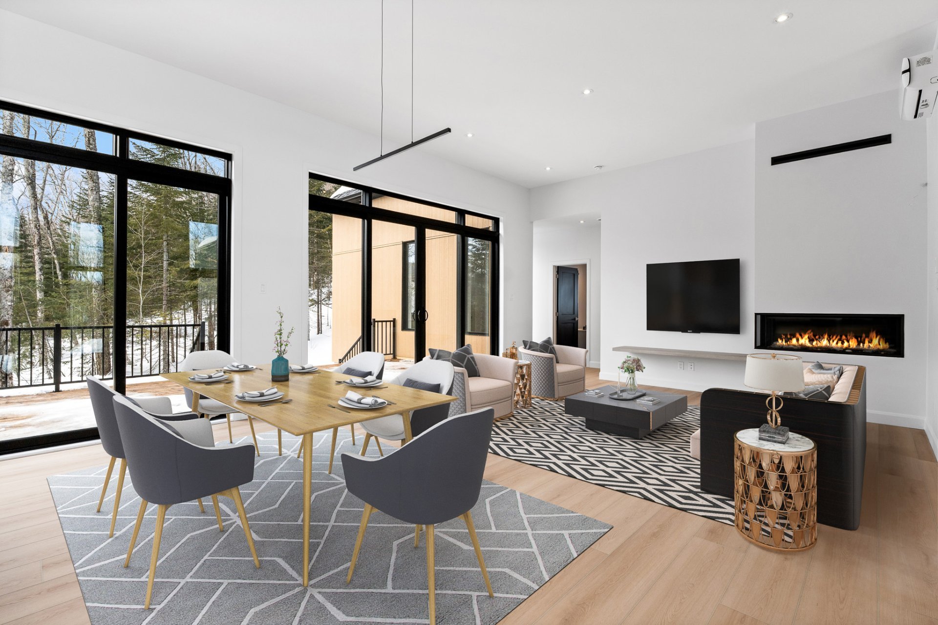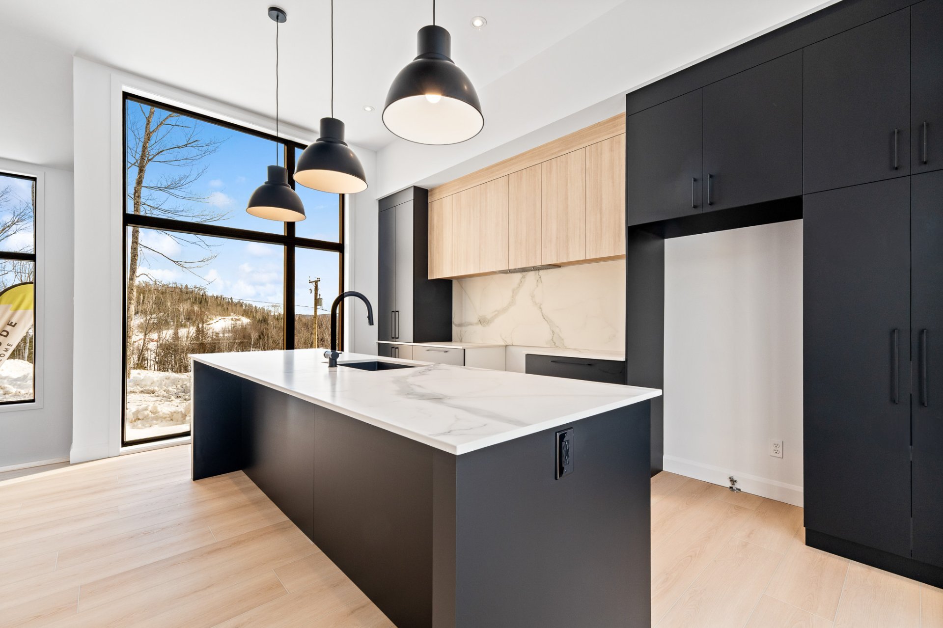 Dès votre entrée, vous serez séduit par la vue imprenable sur les montagnes environnantes, grâce au mur arrière avec portes-patio doubles. Un mudroom avec meubles en mélamine et pôle vous donne un accès direct au garage, idéal pour ranger votre équipement pour les activités estivales ou hivernales.