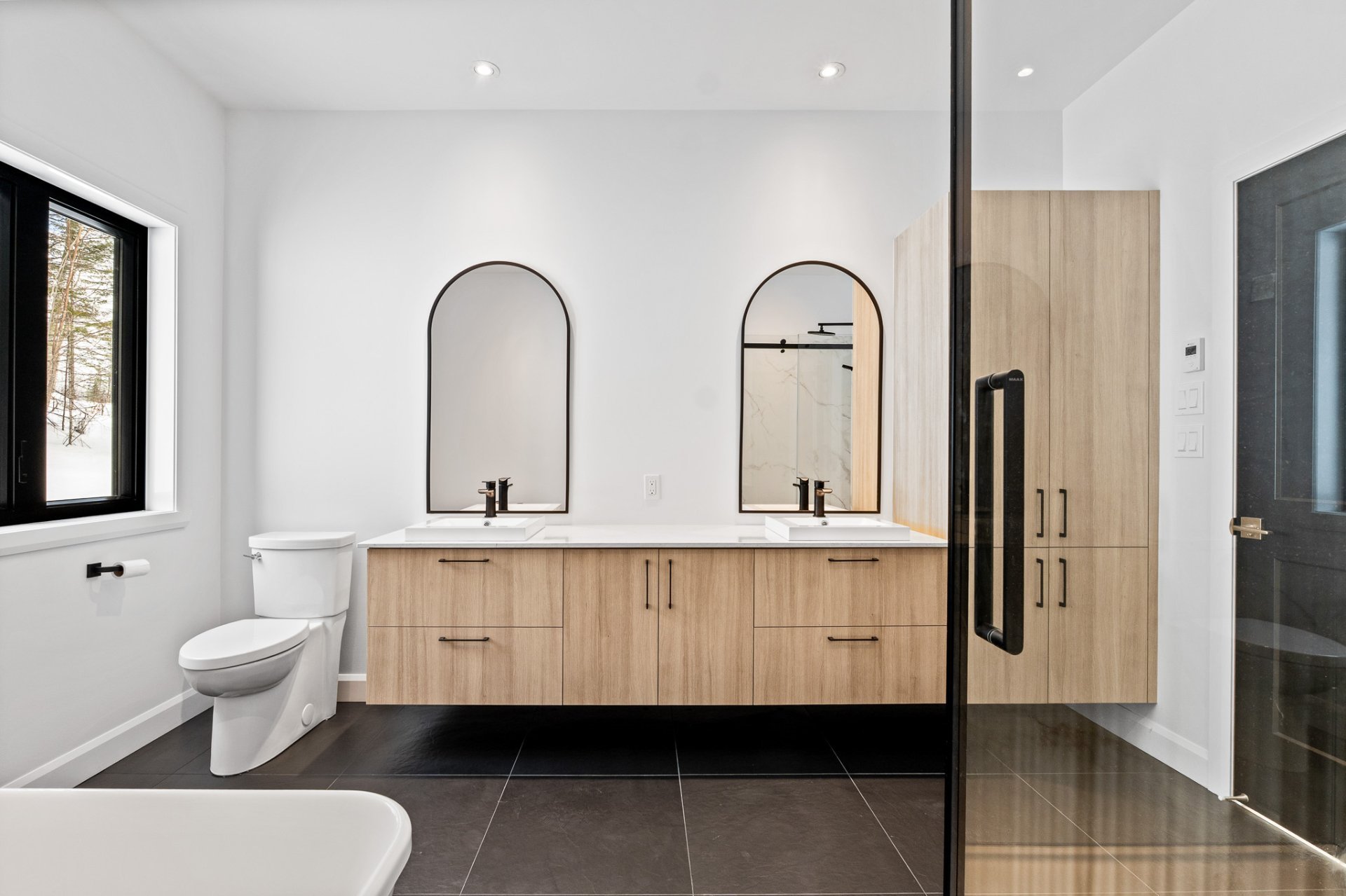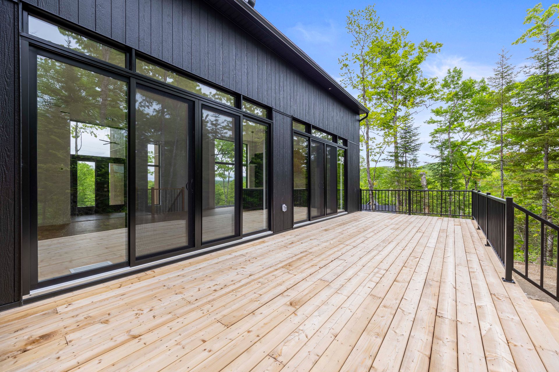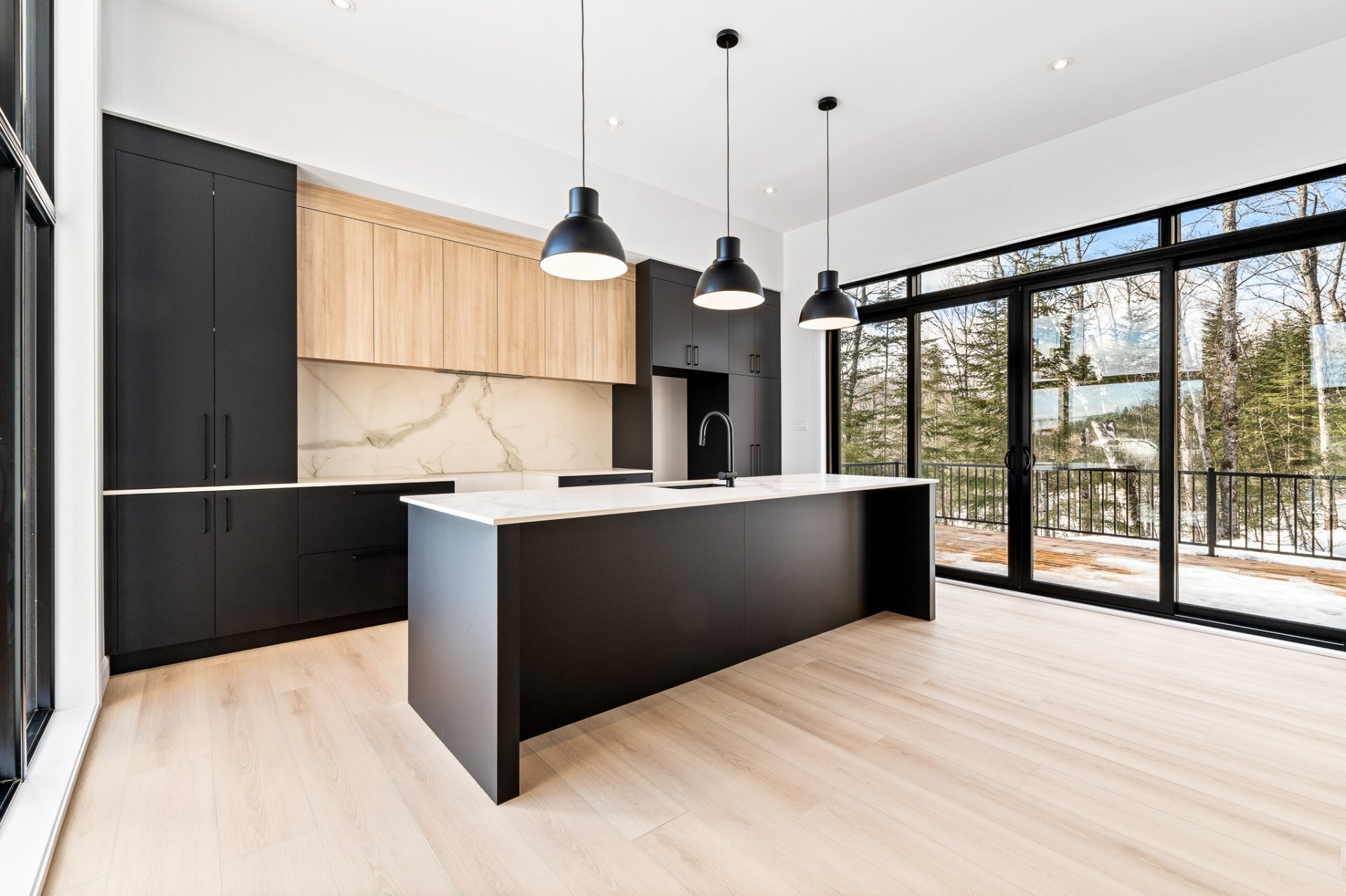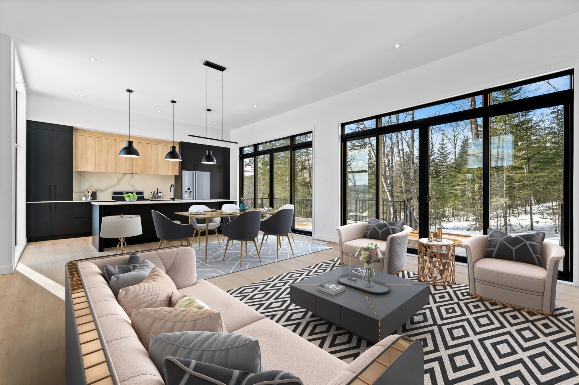 Dès votre entrée, vous serez séduit par la vue imprenable sur les montagnes environnantes, grâce au mur arrière avec portes-patio doubles. Un mudroom avec meubles en mélamine et pôle vous donne un accès direct au garage, idéal pour ranger votre équipement pour les activités estivales ou hivernales.