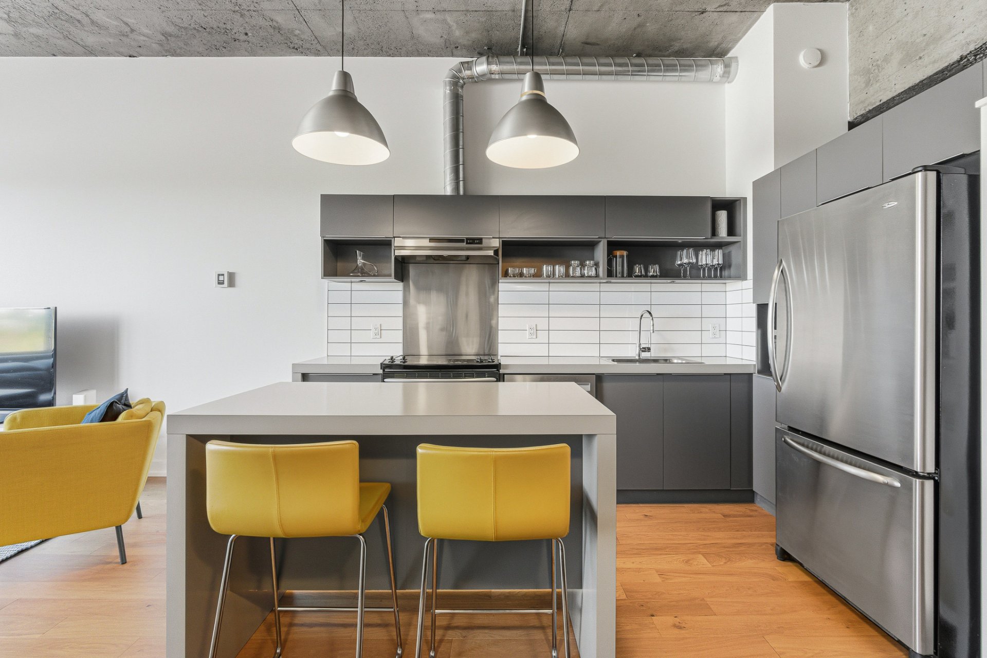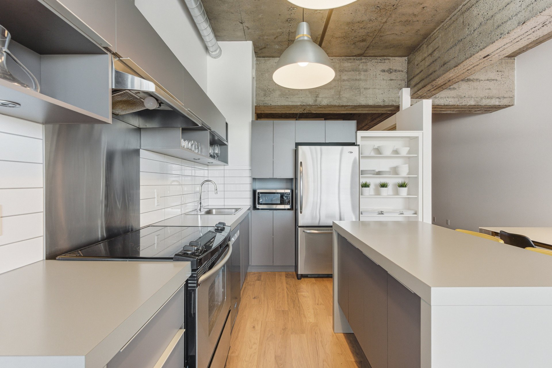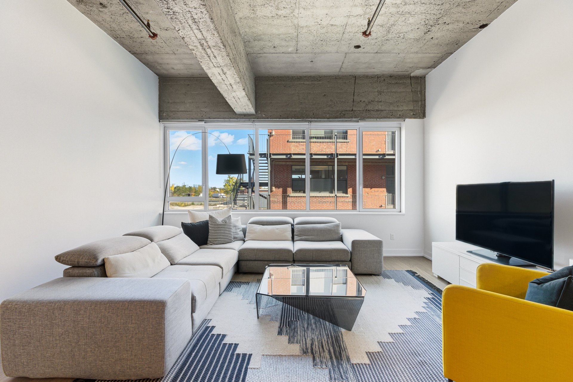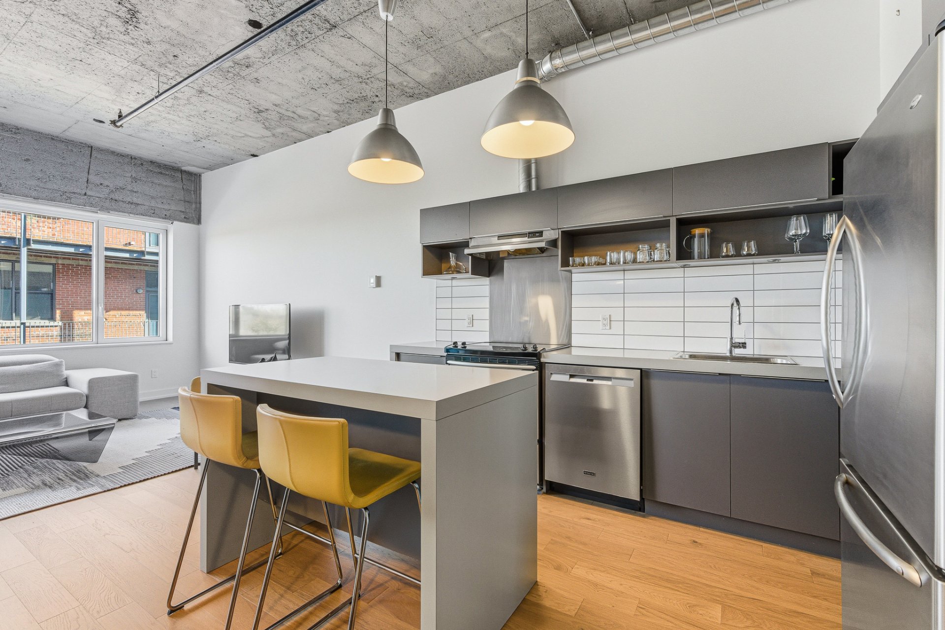 Loft industriel de 989 pi² au 2e étage - Cachet authentique et style urbain. Découvrez ce superbe loft au design industriel new-yorkais, situé dans l'emblématique Biscuiterie Viau (Phase 2). Ce bâtiment historique, construit en 1952 et réaménagé en copropriété en 2008, marie parfaitement le charme du patrimoine et le confort contemporain. Au 2e étage, ce loft spacieux de 989 pi² offre un espace de vie décloisonné et chaleureux. Les plafonds de 11 pieds, les colonnes de béton apparentes et les finitions brutes mettent en valeur le caractère unique de l'édifice d'origine.