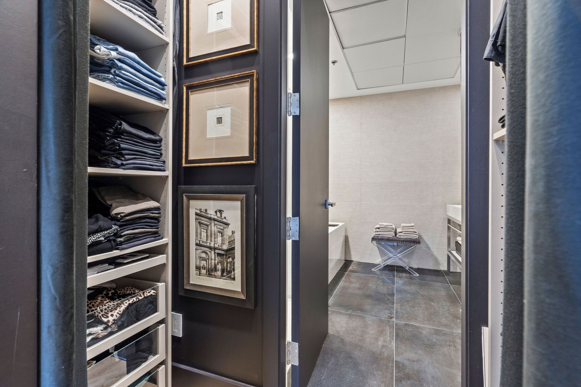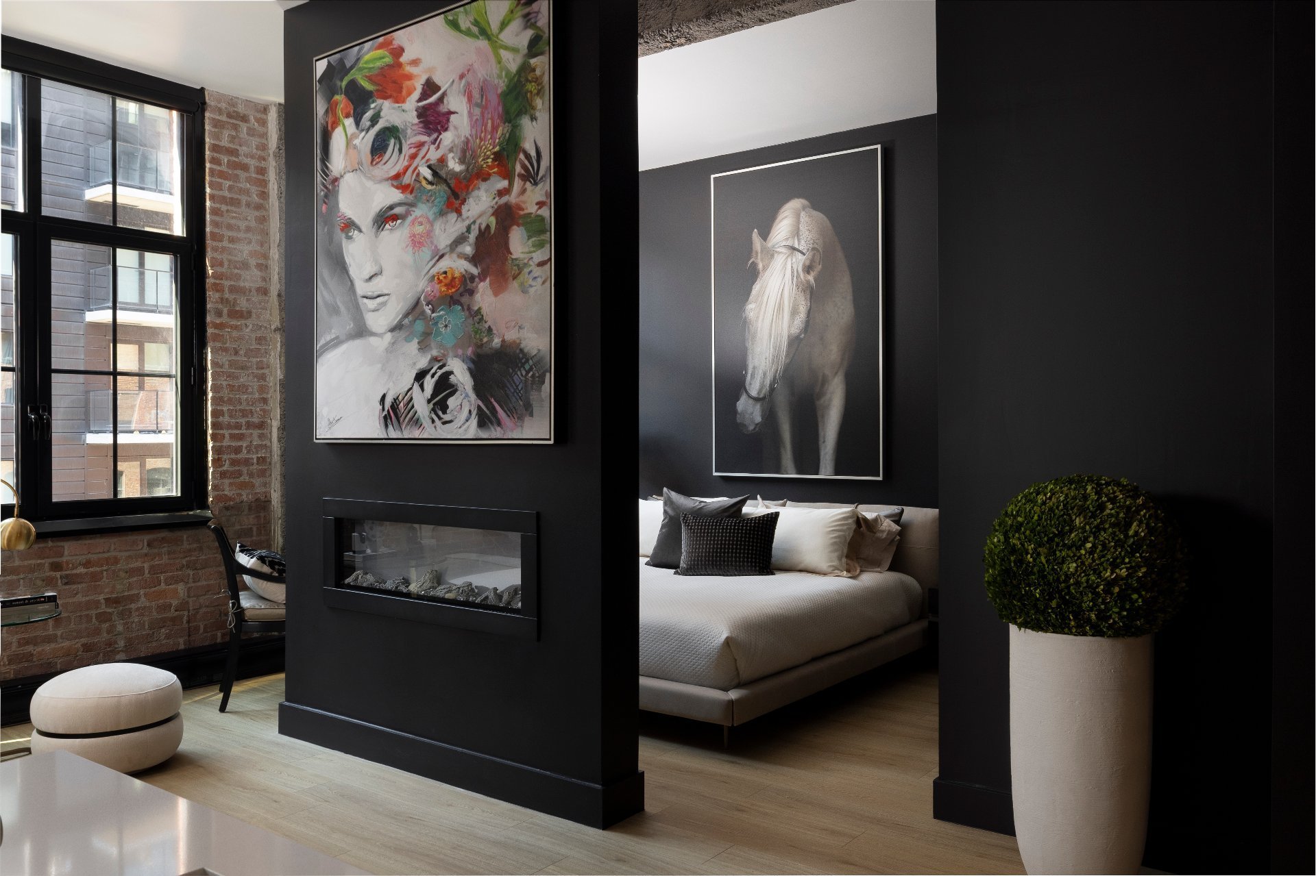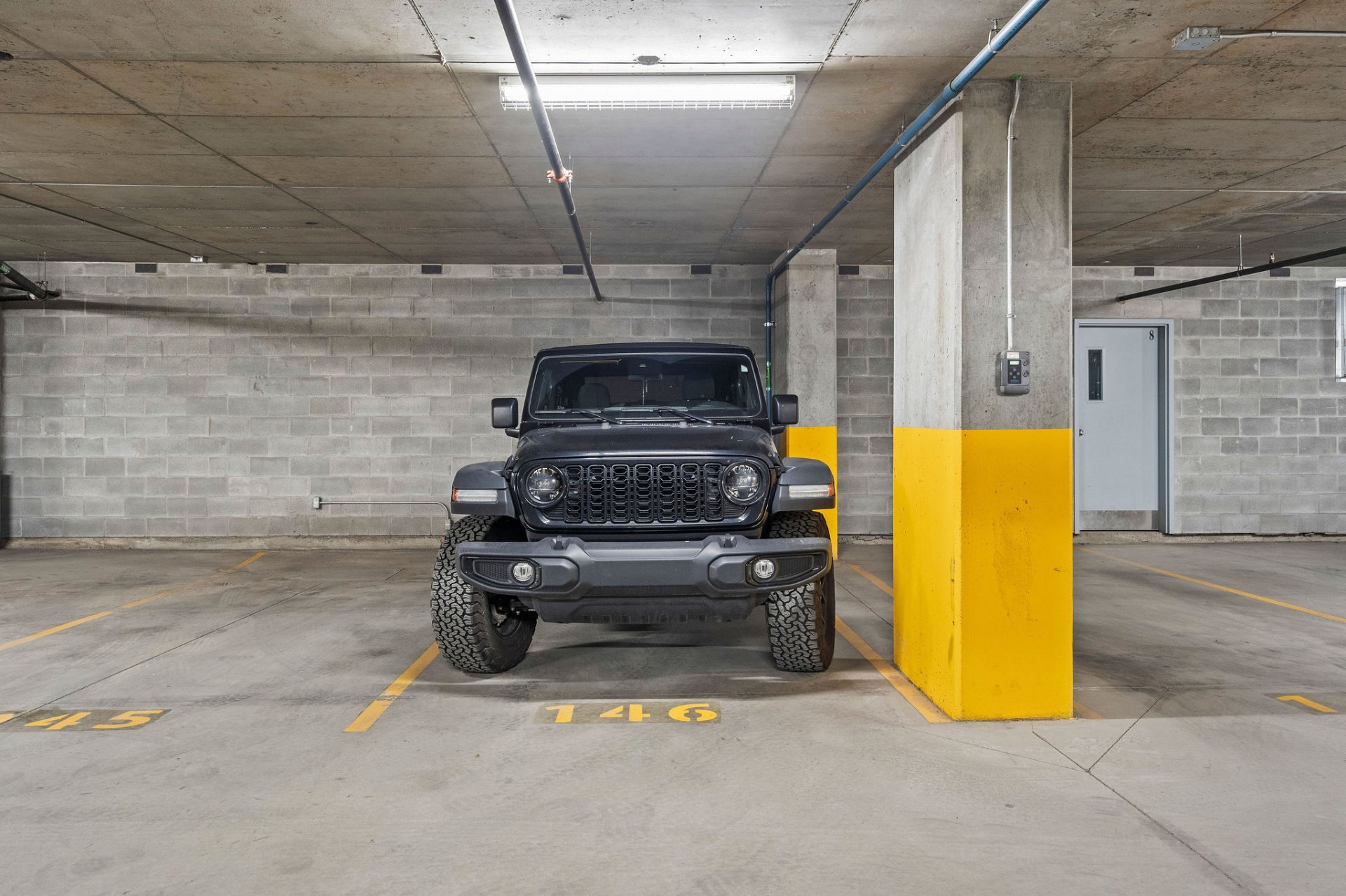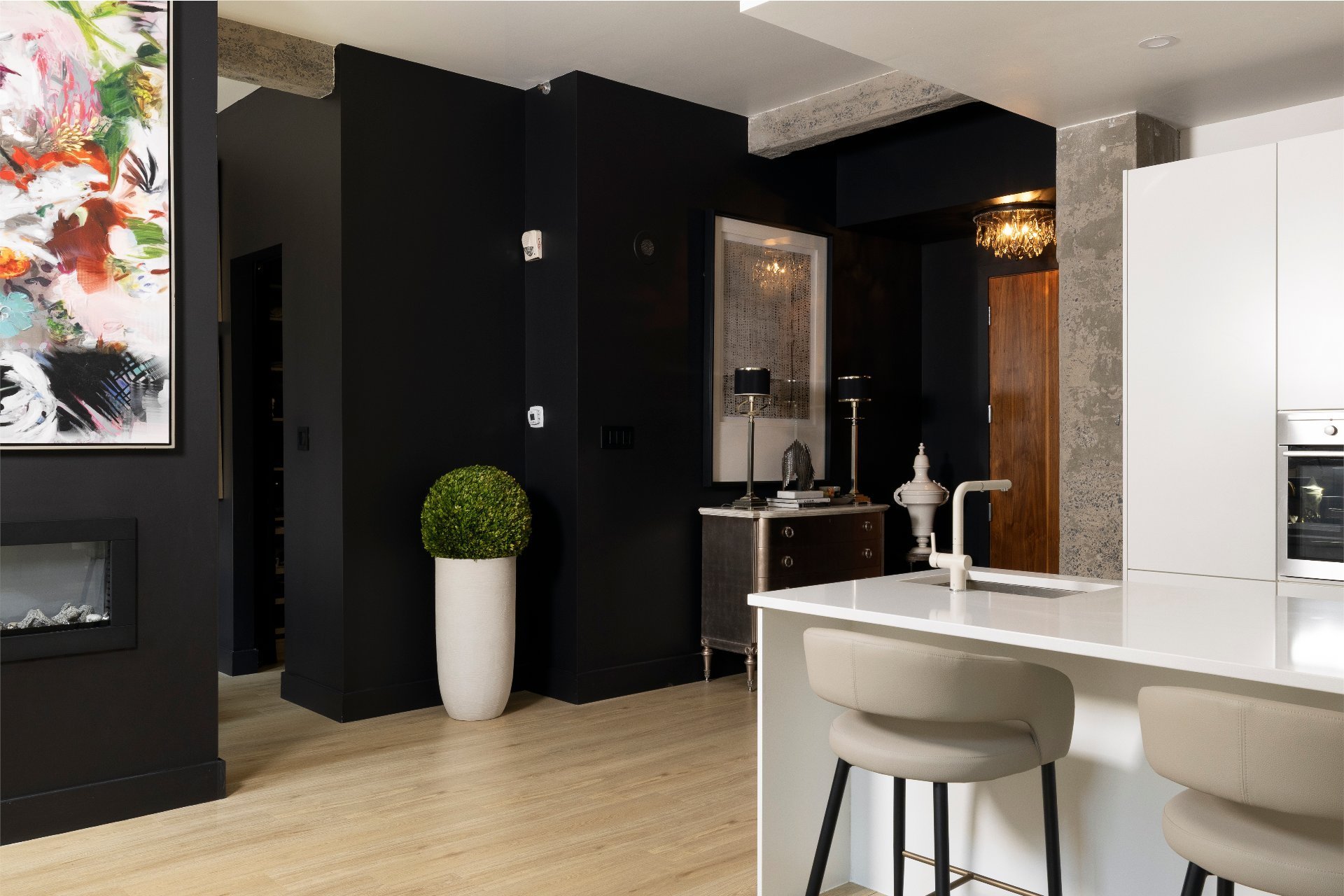 Dès l'entrée dans l'unité, l'alliance des matériaux nobles et industriels séduit instantanément : planchers de bois francs, poutres de béton apparentes et fenestration spectaculaire. La salle de bain se distingue par ses finitions luxueuses : douche à effet pluie, bain profond et planchers chauffants pour un confort absolu.