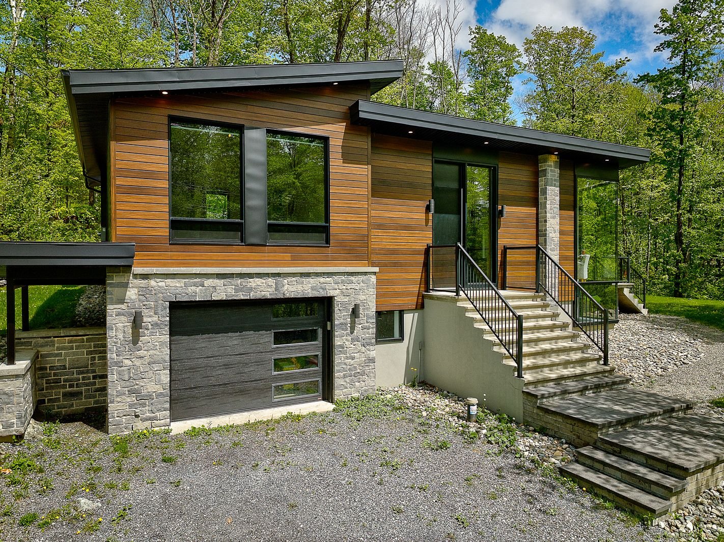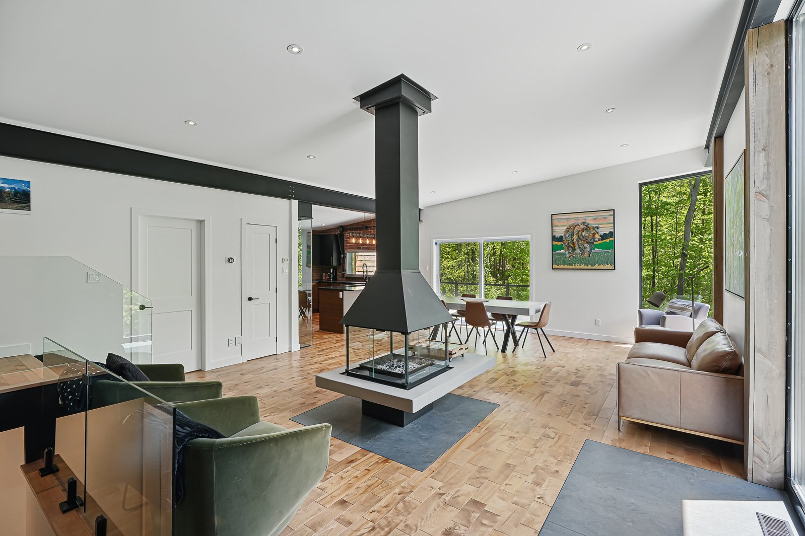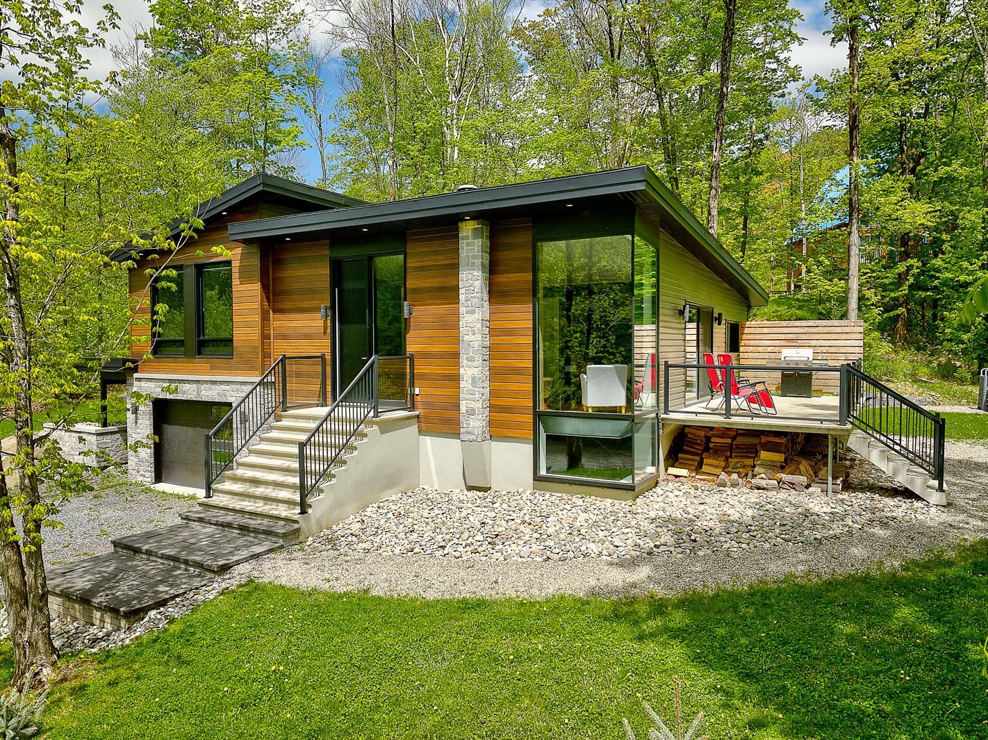 Résidence contemporaine située dans le secteur recherché du lac Nick à Bolton-Est. Offrant hauts plafonds, grande fenestration et foyer central, elle propose des espaces de vie lumineux et bien pensés. Terrain boisé avec vaste balcon pour une immersion en nature. Trois chambres, deux salles de bains et garage. Construction récente, soigneusement entretenue. Confort quatre saisons avec thermopompe centrale et poêle à bois. Accès à la plage privée du lac Nick, un lac écologique non motorisé reconnu pour la qualité de son eau. À proximité des stations de ski, à 10 minutes d'Eastman, 25 minutes de Magog et environ 1 h 20 de Montréal.