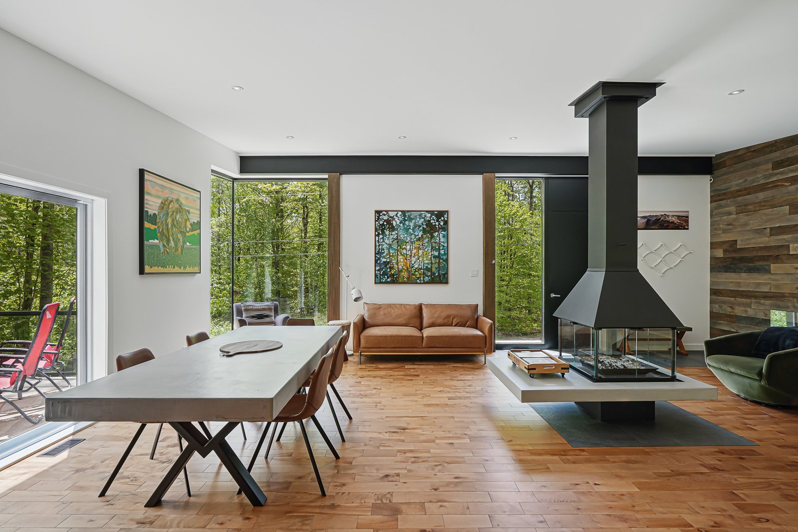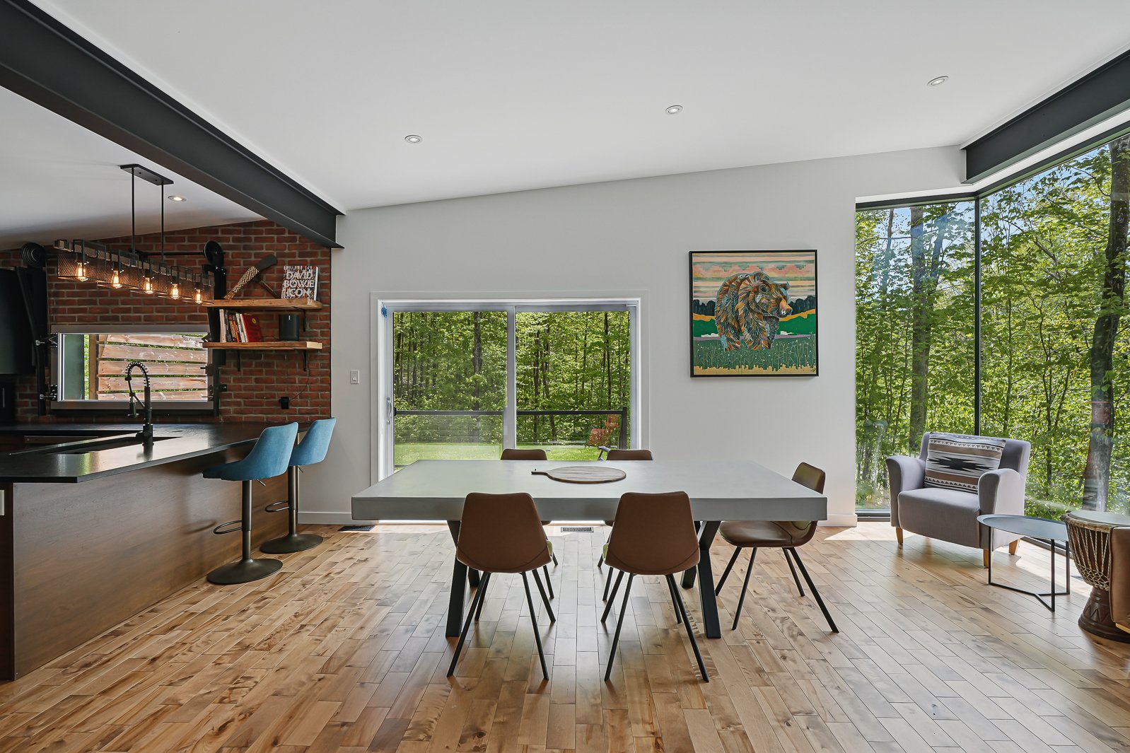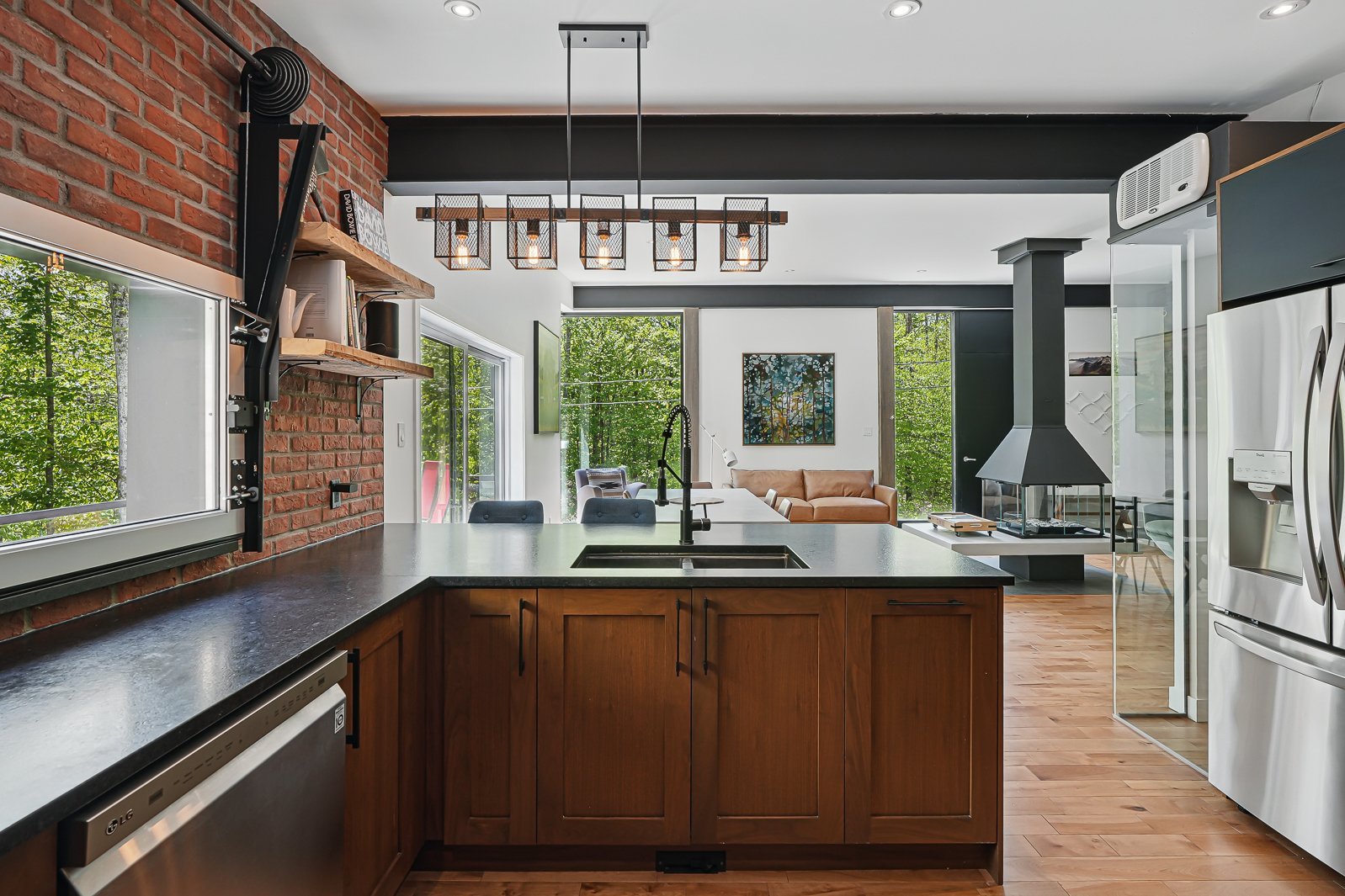 Résidence contemporaine située dans le secteur recherché du lac Nick à Bolton-Est. Offrant hauts plafonds, grande fenestration et foyer central, elle propose des espaces de vie lumineux et bien pensés. Terrain boisé avec vaste balcon pour une immersion en nature. Trois chambres, deux salles de bains et garage. Construction récente, soigneusement entretenue. Confort quatre saisons avec thermopompe centrale et poêle à bois. Accès à la plage privée du lac Nick, un lac écologique non motorisé reconnu pour la qualité de son eau. À proximité des stations de ski, à 10 minutes d'Eastman, 25 minutes de Magog et environ 1 h 20 de Montréal.