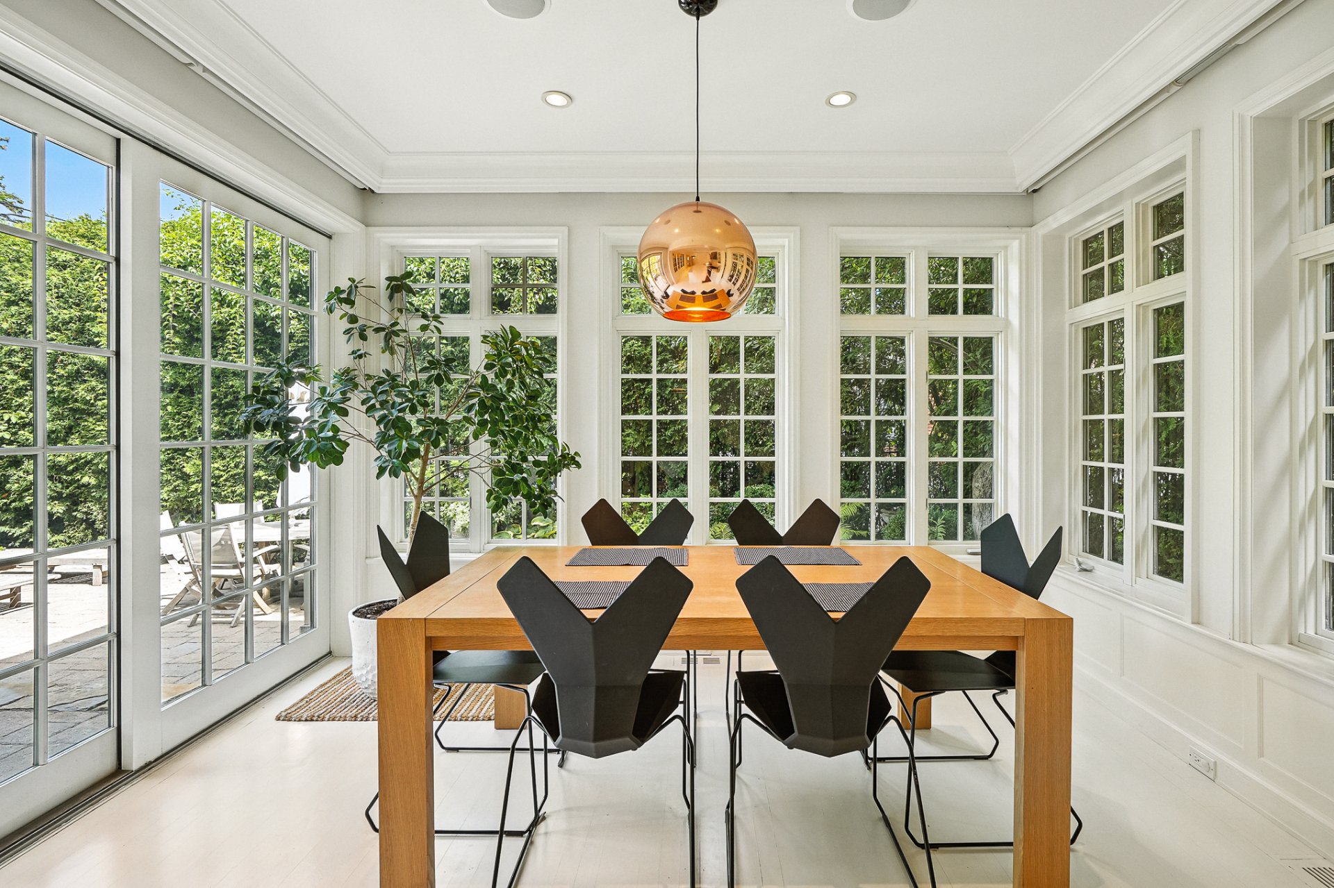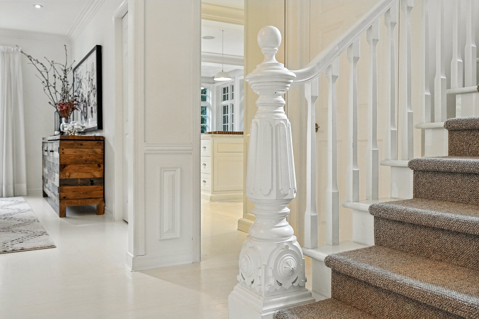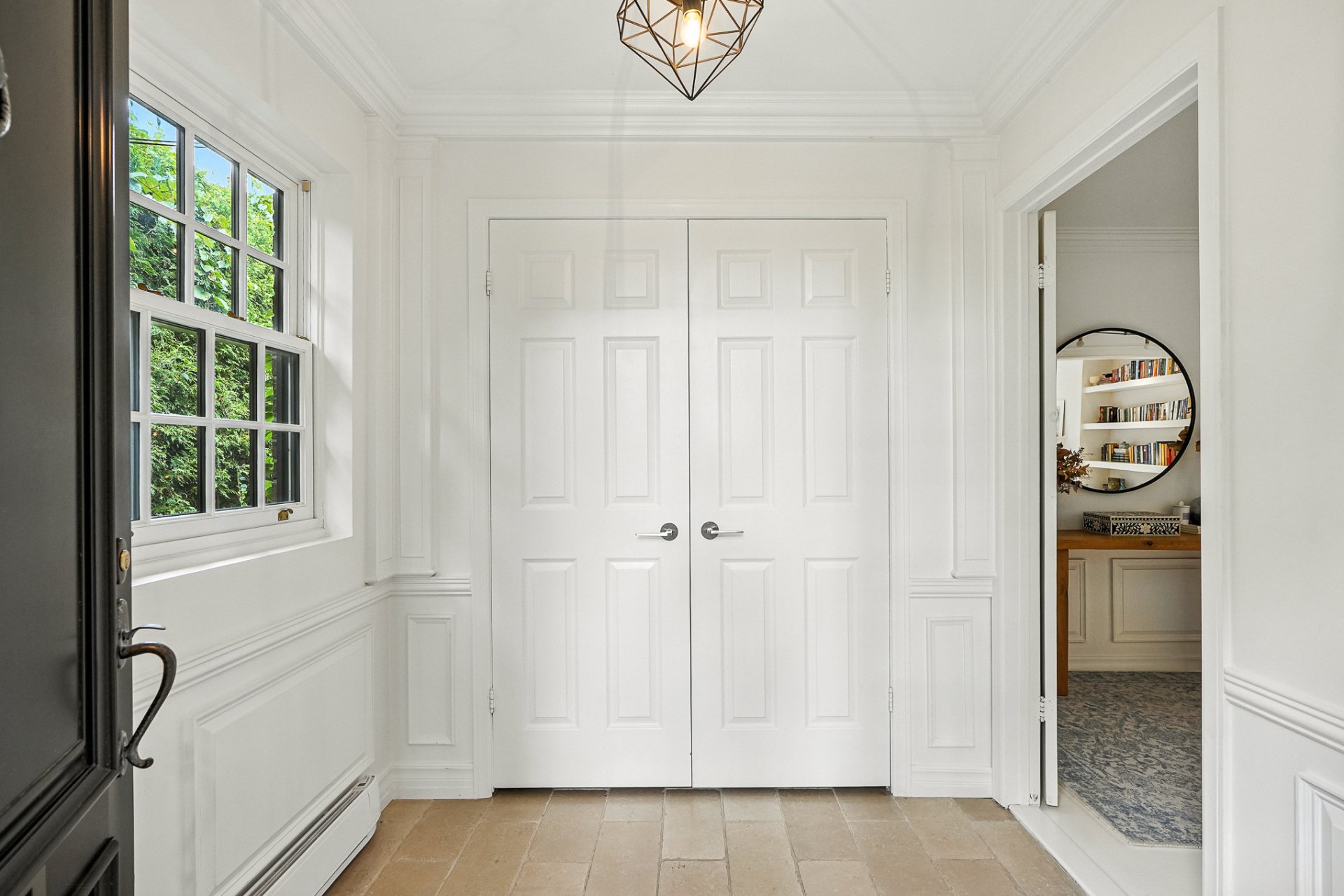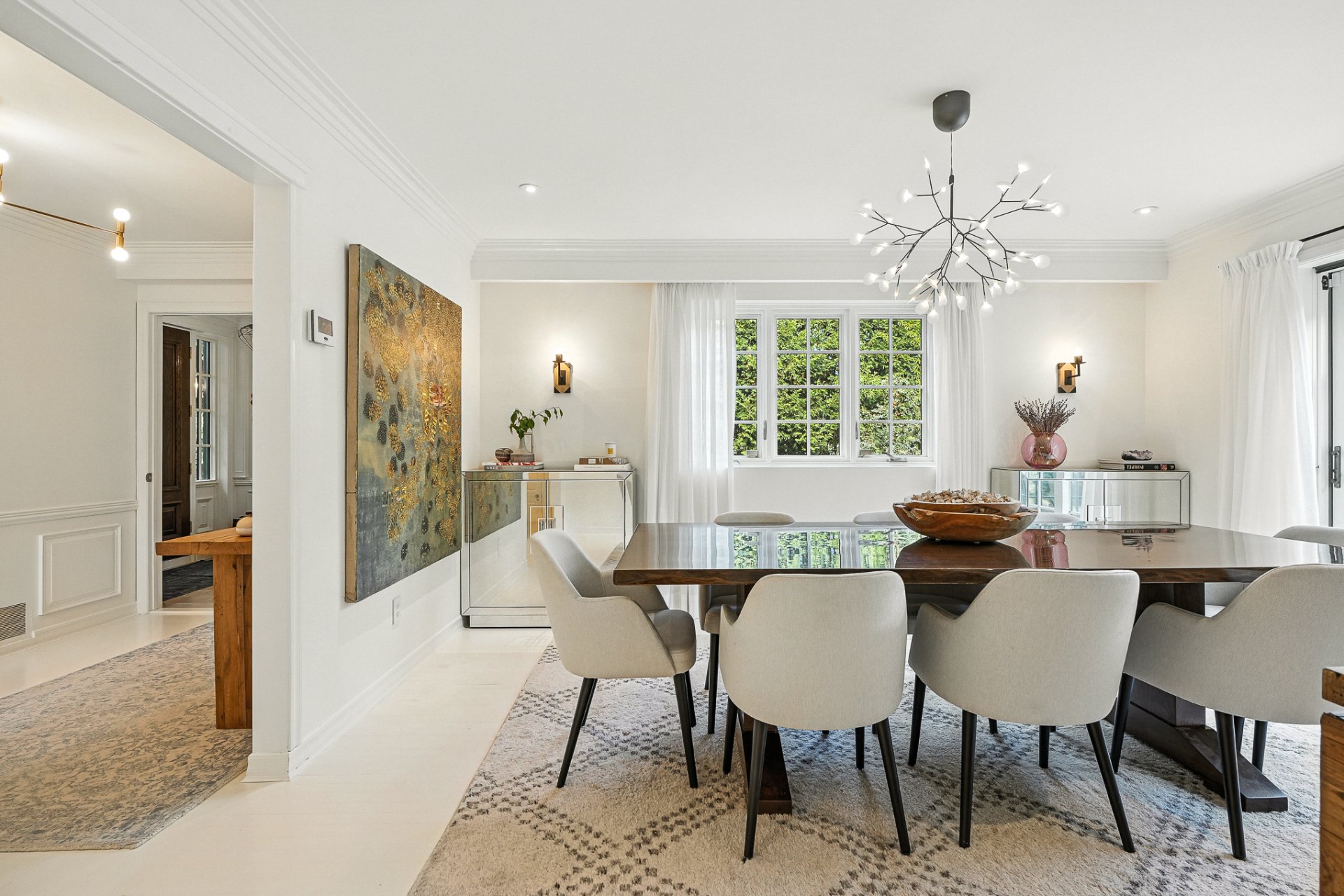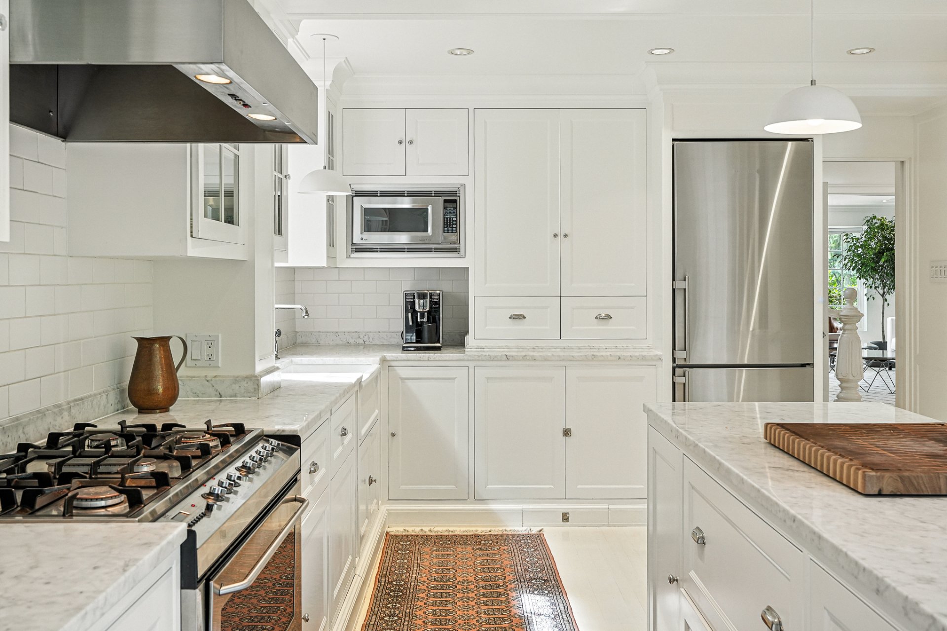 Les aires de vie se succèdent avec fluidité -- un salon lumineux avec foyer, une salle à manger conviviale qui s'ouvre sur la terrasse, et une cuisine spectaculaire, coeur de la maison, avec grand îlot central et vaisselier encastré pleine hauteur. Conçue avec minutie, elle marie marbre, boiseries sur mesure et électroménagers haut de gamme, le tout prolongé par un coin-repas en verrière, fenêtre sur la cour.