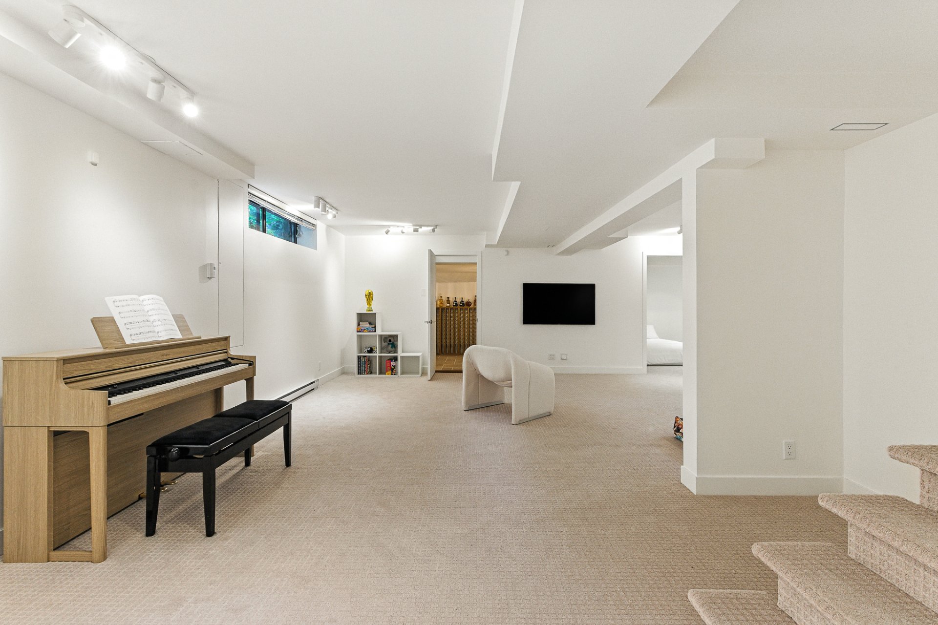 Au sous-sol, une grande salle familiale, une chambre supplémentaire, salle de bain, salle de lavage, cave à vin aménagée et beaucoup de rangement.