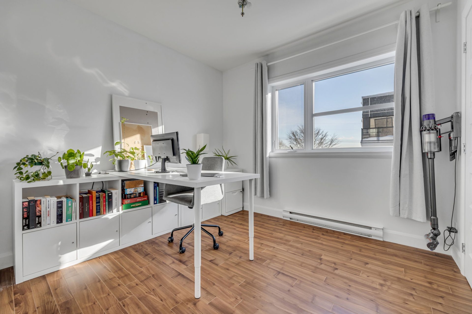 Superbe unité de coin située face au parc, offrant un environnement paisible avec de magnifiques sentiers où l'on se sent en véritable nature. Construction récente, cette copropriété propose un concept à aire ouverte, des espaces bien dégagés et une luminosité abondante. L'unité comprend deux chambres de belles dimensions, plusieurs espaces de rangement à l'intérieur, ainsi qu'un balcon privé donnant sur la cour intérieure. Un espace de stationnement est inclus. Située dans une petite copropriété bien gérée, cette propriété représente une opportunité idéale autant pour propriétaire occupant qu'investisseur. Flexibilité quant à l'occupation.