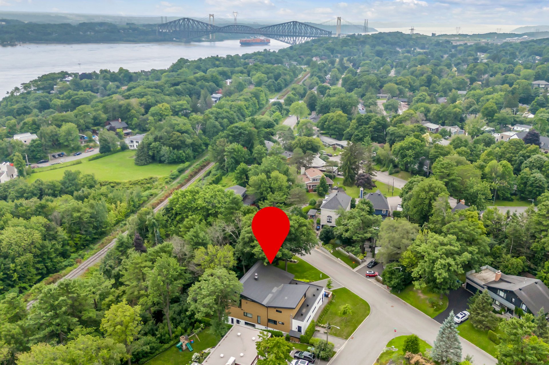 Nichée dans un cadre paisible, cette résidence à l'architecture élégante séduit dès le premier regard. Derrière sa façade aux teintes naturelles, l'entrée majestueuse nous accueille avec son imposant escalier. L'harmonie des matériaux se déploie à travers la maison. À l'étage, le regard est instinctivement attiré vers l'aire de vie baignée de lumière et l'horizon ouvert sur le fleuve. En surplomb, la salle à manger offre une vue panoramique, tandis que la volumétrie spectaculaire du toit aux pentes inversées confère à l'espace une atmosphère unique. La cuisine dévoile une cave à vin discrètement intégrée. Le luxe s'exprime dans le raffinement