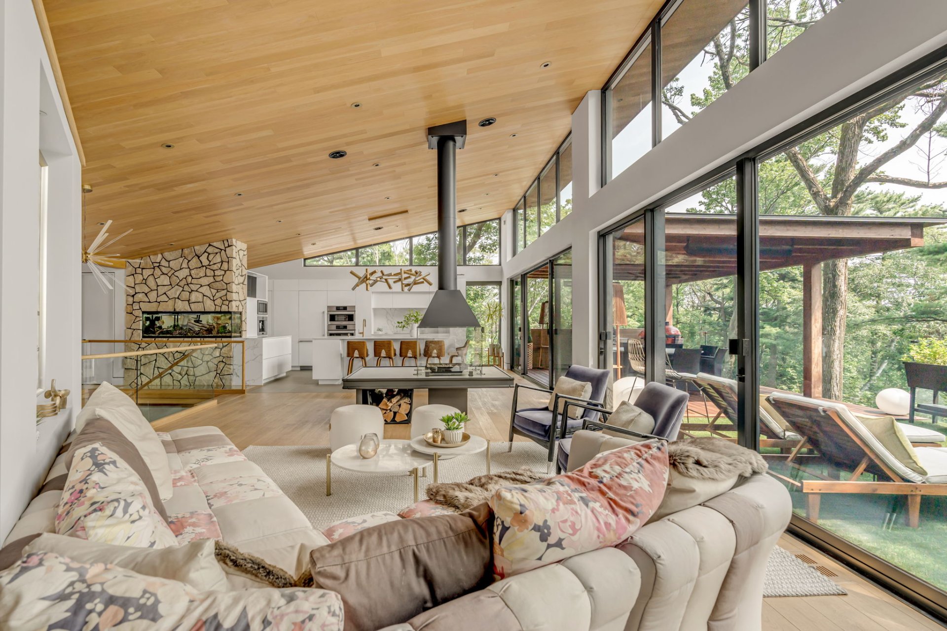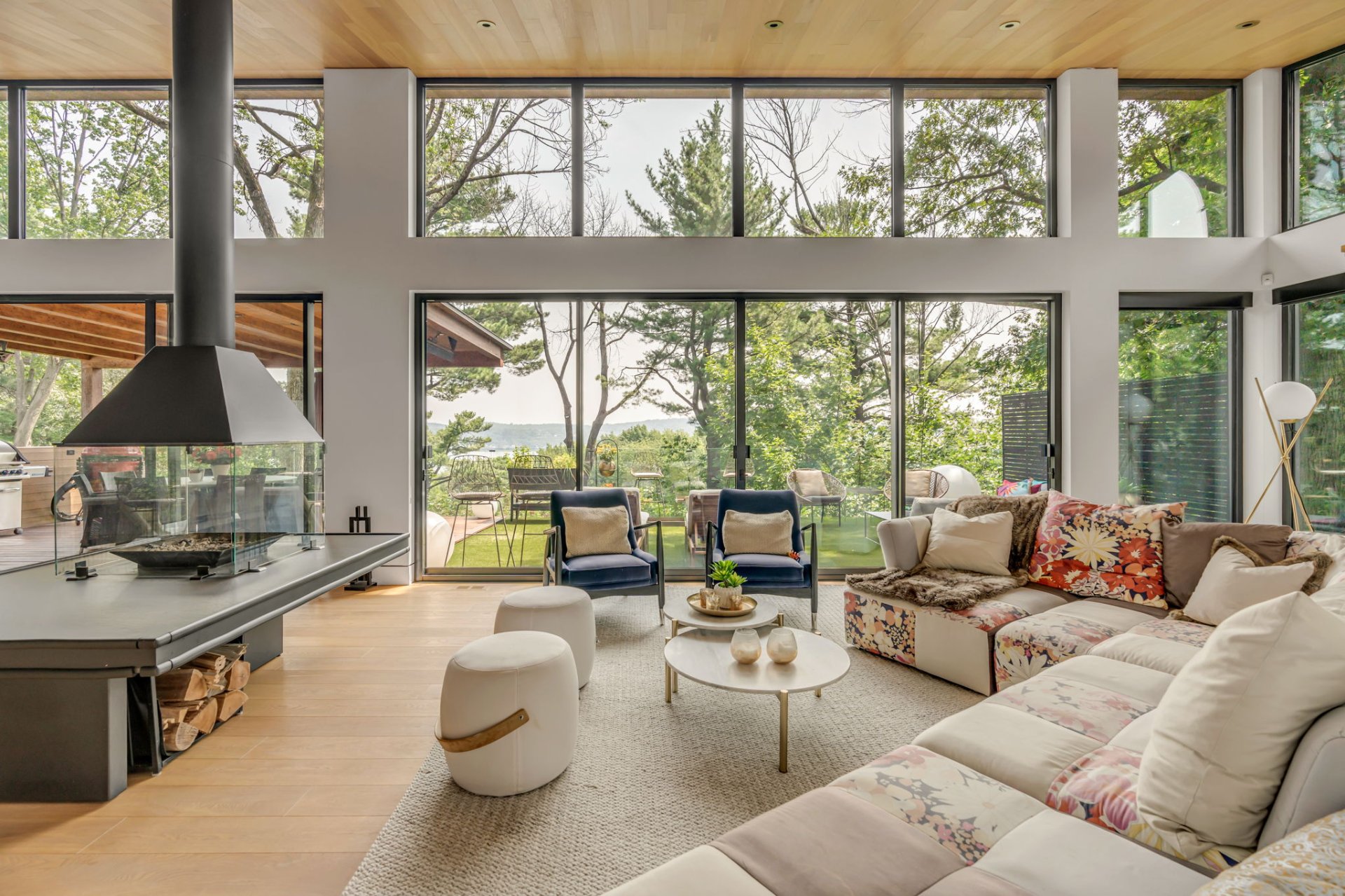 Deux salons, un avec foyer au bois et vue spectaculaire, l'autre plus intime pour se détendre devant la télévision.