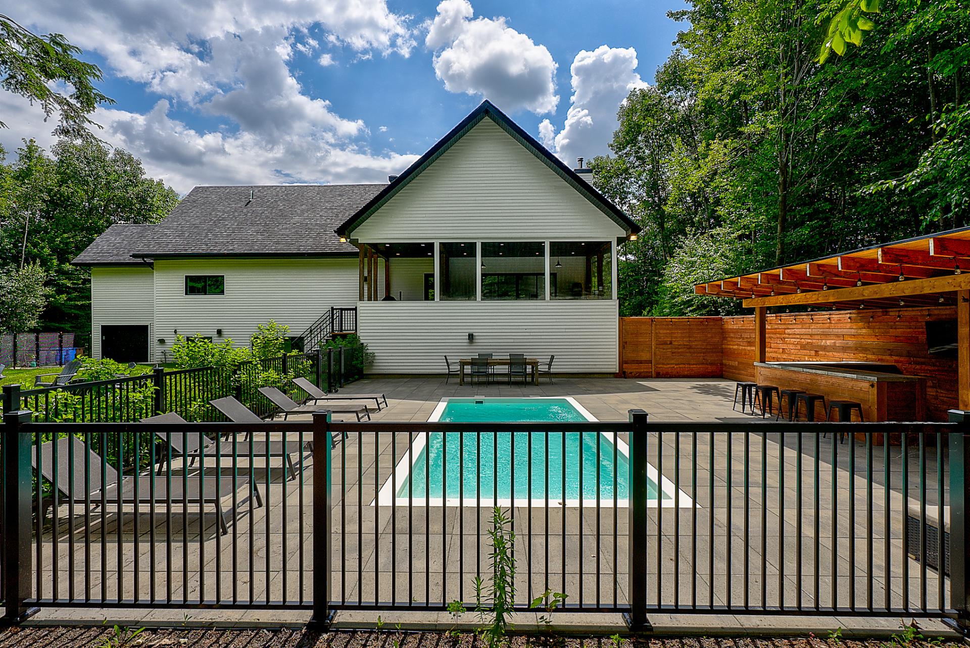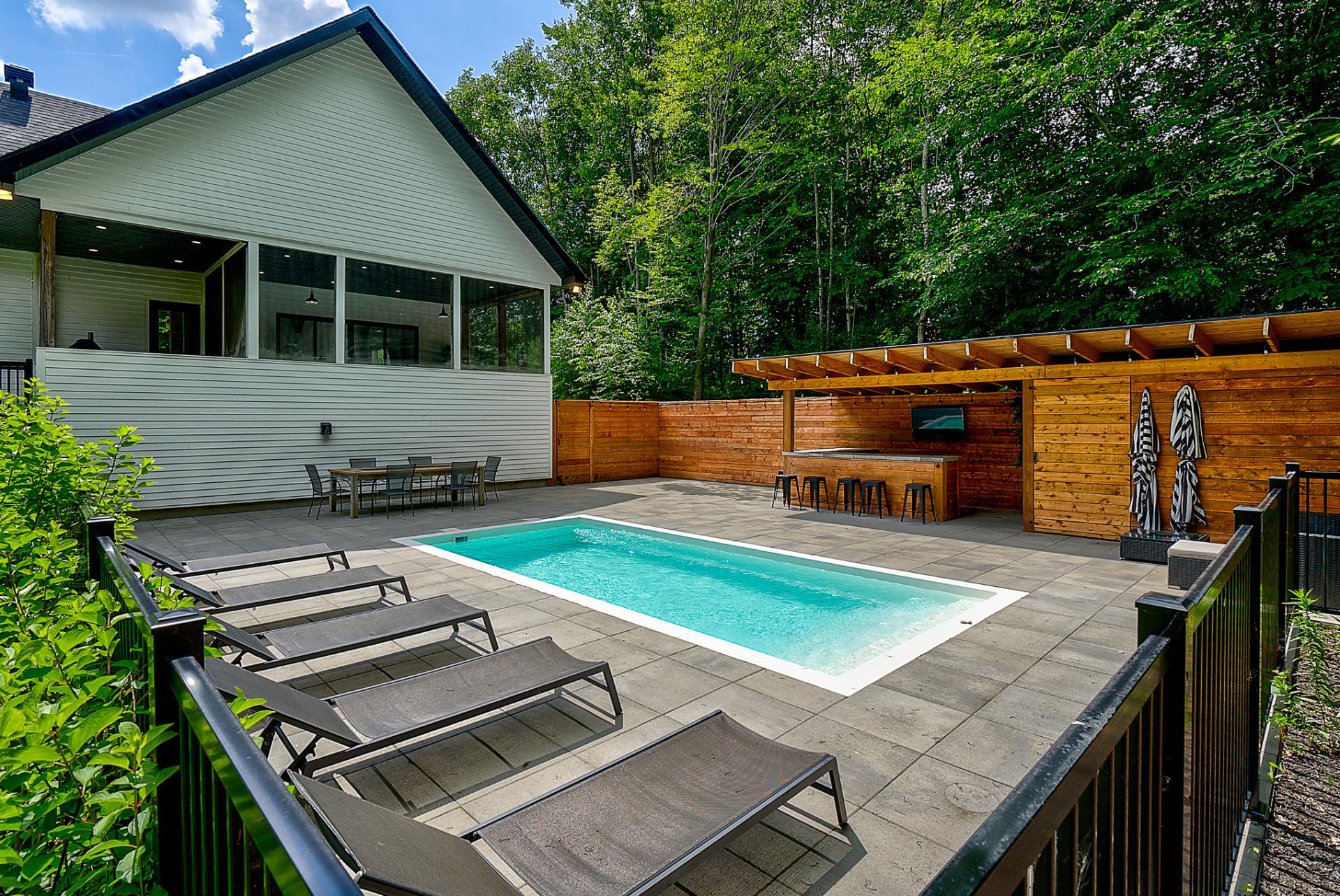 -Piscine creusée clôturée avec coin-bar.