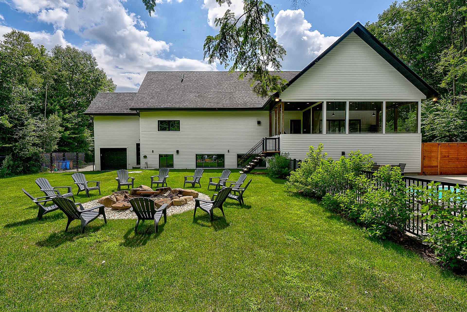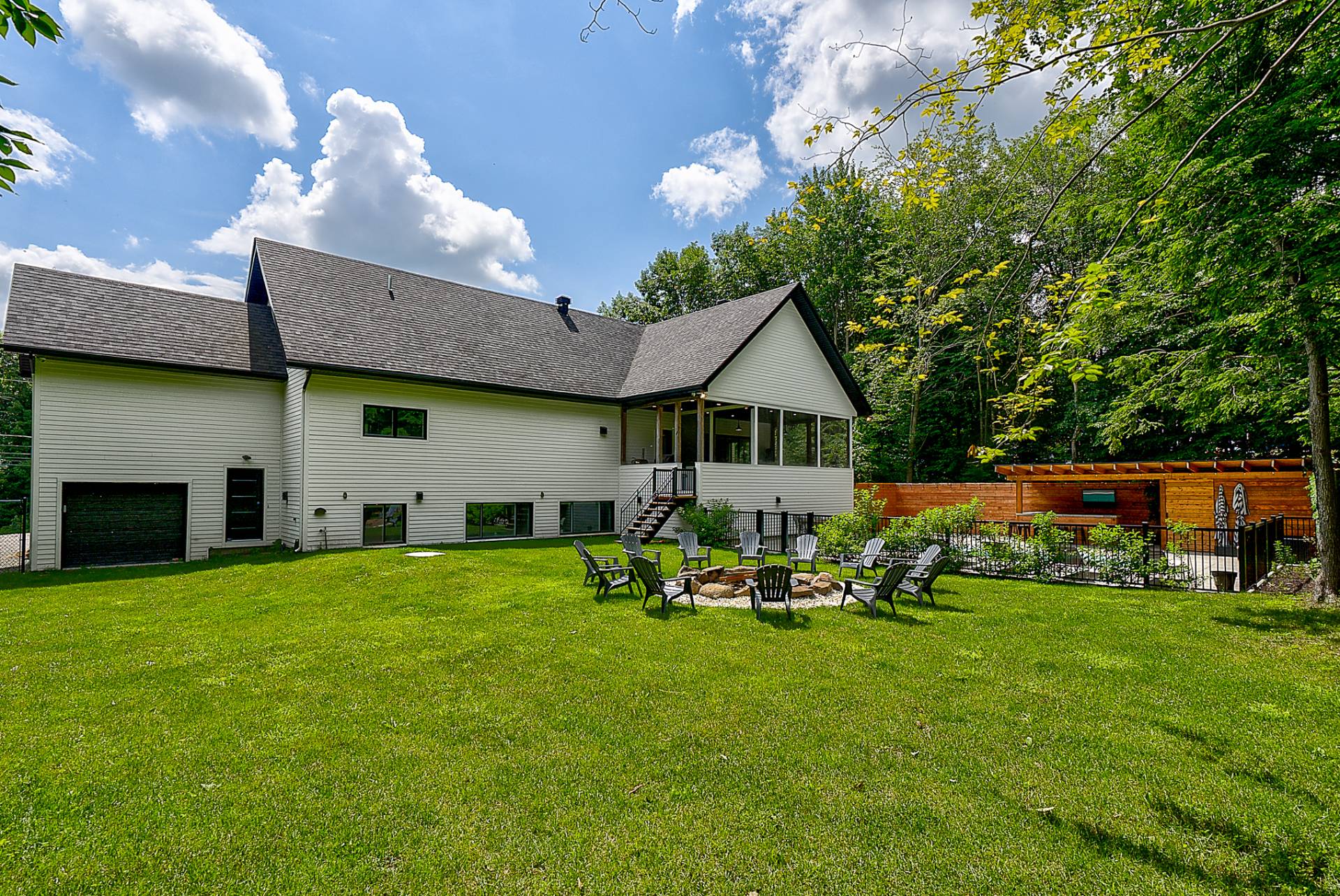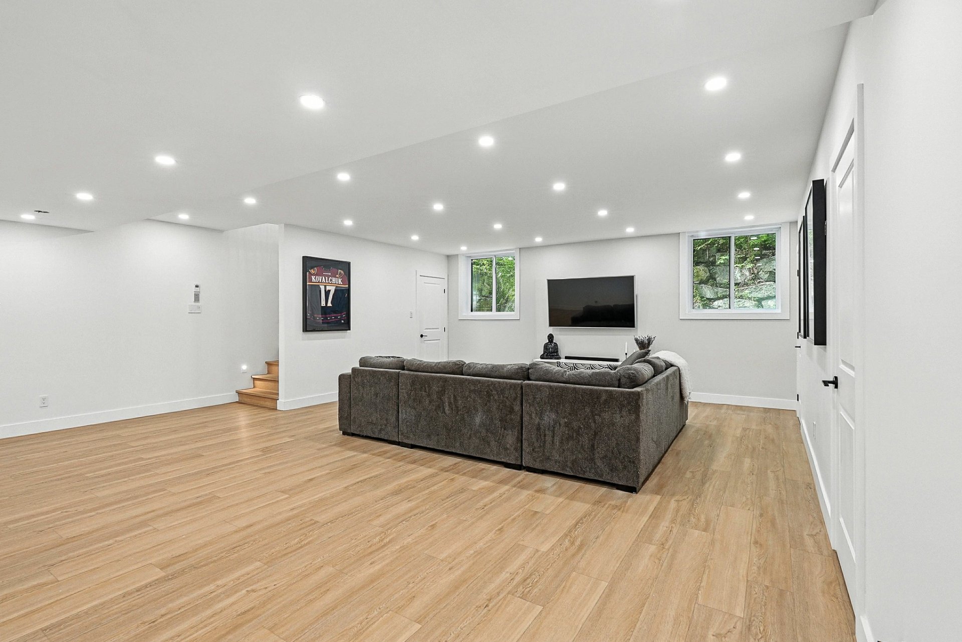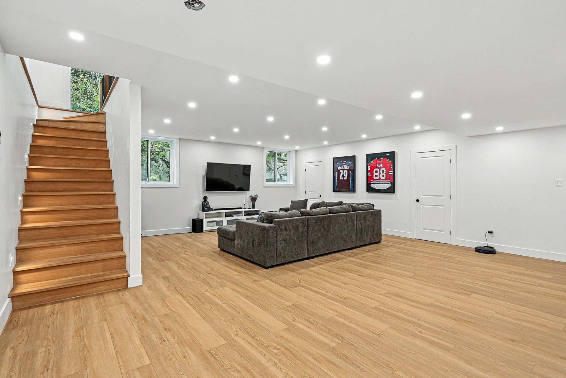 -La salle de lavage, la salle familiale, une chambre et une salle de bains pratique complètent le sous-sol de la partie principale.