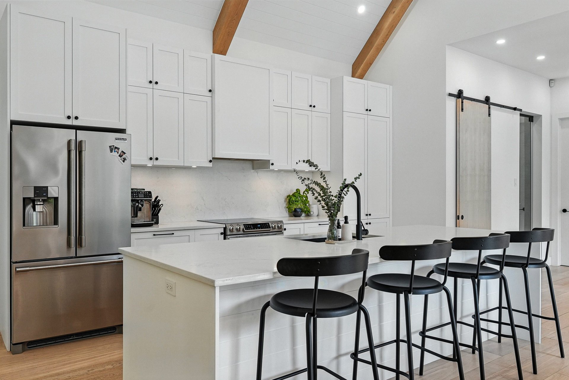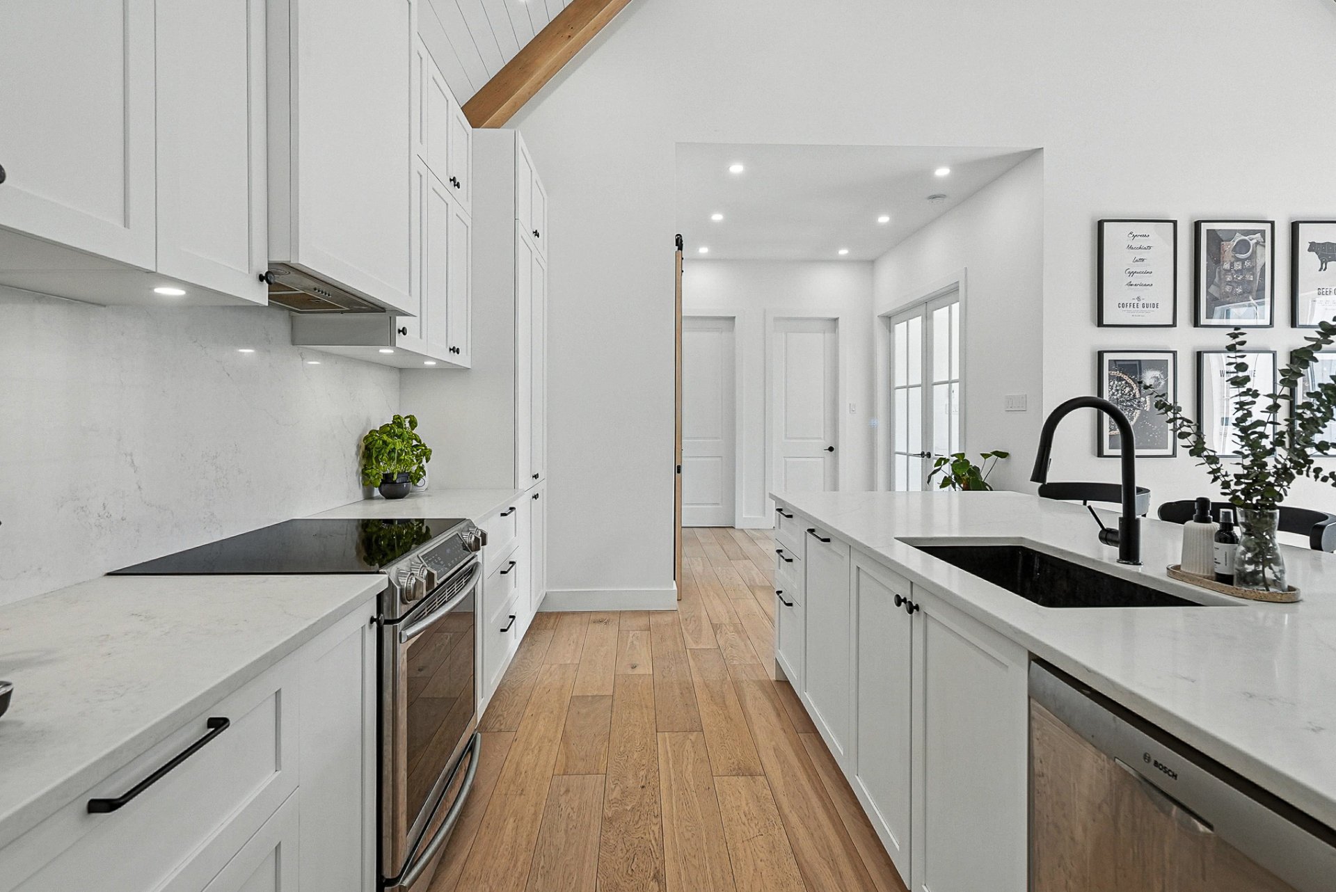 -La cuisine, équipée d'un espace cellier indépendant, d'un grand garde-manger (walk-in) et d'un grand îlot central offrant un espace fonctionnel et convivial pour la préparation des repas.