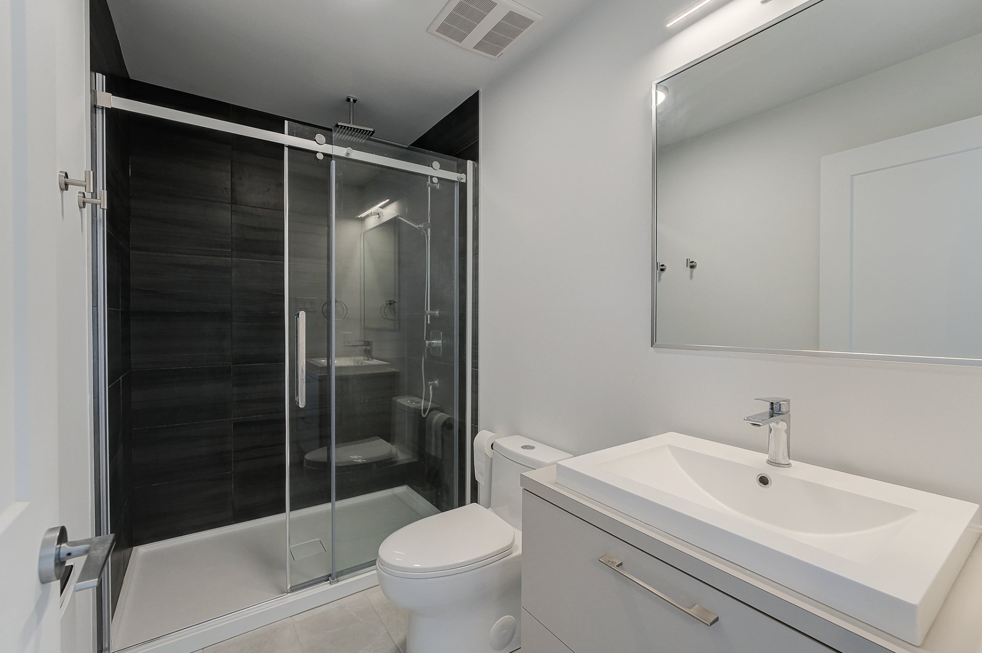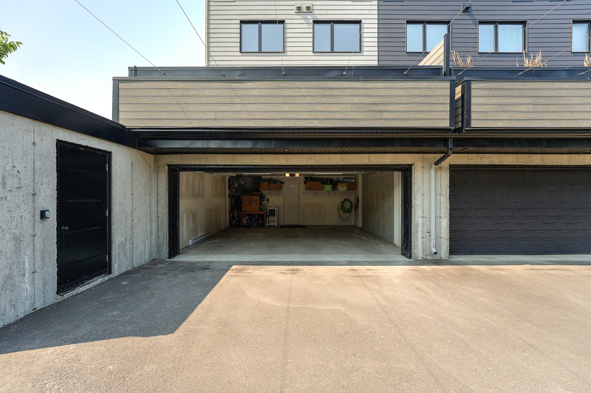 Le sous-sol, totalement aménagé, propose une grande salle familiale, une salle de bain complète, une salle de lavage indépendante et un accès direct au garage double privé. Le garage est équipé pour recevoir une borne de recharge pour véhicule électrique.