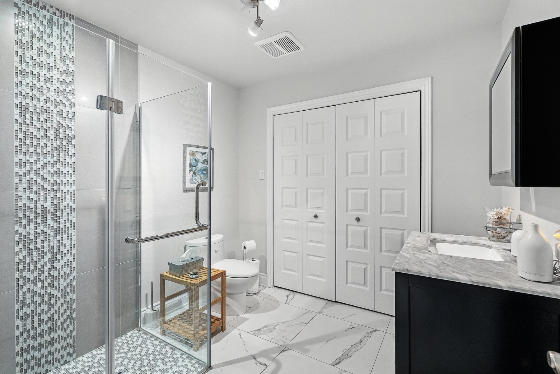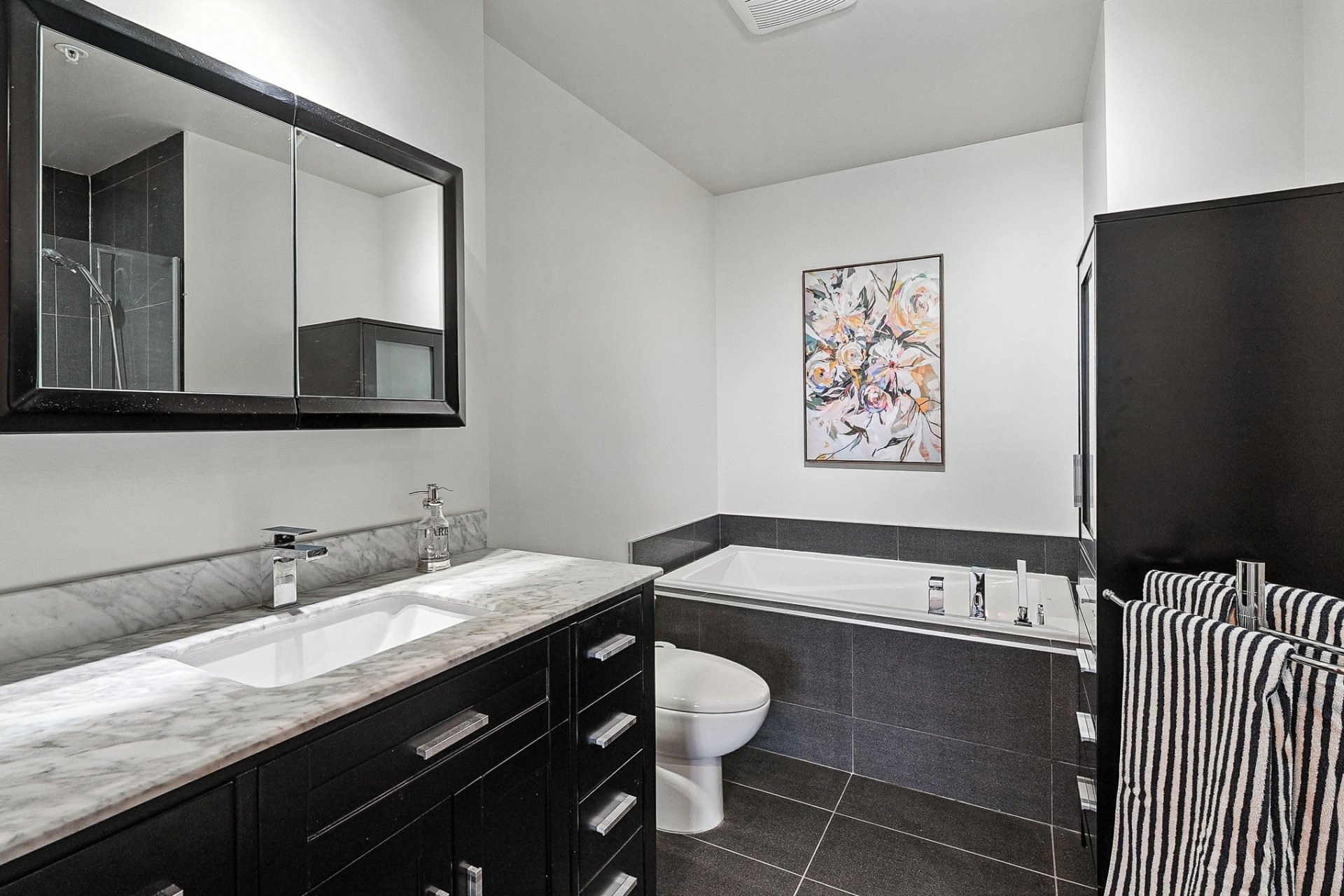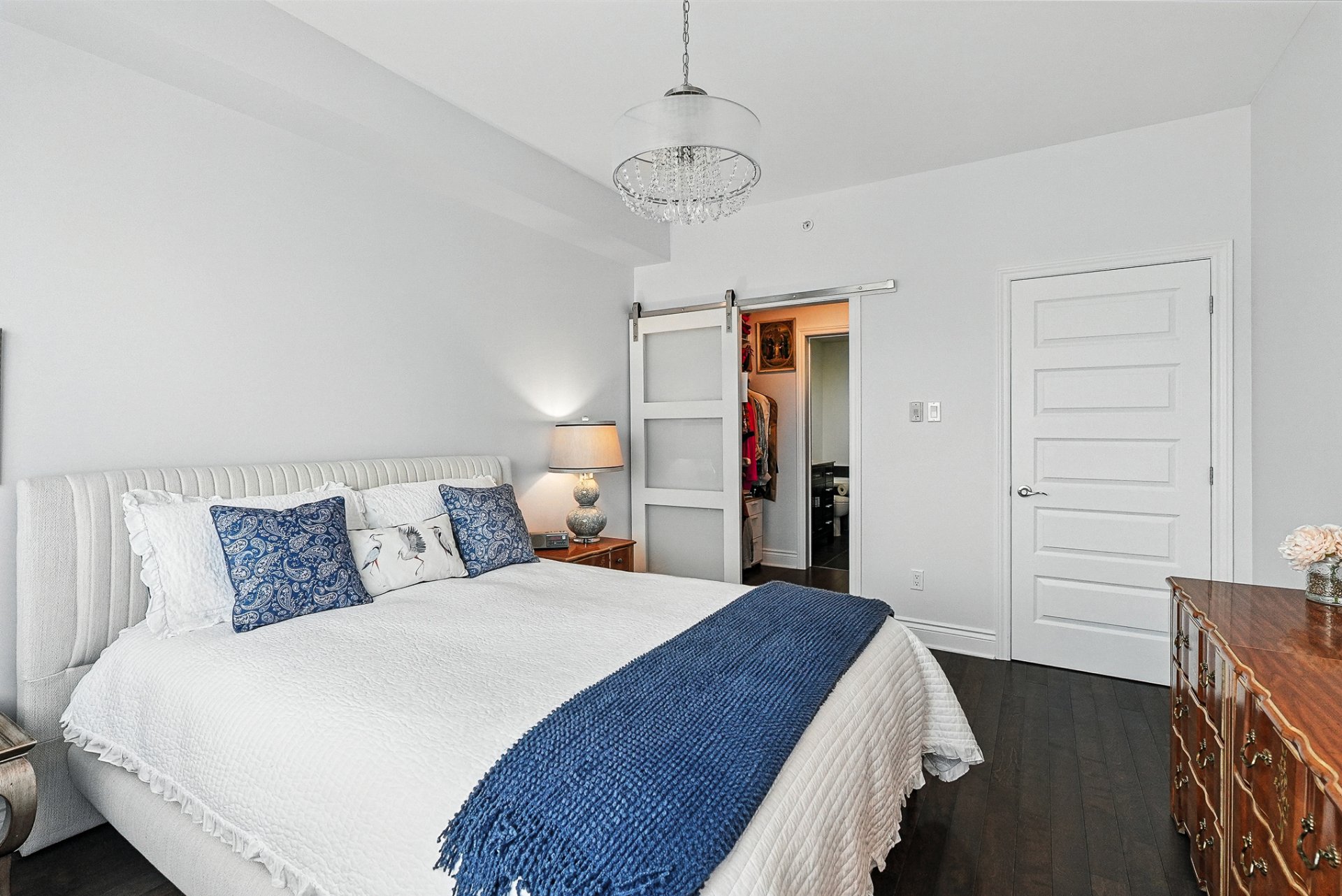La chambre à coucher principale, véritable suite de détente, dispose d'un walk-in généreux menant à une salle de bain raffinée avec :
