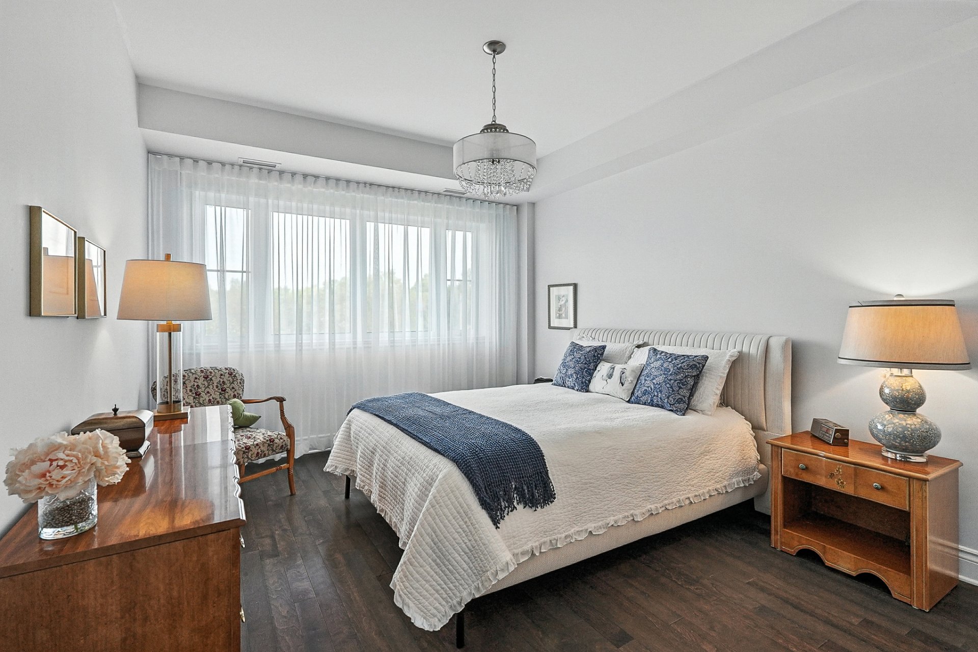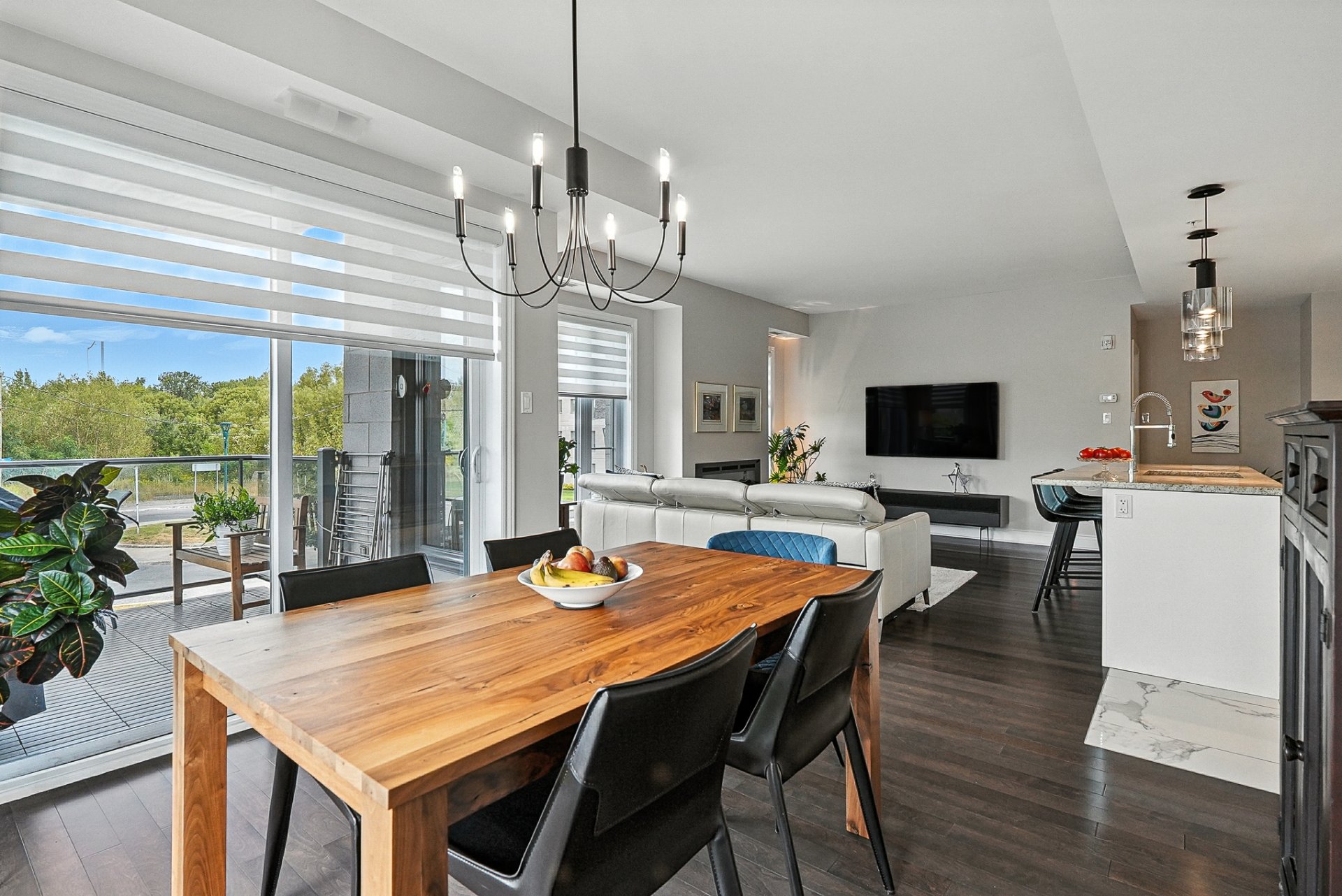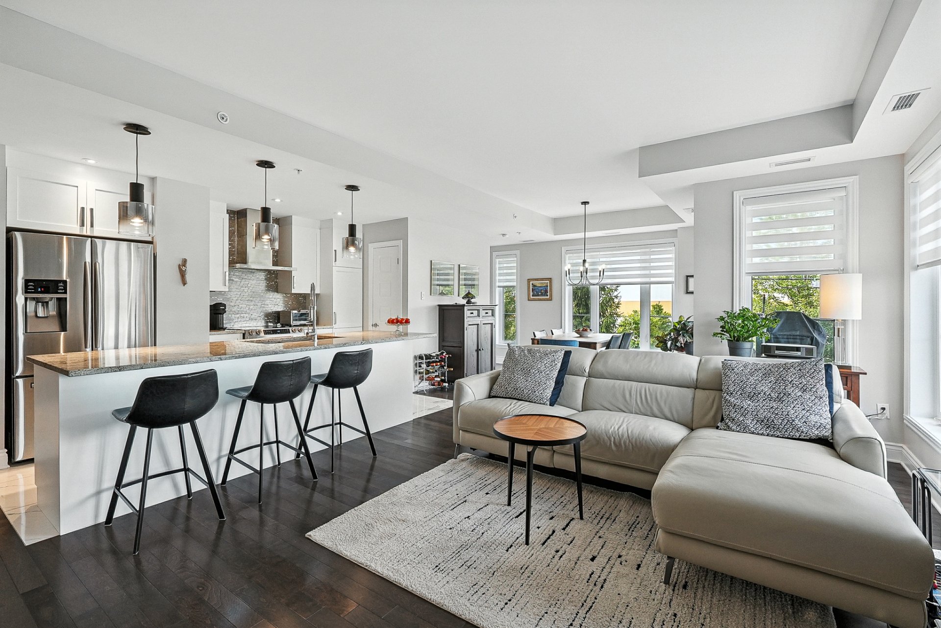 Bienvenue au 2925, ave des Aristocrates, une adresse où confort et élégance se rencontrent. Situé au 2 étage et orienté Nord-Ouest, ce condo baigné de lumière offre de splendides couchers de soleil. Le concept à aire ouverte comprend une cuisine moderne avec vaste îlot en granit, un salon lumineux avec foyer électrique invitant et une salle à manger entourée de fenêtres menant à un balcon. La chambre principale dispose d'un walk-in et d'une salle de bain raffinée, complétée par une deuxième chambre, une deuxième salle de bain et une buanderie séparée. Deux stationnements intérieurs inclus, plus accès à un gym et une terrasse "rooftop".