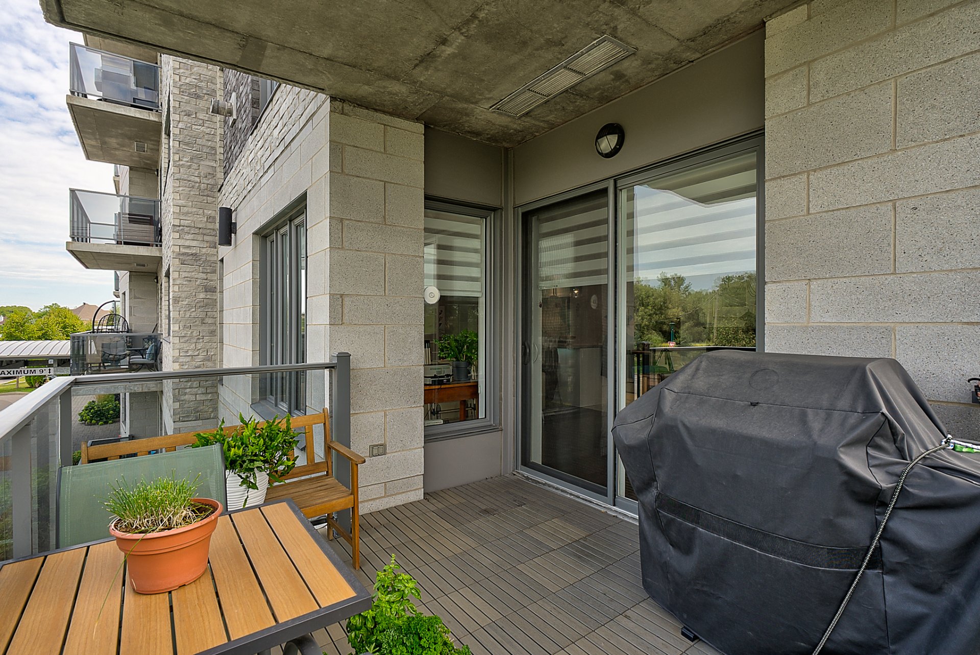 - Une porte-patio s'ouvre sur un grand balcon d'environ 10 x 10, idéal pour profiter des belles soirées et recevoir vos invités.