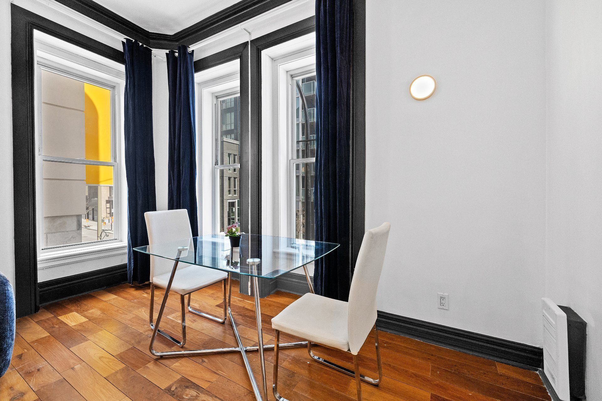 Moderne et élégant, ce magnifique appartement une chambre entièrement rénové offre une vie clé en main au coeur de l'un des quartiers les plus prestigieux de Montréal. Avec son aménagement à aire ouverte, ses finitions de qualité et son mobilier design, ses hauts plafonds, c'est le pied-à-terre urbain idéal à quelques pas des meilleurs restaurants, boutiques et transports en commun de la ville. Parfait pour les professionnels ou étudiants à la recherche de style, de confort et d'un emplacement imbattable. Les stations de métro Peel et Lucien L'Allier se trouvent à seulement quelques minutes. Possibilité de retirer les meubles de la location.