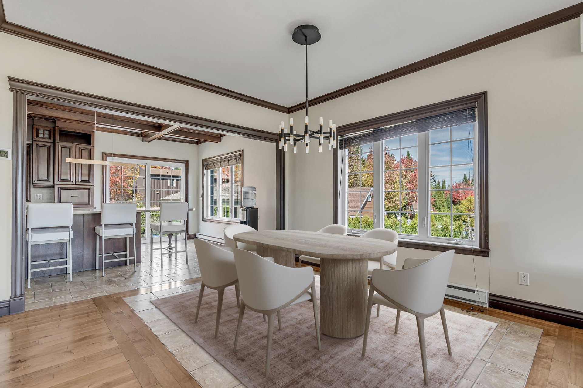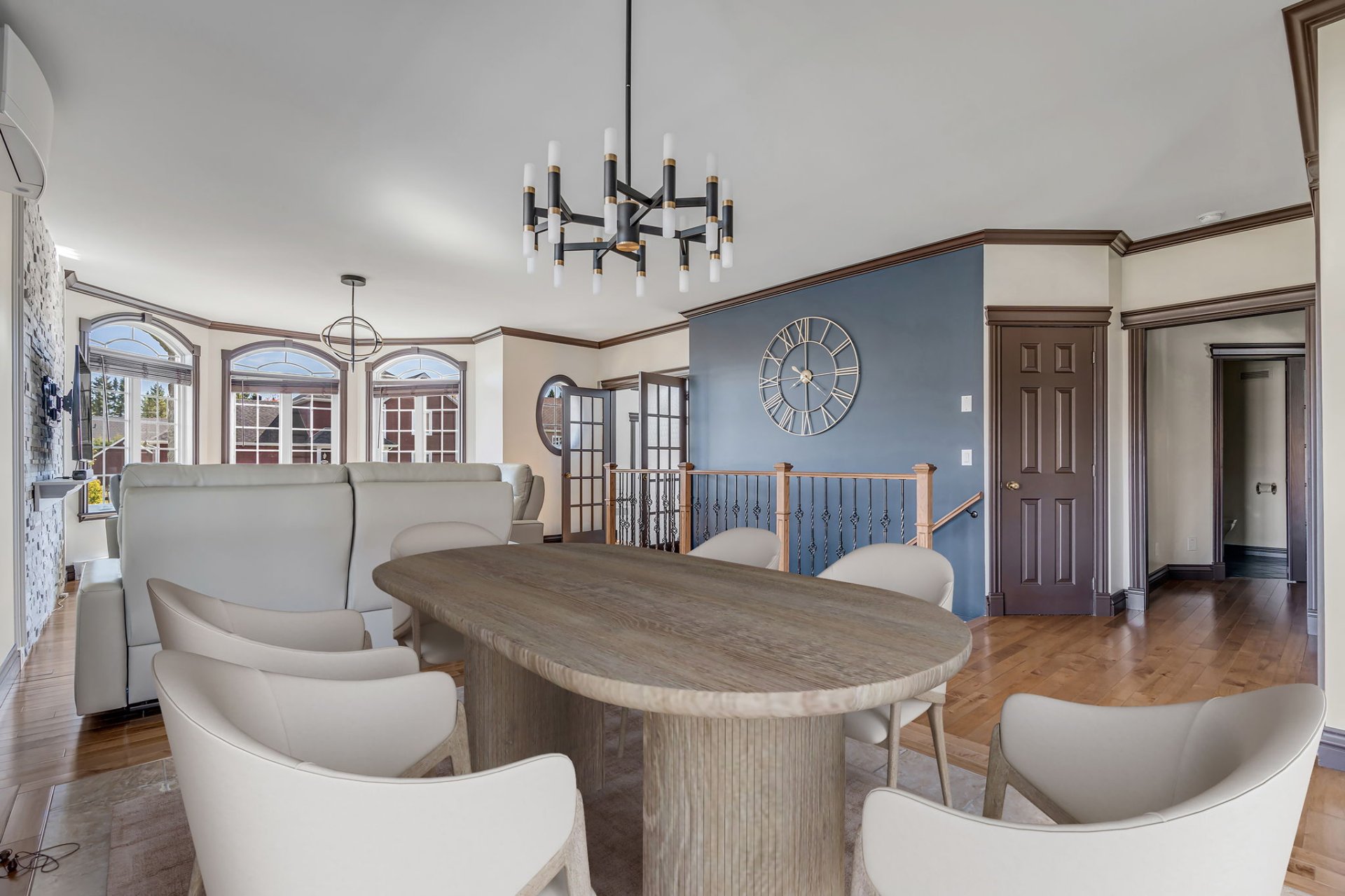 L'intérieur, baigné de lumière naturelle, propose une disposition fluide et réfléchie. Le coeur de la maison bat dans sa cuisine de chef, où armoires en bois massif et finitions de qualité s'unissent pour créer un espace aussi chaleureux que fonctionnel. La suite des maîtres, généreusement dimensionnée, offre un walk-in spacieux ainsi qu'une salle de bain attenante pour une intimité absolue.