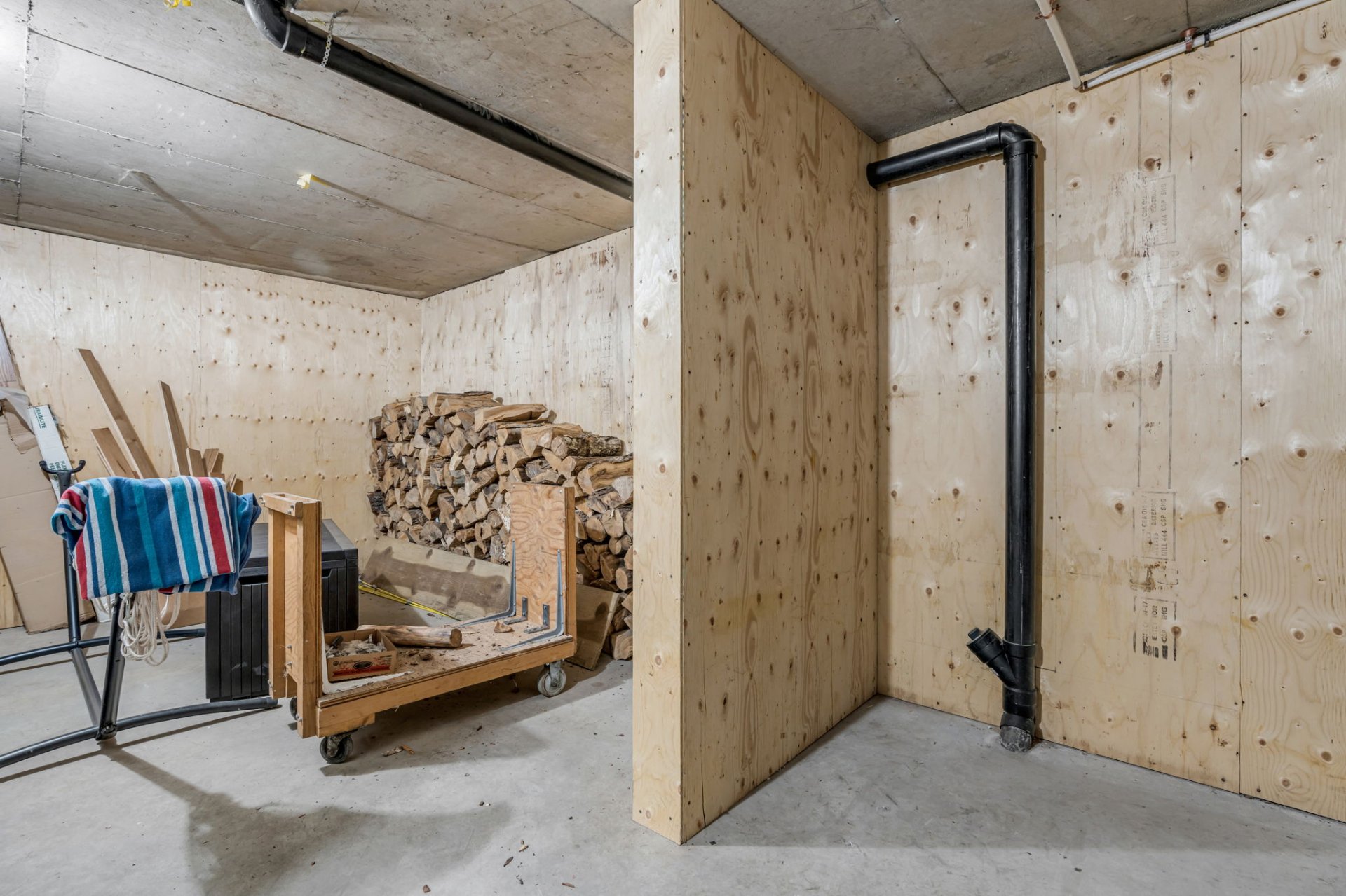 Le sous-sol entièrement aménagé comprend trois chambres supplémentaires, une entrée indépendante et un poêle à bois, créant un environnement polyvalent, idéal pour les grandes familles, les adolescents ou les invités.