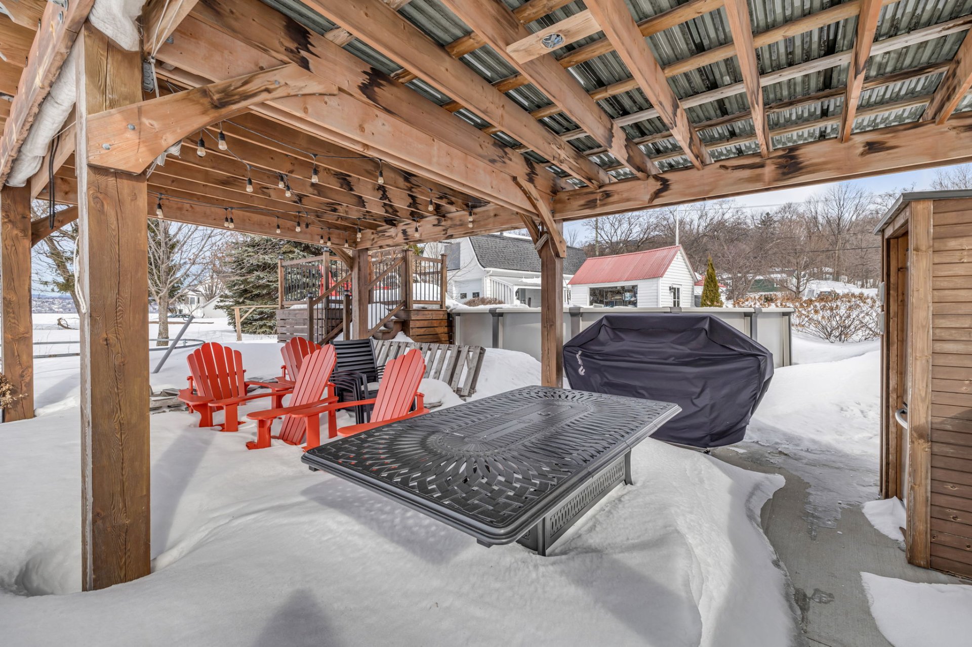 Une grande cuisine extérieure entièrement aménagée, idéale pour recevoir.