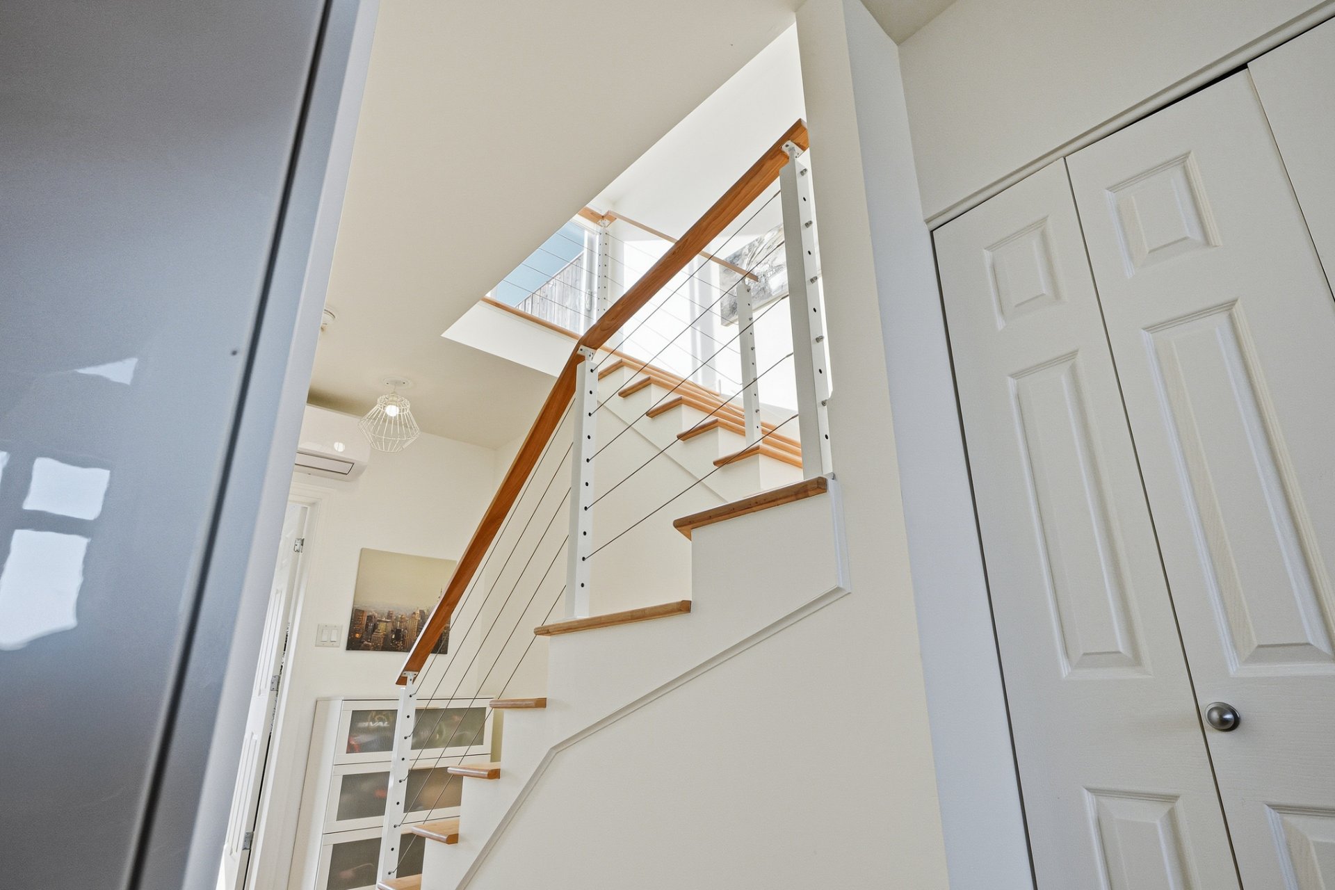 **Une mezzanine vers le ciel :** Le second niveau s'ouvre sur une terrasse privée orientée Sud-Ouest. C'est l'endroit privilégié pour vos cafés matinaux ou vos soirées entre amis, avec une vue imprenable et dégagée sur les deux cimes du Mont-Royal.