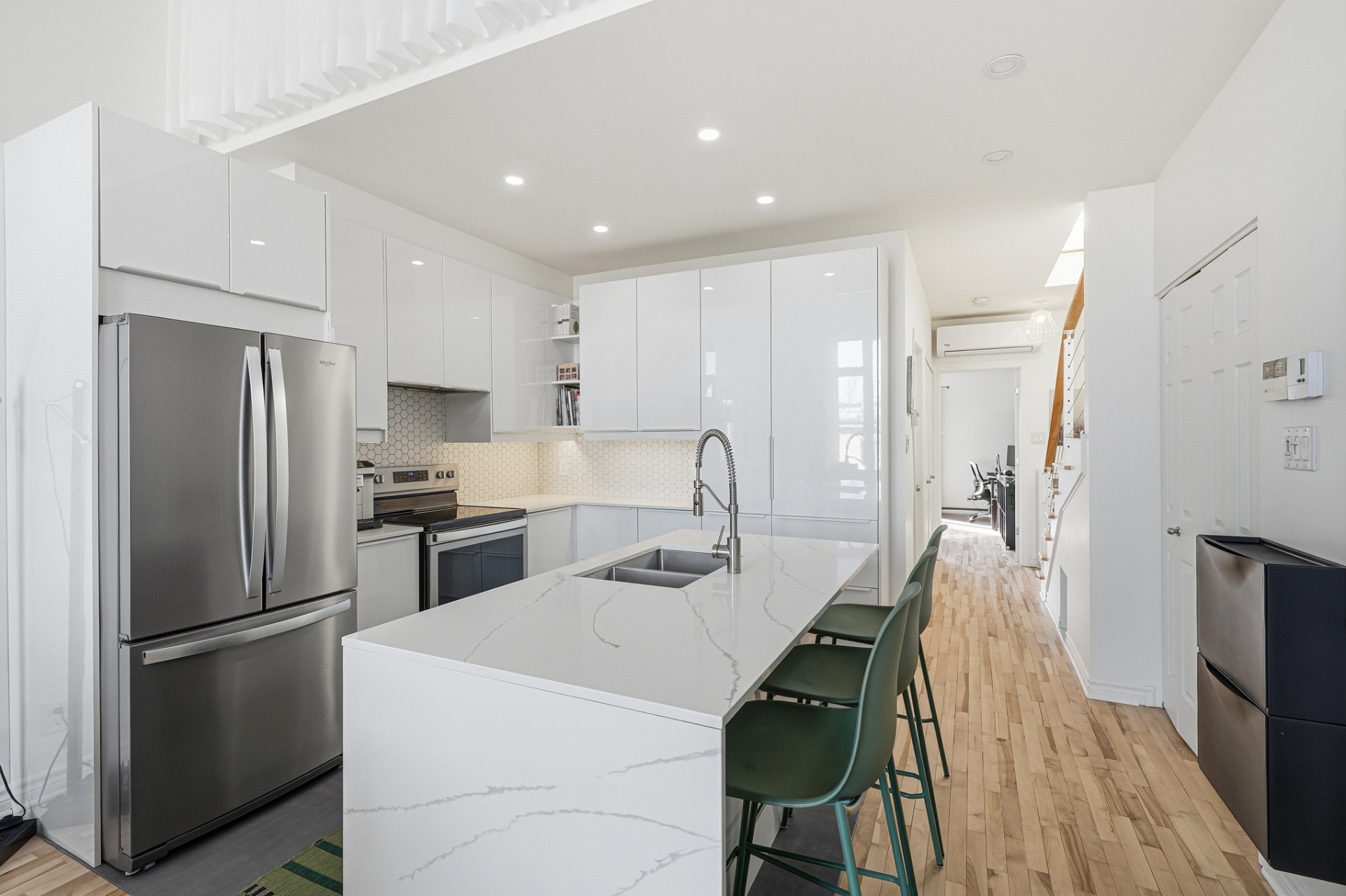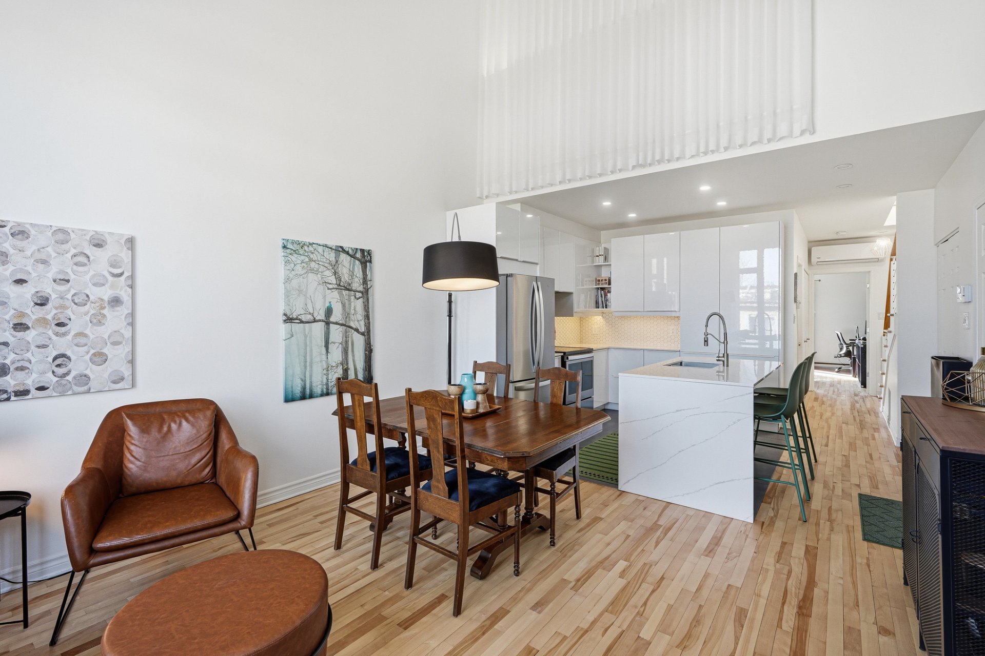 Situé au coeur de Villeray, au 3e et dernier étage du 7402 rue Lajeunesse, cet appartement unique (Apt 7) redéfinit le concept de « chez-soi ». Dès l'entrée, vous êtes accueilli par une clarté magistrale grâce à une fenestration surdimensionnée qui transforme le salon en véritable bain de lumière naturelle.