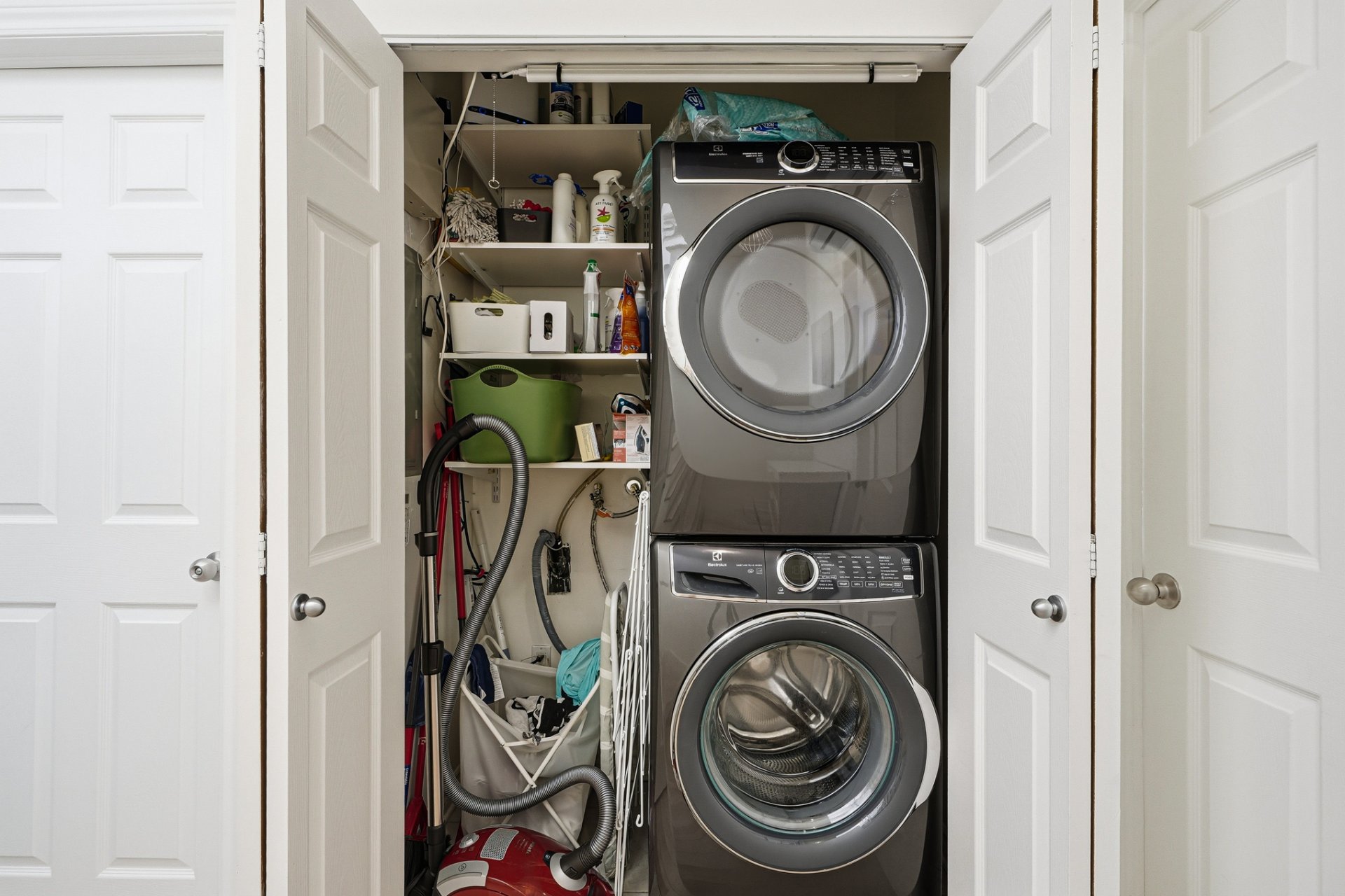 - Rangement PAX Ikea dans la chambre des maîtres; Laveuse/Sécheuse 2024; Frigo, cuisinière, lave-vaisselle 2019; Rideaux voilage blanc dans le salon et la chambre des maîtres; Rangement blanc sur le mur 2 portes dans la chambre des maîtres
