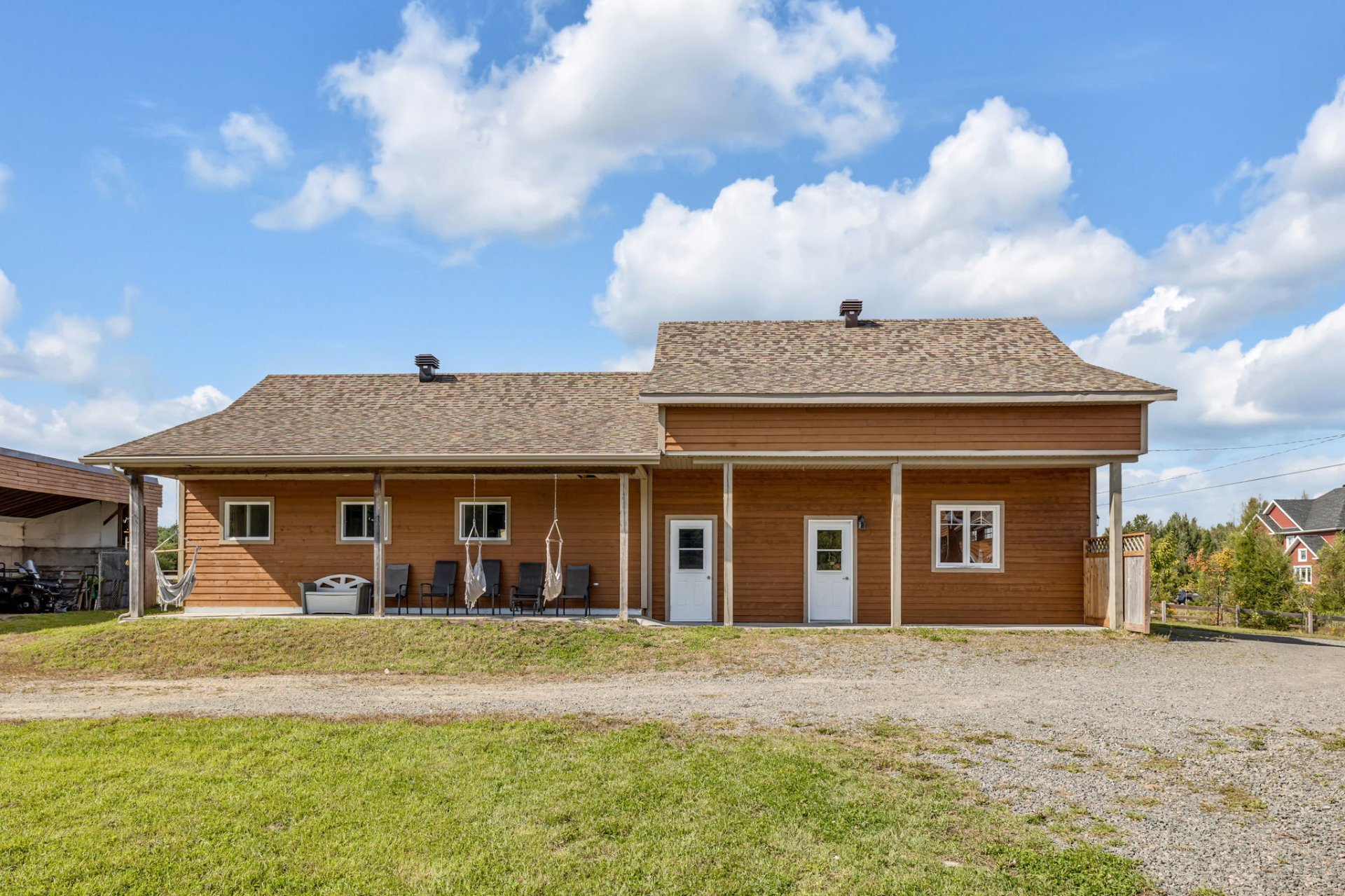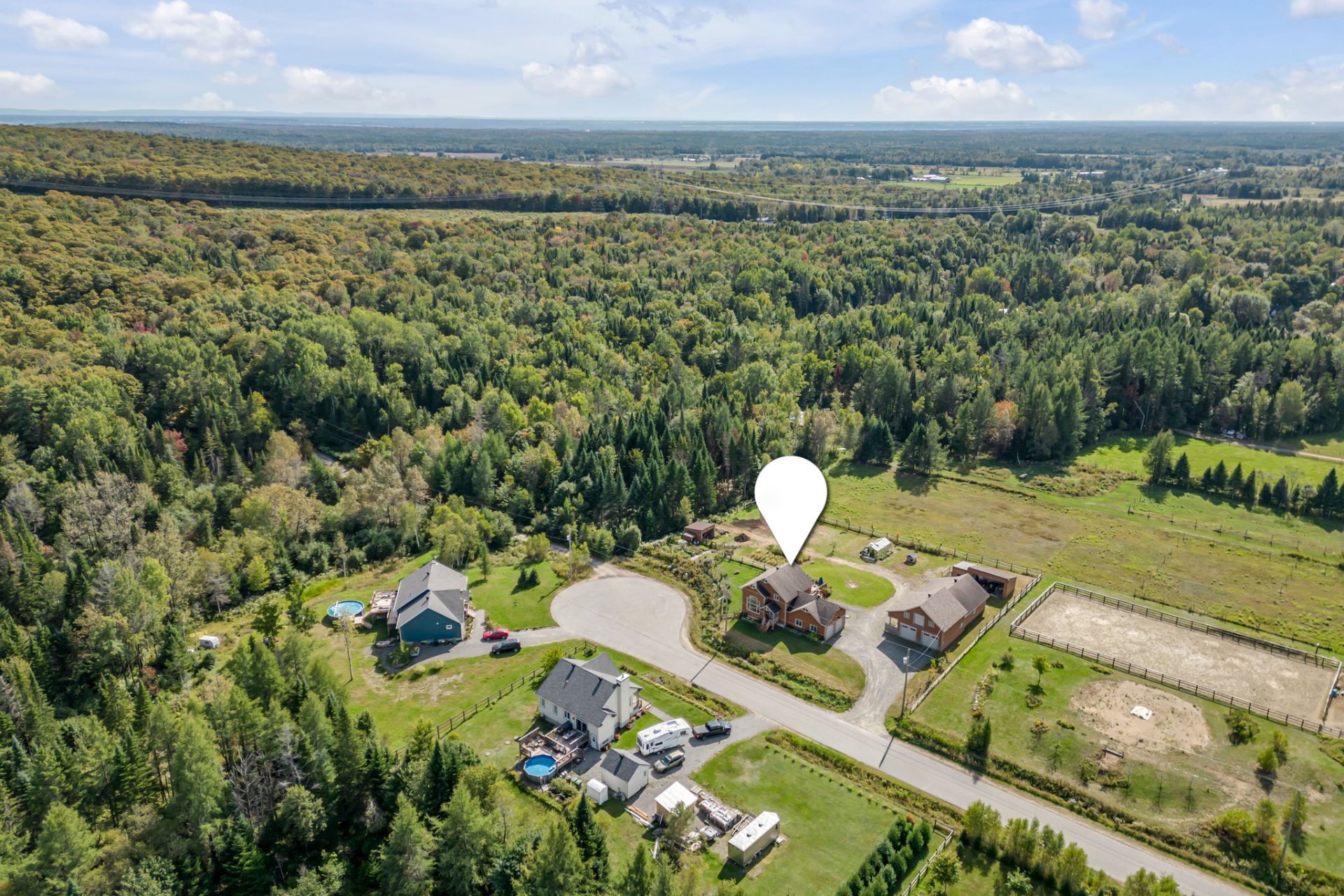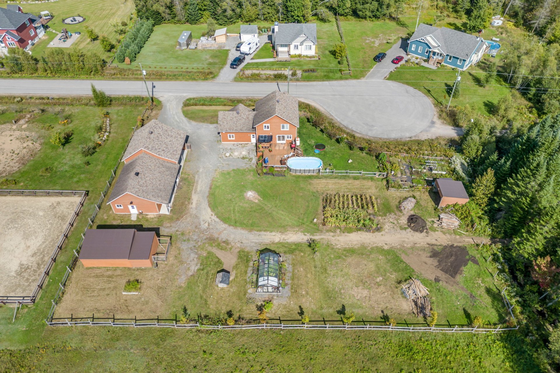 INCLUSIONS; Pôles à rideaux, rideaux, stores, luminaires fixes, réfrigérateur Samsung 2019, réfrigérateur Maytag 2016, Micro-onde Panasonic, cuisinière Samsung, lave-vaisselle GE 2022, laveuse et sécheuse GE du RDC, Laveuse LG et sécheuse GE du sous-sol, chauffe serviette mural de la SDB du RDC, aspirateur central et ses accessoires, tablettes (SDB au RDC, cuisine, salon + celles à chats, chambre 2, garage attaché), meuble noir du corridor à l'étage, moteurs des 4 portes de garage, piscine hors terre et ses accessoires, unités d'appareils de chauffage suspendu à air pulsé du garage détaché et de l'écurie, serre, meuble style établi dans l'écurie, gratte-chemin, deux sections de clôtures galvanisées, auvent.