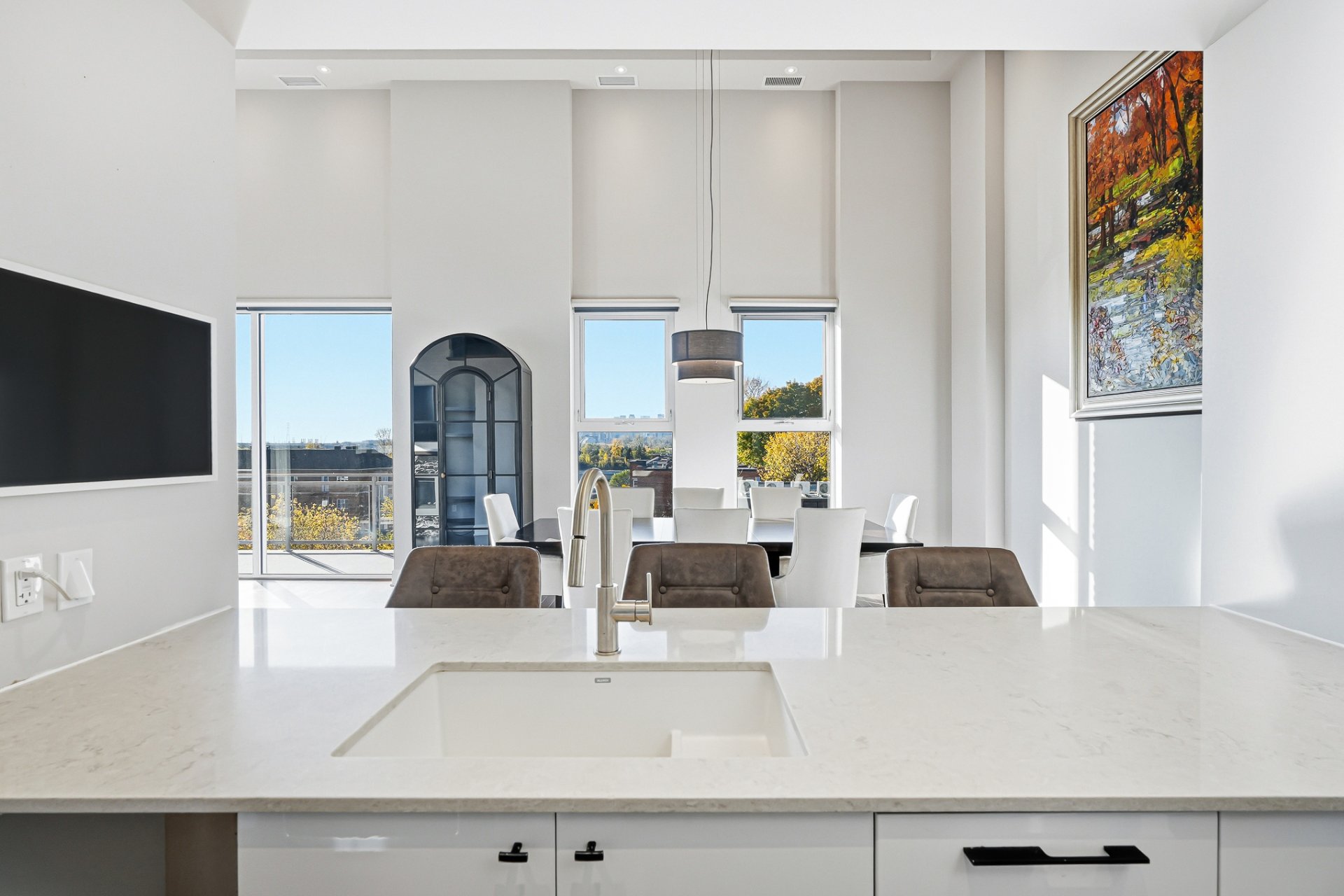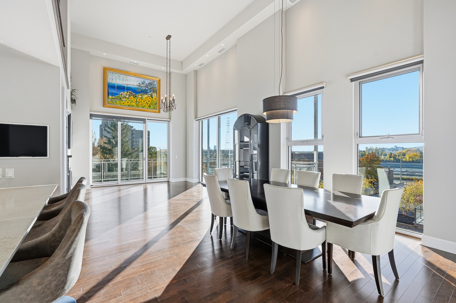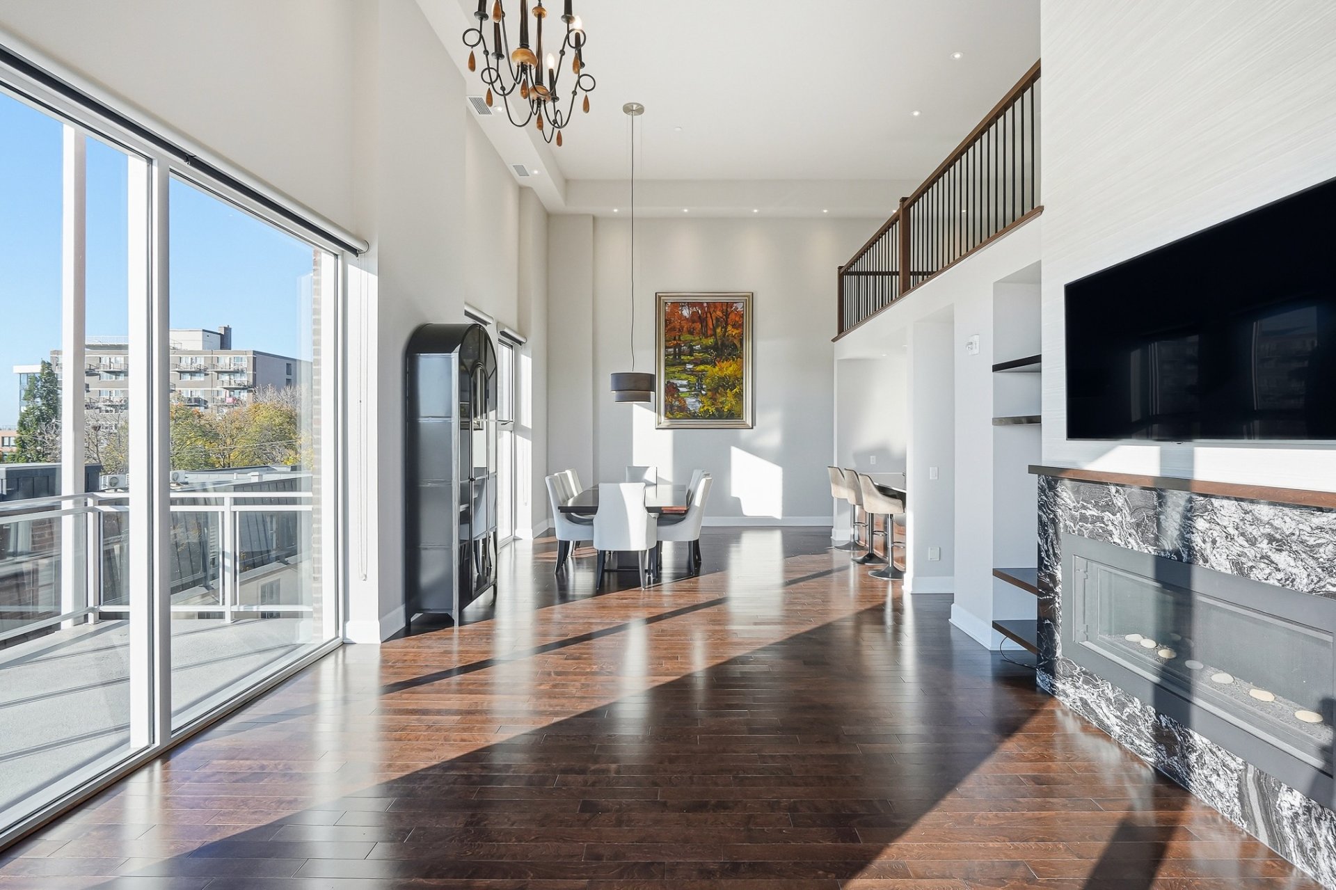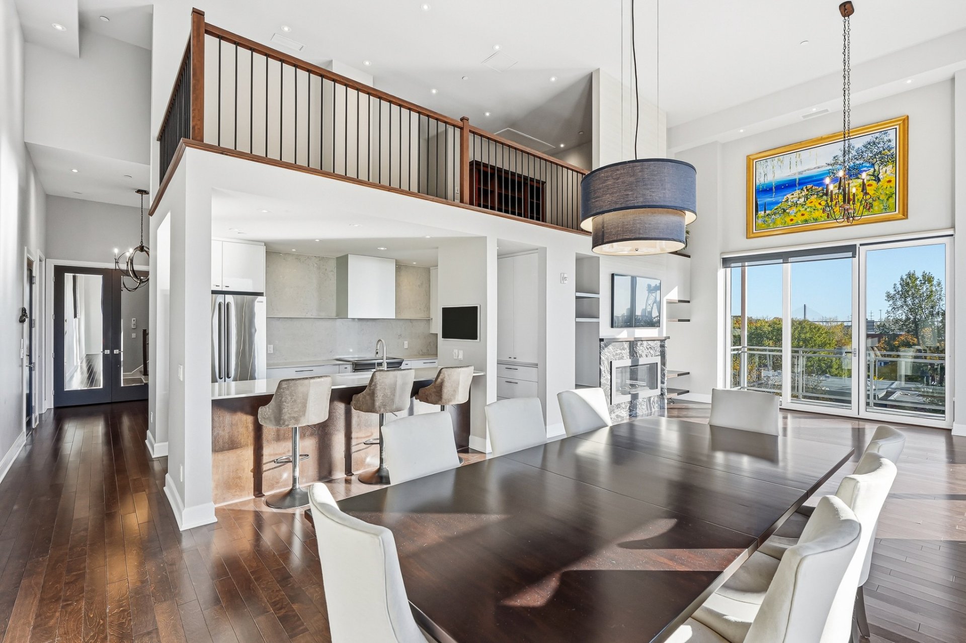Ancienne école transformée en résidence haut de gamme, Le Conservatoire s'impose comme un véritable joyau au coeur de Saint-Lambert. Situé au 3e étage, cette unité offre 1,887 pc avec mezzanine et plafonds variant entre 12 et 17 pieds. Inondée de lumière naturelle, elle dévoile une vue panoramique exceptionnelle sur Montréal et les ponts de la Rive-Sud. Les matériaux nobles, le foyer au gaz, la cuisine en quartz, les finitions haut de gamme, 2 balcons, un espace de rangement généreux et 2 garages côte à côte près de l'ascenseur complètent cette adresse d'exception, où prestige, confort et art de vivre se rencontrent en parfaite harmonie.