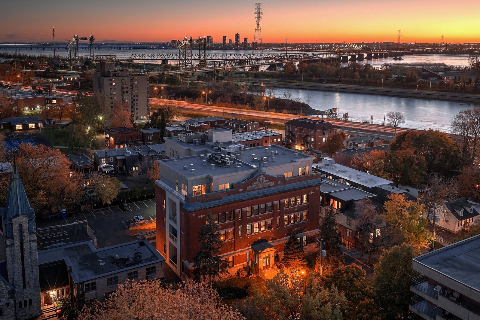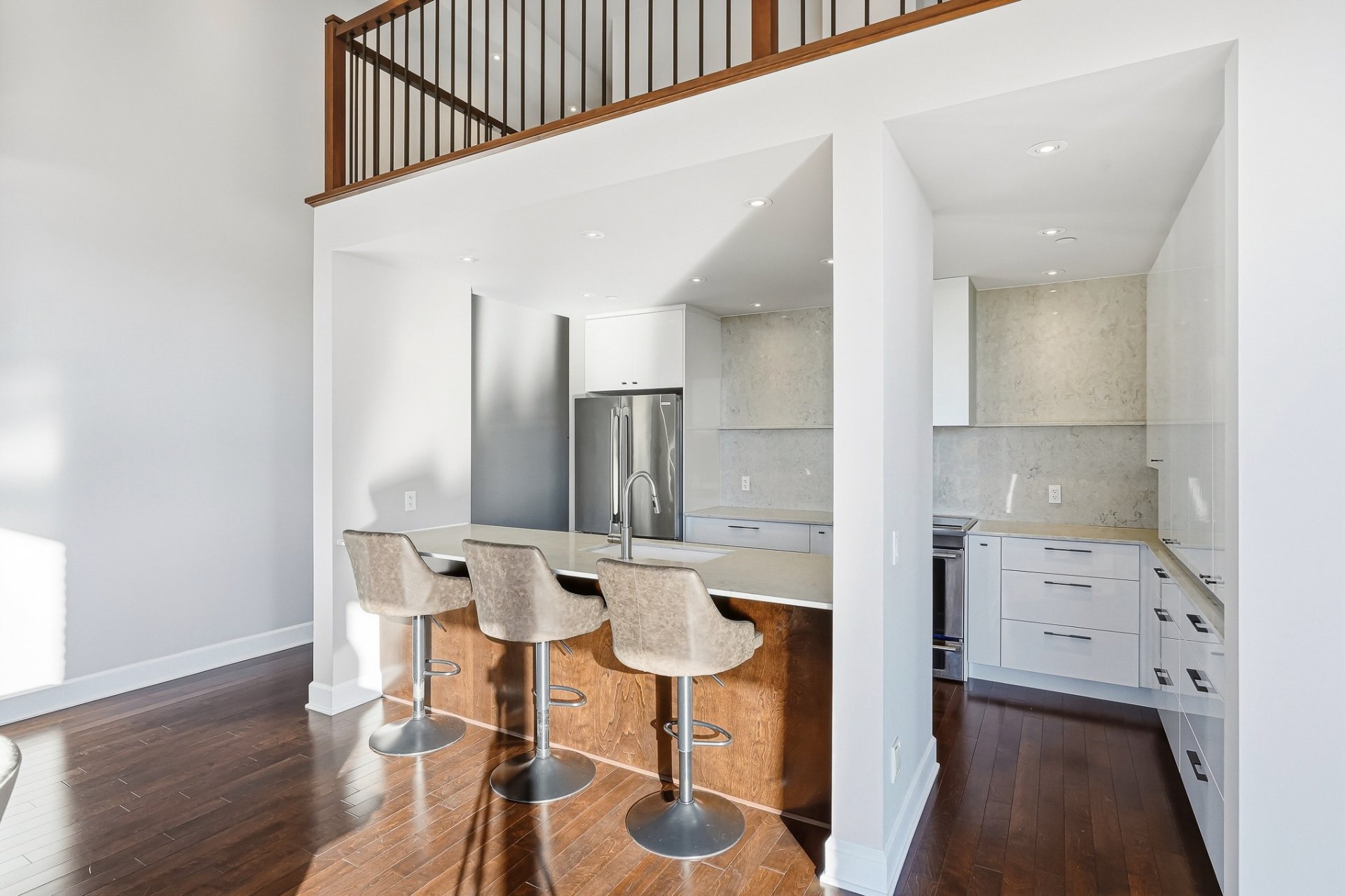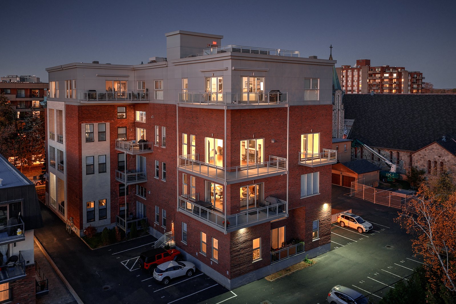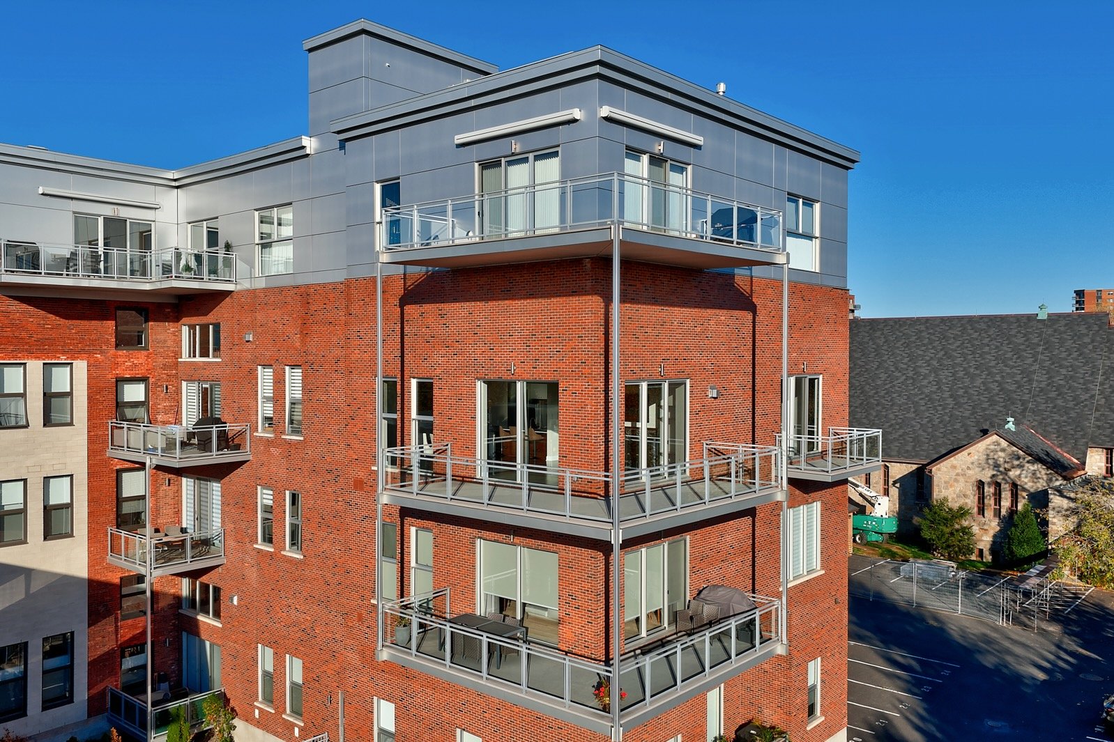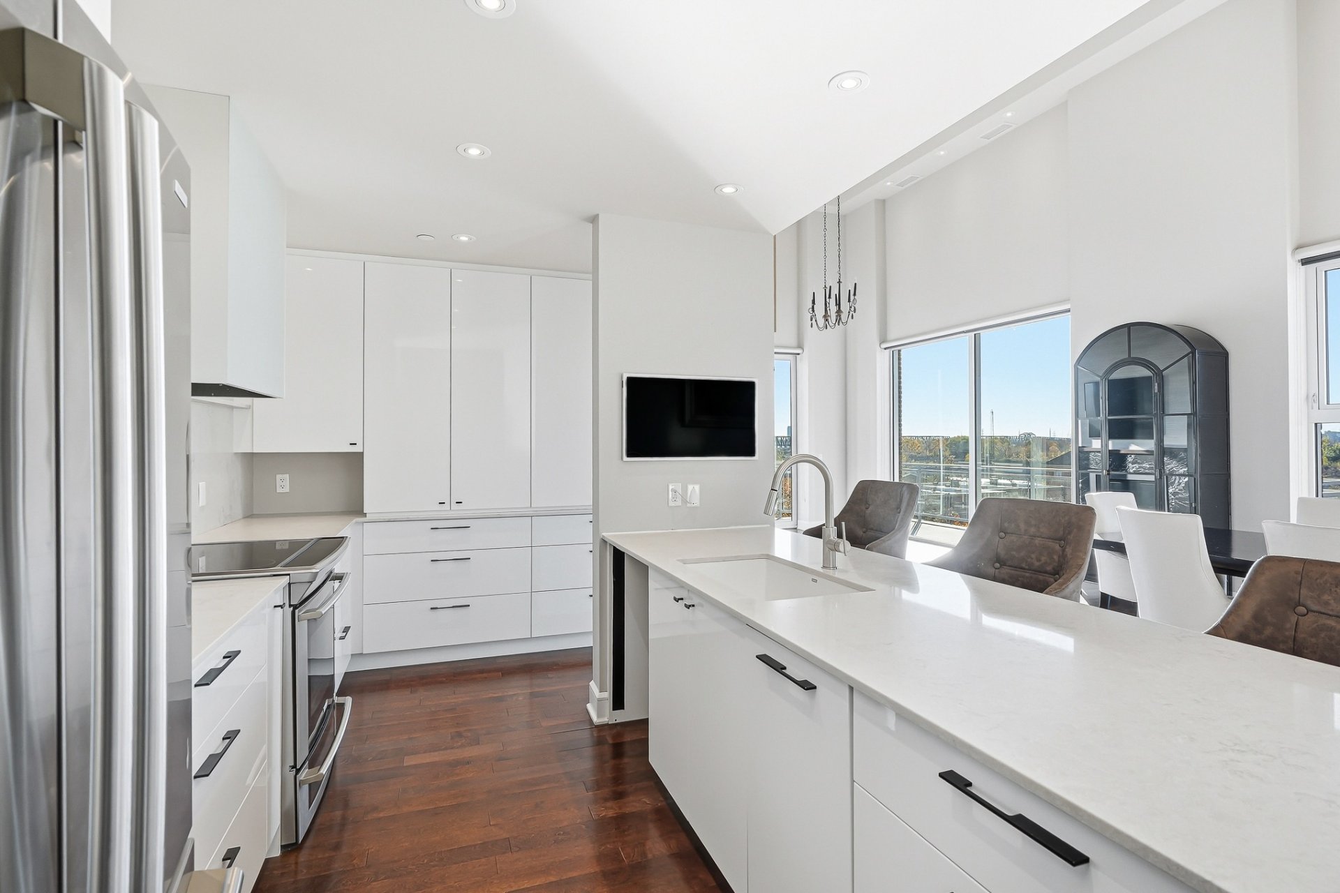 Ancienne école transformée en résidence haut de gamme, Le Conservatoire s'impose comme un véritable joyau au coeur de Saint-Lambert. Situé au 3e étage, cette unité offre 1,887 pc avec mezzanine et plafonds variant entre 12 et 17 pieds. Inondée de lumière naturelle, elle dévoile une vue panoramique exceptionnelle sur Montréal et les ponts de la Rive-Sud. Les matériaux nobles, le foyer au gaz, la cuisine en quartz, les finitions haut de gamme, 2 balcons, un espace de rangement généreux et 2 garages côte à côte près de l'ascenseur complètent cette adresse d'exception, où prestige, confort et art de vivre se rencontrent en parfaite harmonie.
