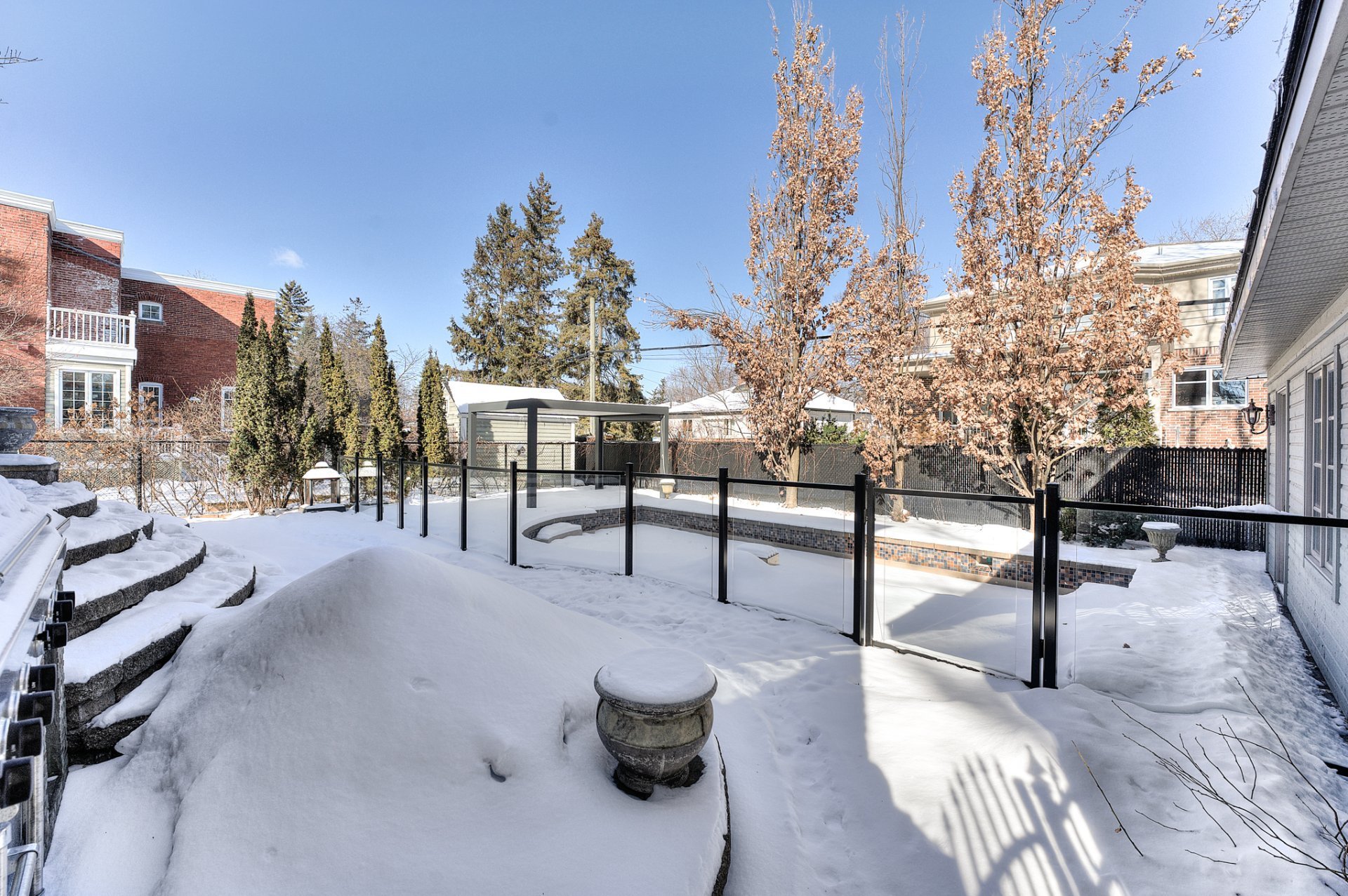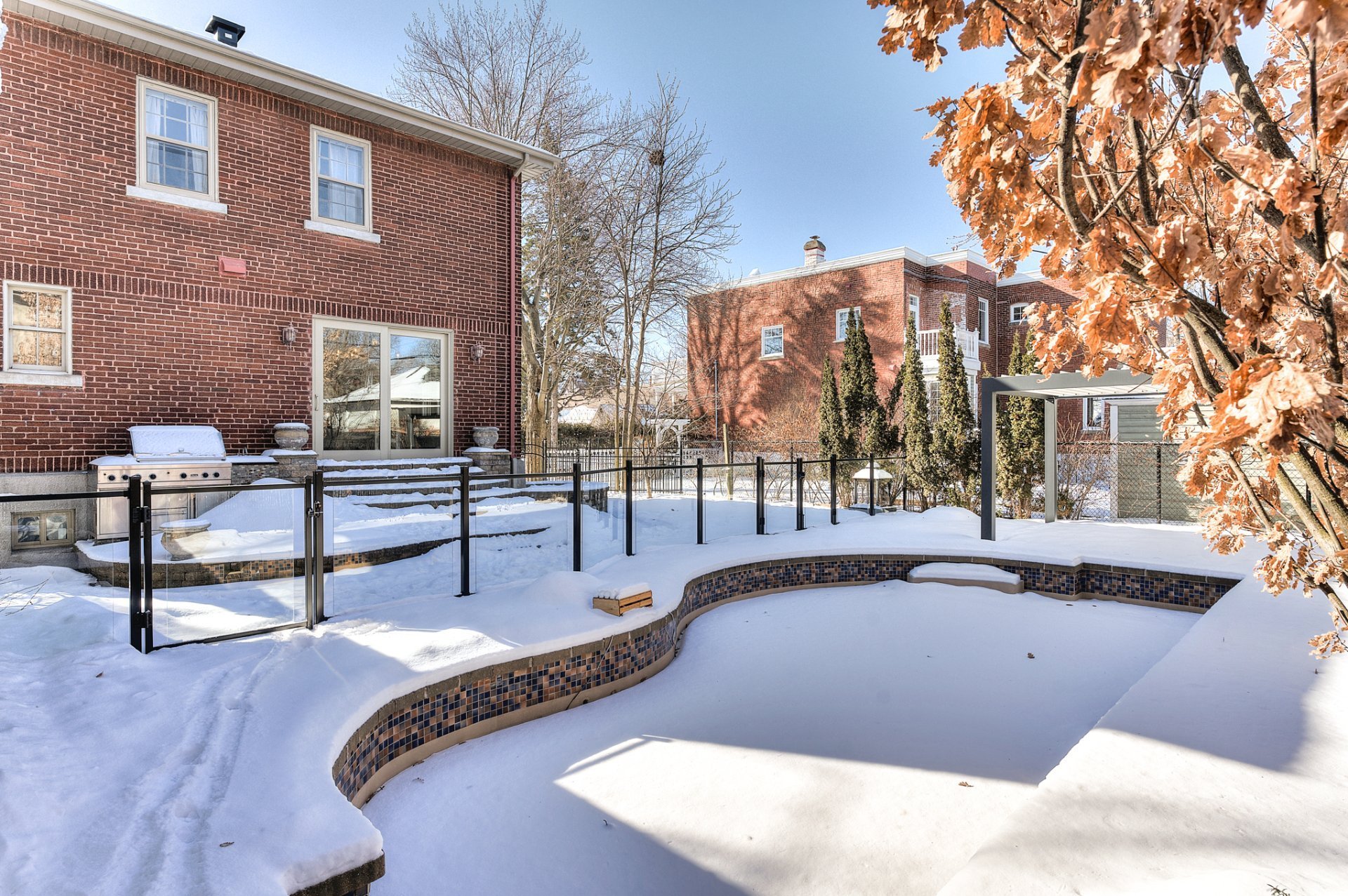 - Cuisinière au gaz, micro-ondes, refroidisseur à vin, réfrigérateur, lave-vaisselle, laveuse, sécheuse, BBQ, accessoires de piscine, ensemble de patio sous la pergola, haut-parleurs intégrés (cuisine et salon), garage. Entretien paysager complet (pelouse, arbustes, verdure), fermeture du terrain et de la piscine à l'automne.
