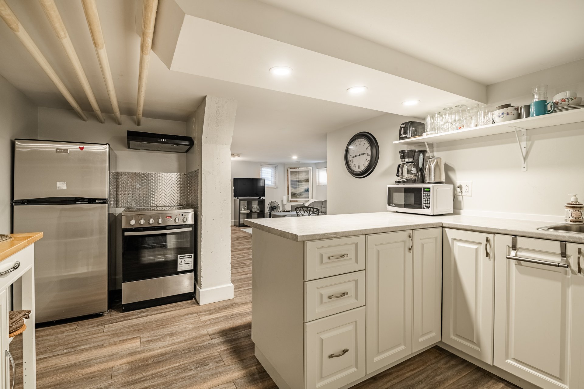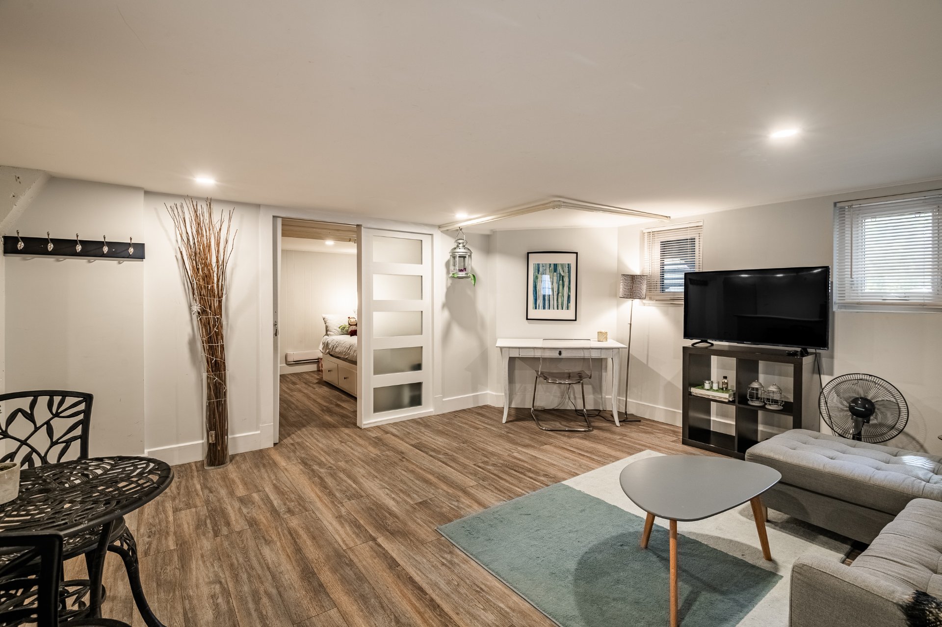 Suite intergénérationnelle (rez-de-jardin, rénovée 2016) : 2 chambres, 2 salles de bain, cuisine moderne, entrée privée, laveuse/sécheuse, partiellement meublée. Idéale pour accueillir des proches, loger un adolescent en quête d'indépendance, ou générer un revenu supplémentaire (sous réserve des autorisations municipales à confirmer par l'acheteur). Facilement accessible grâce aux deux entrées privées, ainsi que par l'unité #4025.