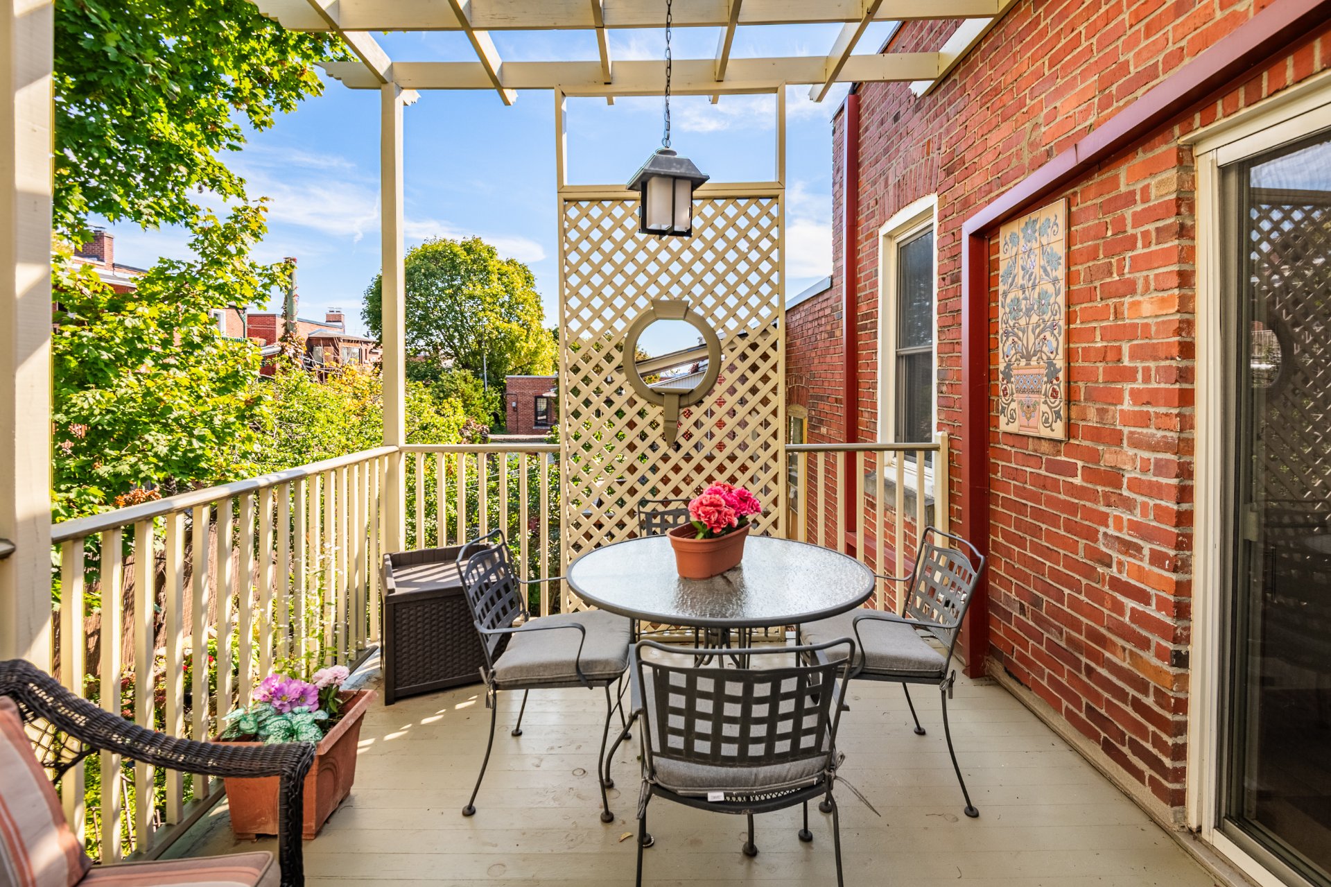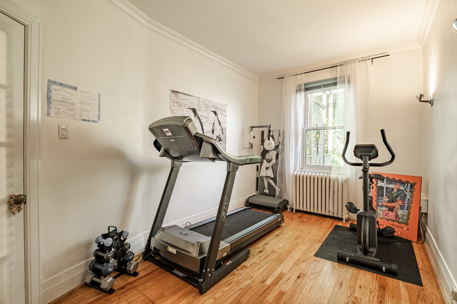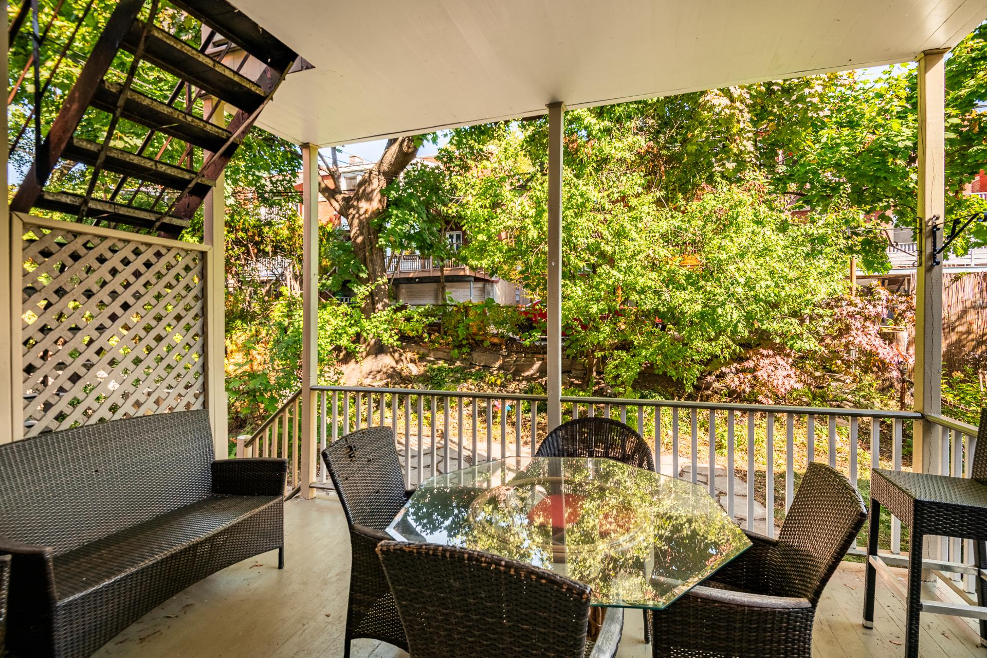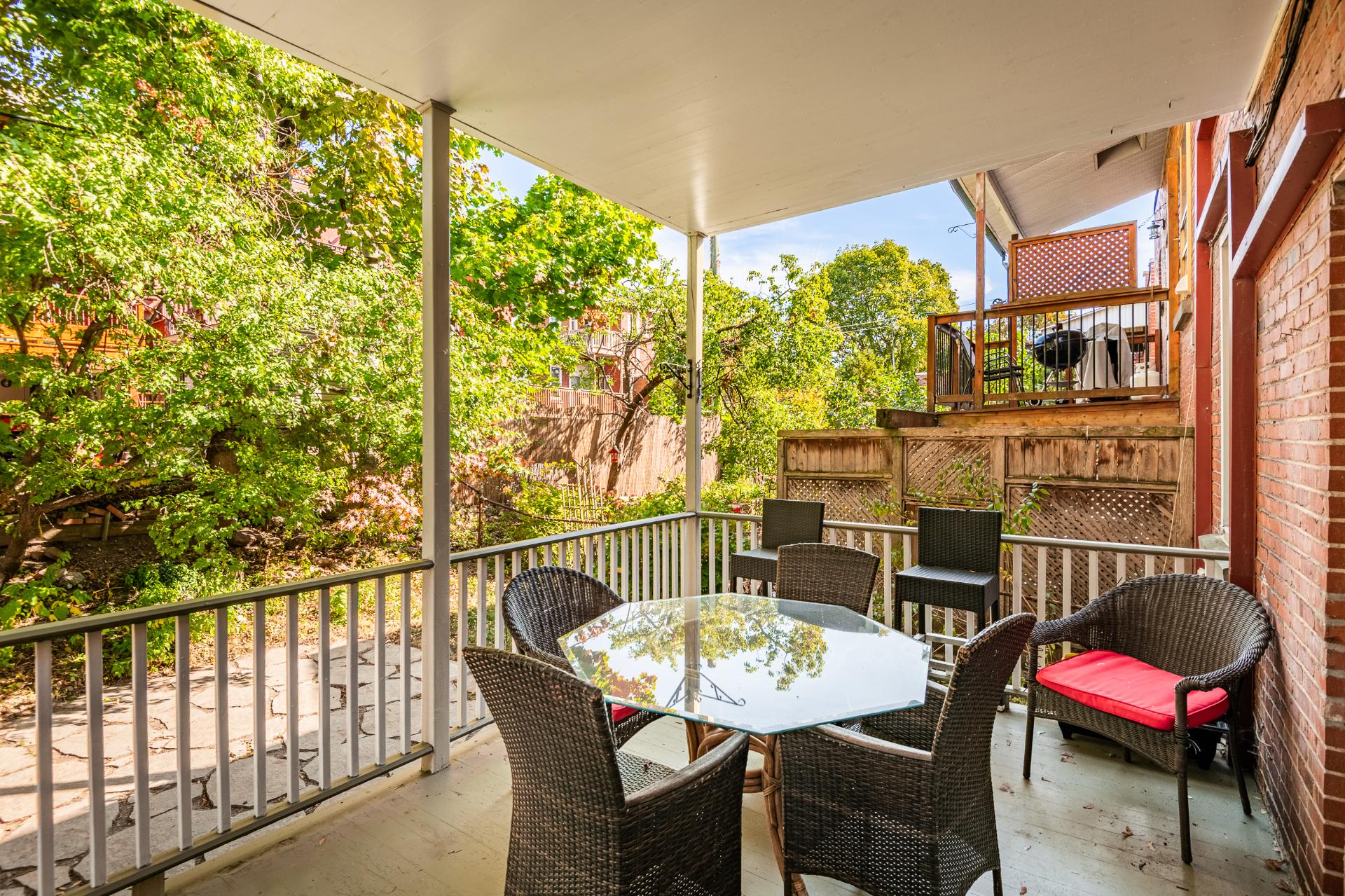 Unité propriétaire (libre immédiatement) : 4 chambres, 2 salles de bain, cuisine avec cuisinière au gaz, 2 climatiseurs muraux, foyer au gaz, balcons avant et arrière. Planchers de chêne, hauts plafonds, 2 grands puits de lumière pour une luminosité exceptionnelle. Sortie de gaz pour BBQ et accès intérieur direct au garage.